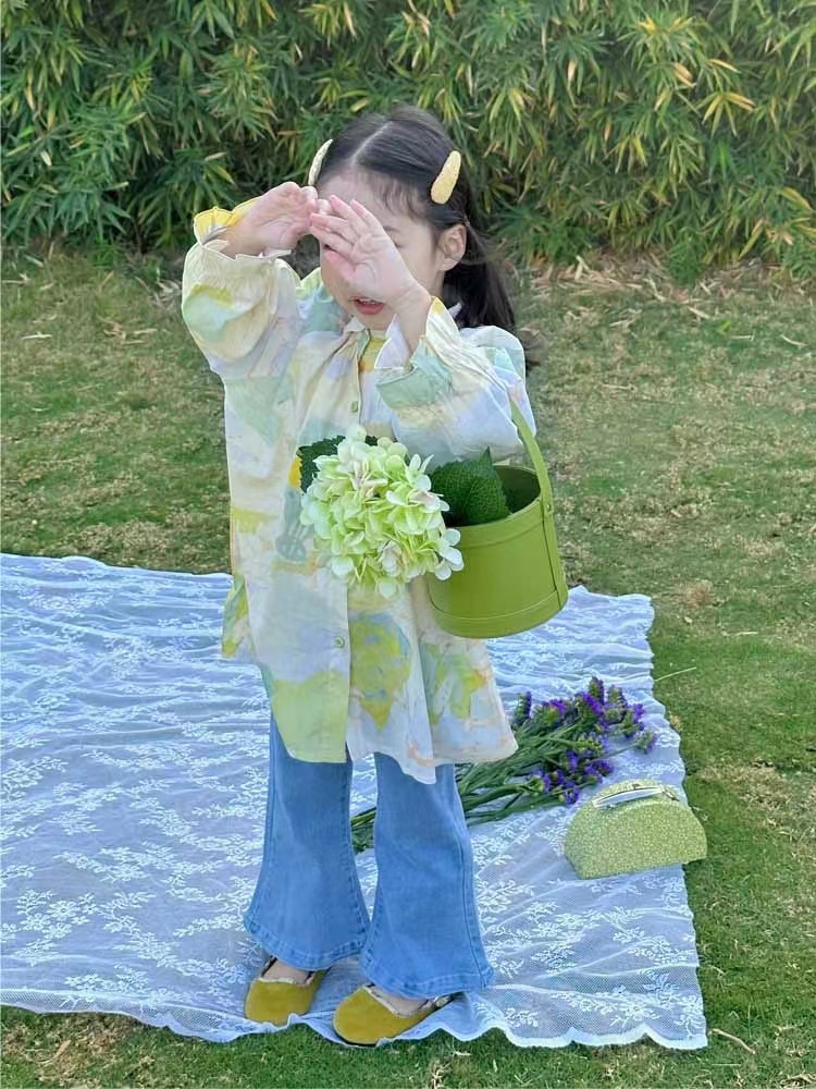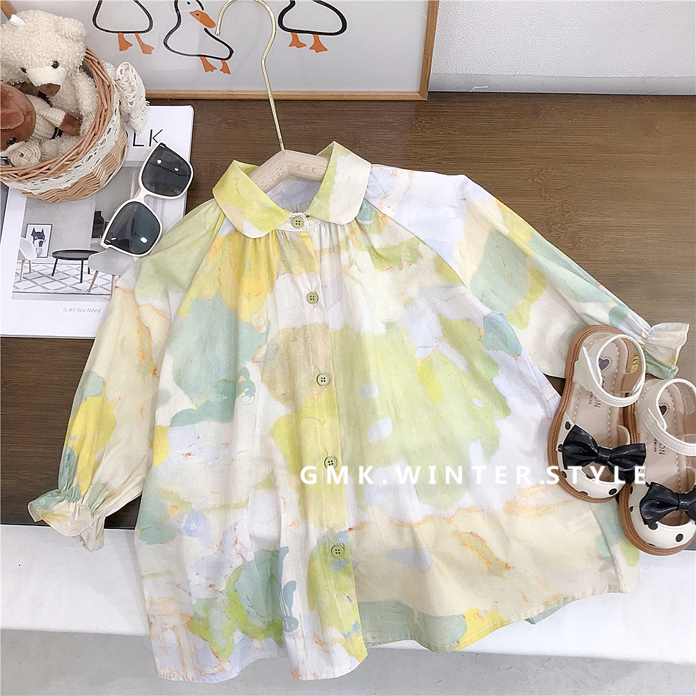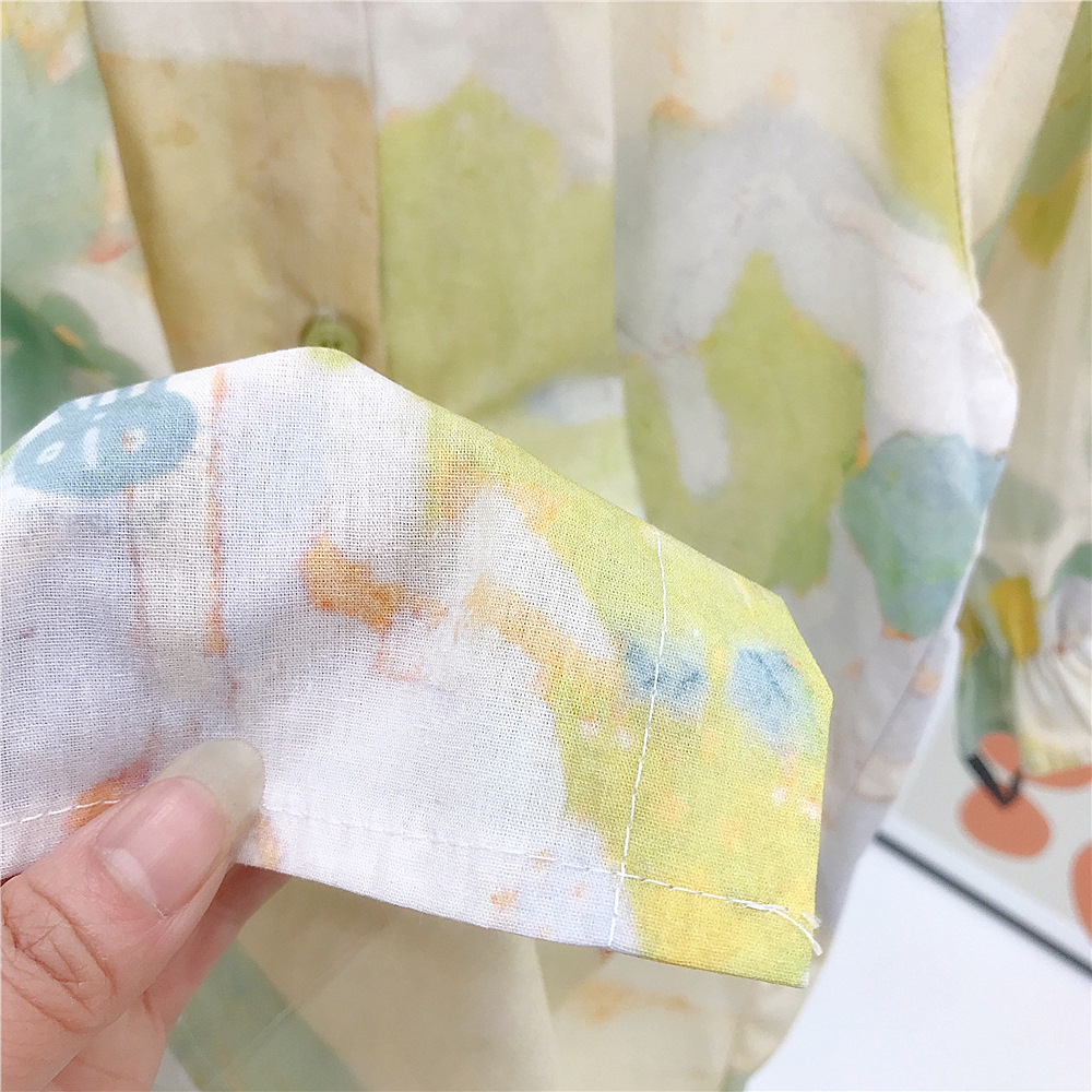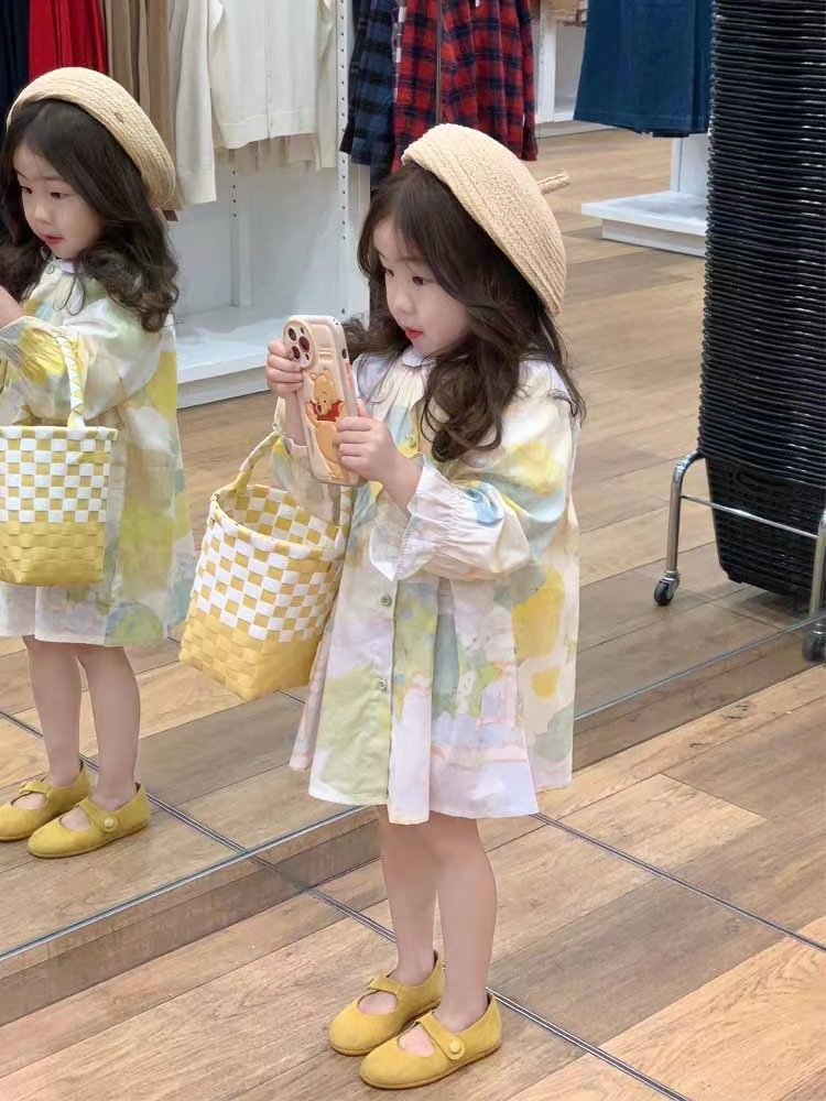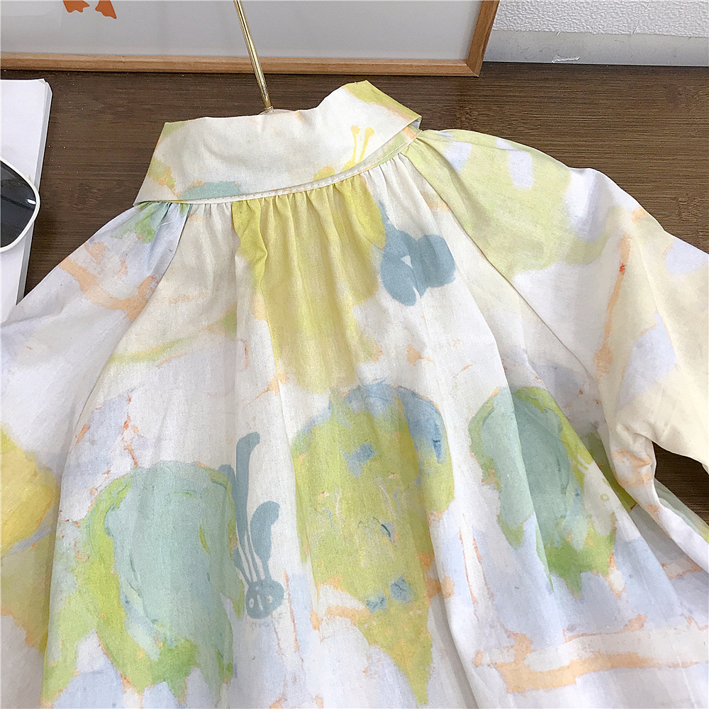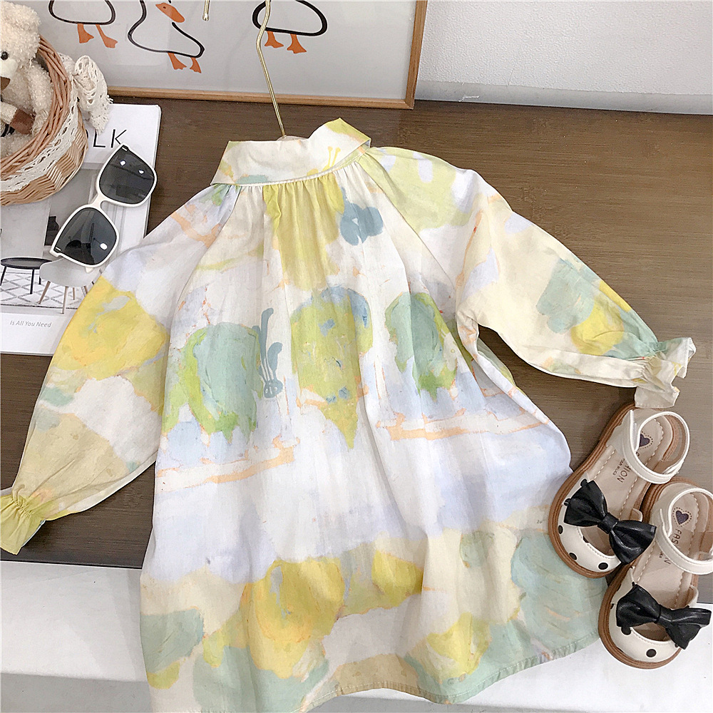 봄 여름 가을 새로운 한국 아동복 여아 중간 길이 셔츠 예술적 타이 염색 프린트 셔츠 스커트 자외선 차단제 의류 해외 무역스토어 가기