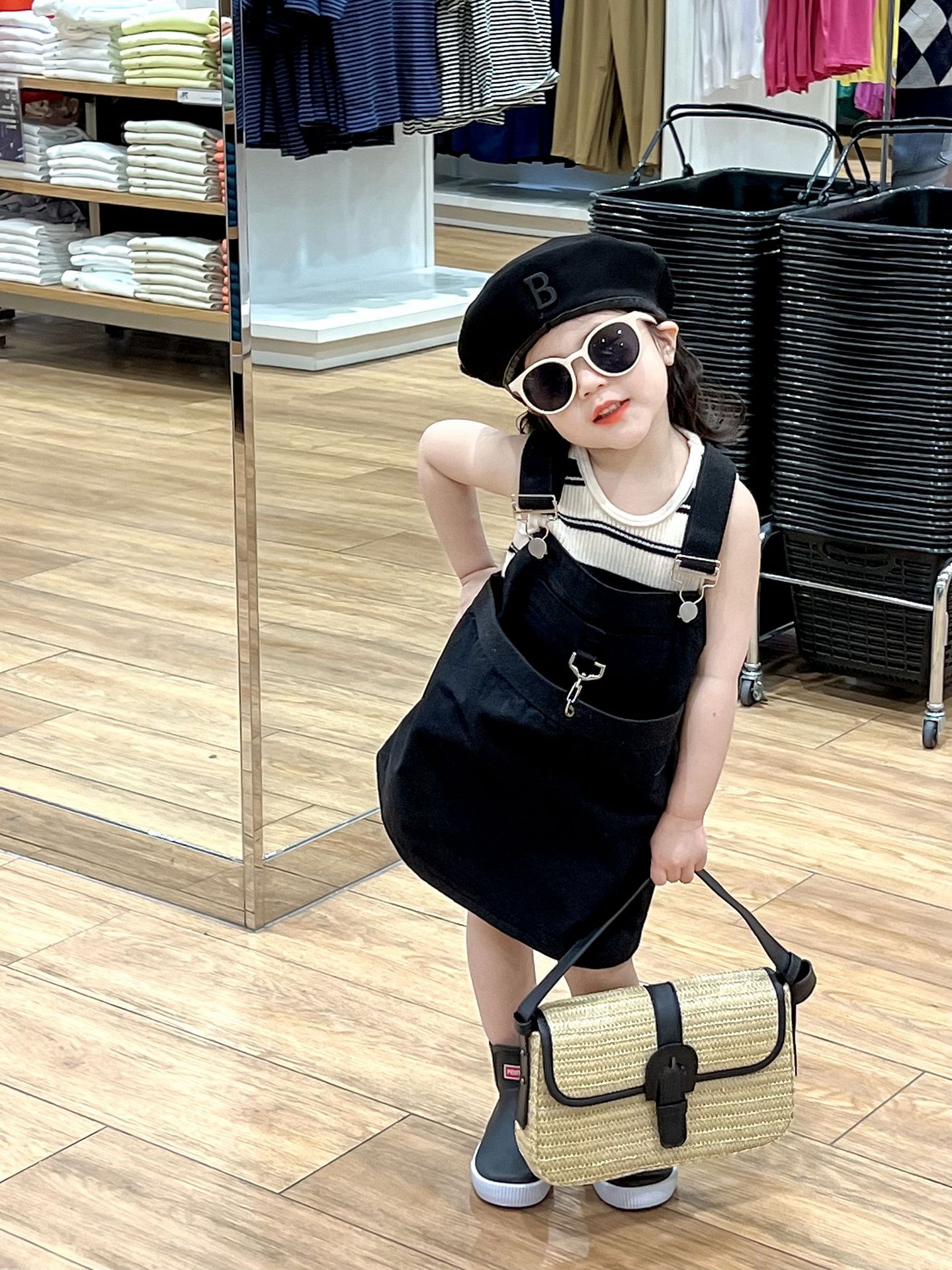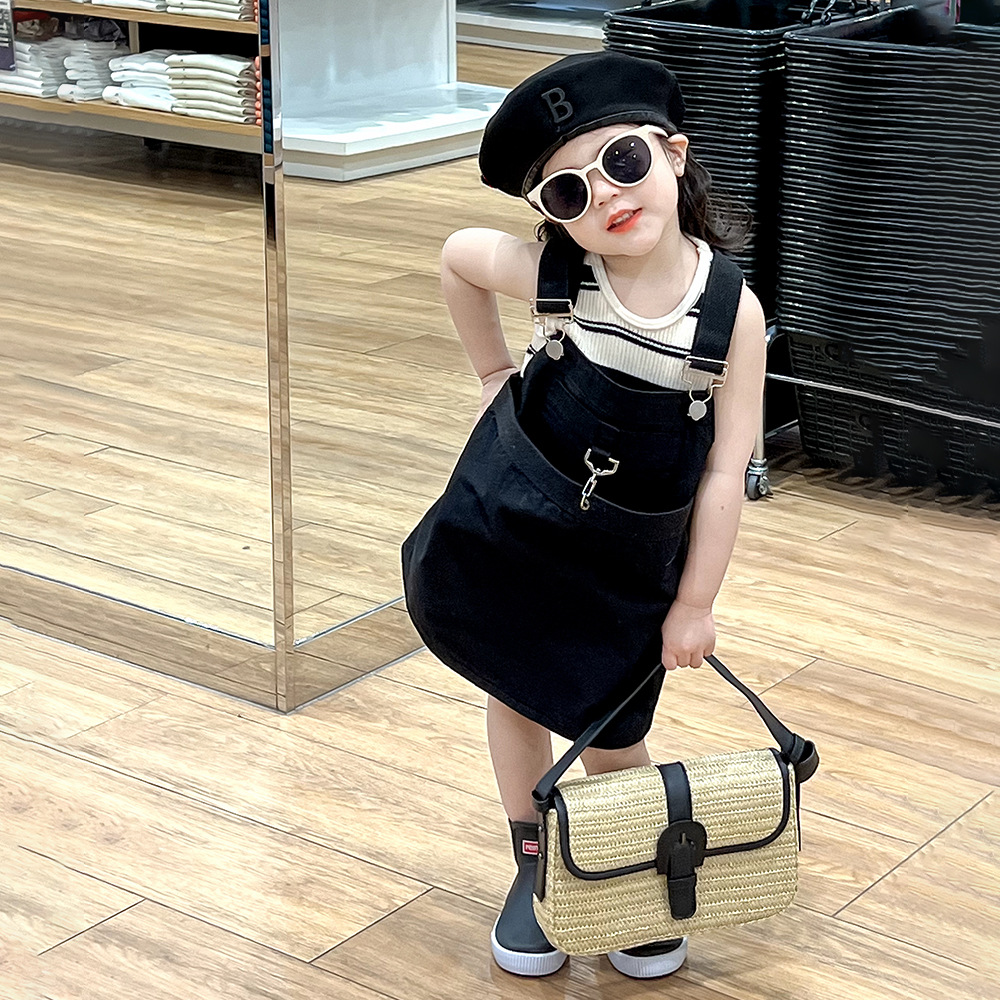 Miaoxuan 아동복 여아 스트랩 원피스 2023 여름 원피스 새로운 한국 스타일 어린이 원피스 여름 캐주얼 작업 원피스스토어 가기