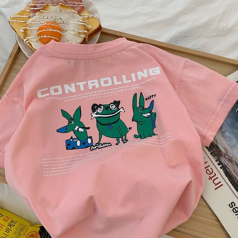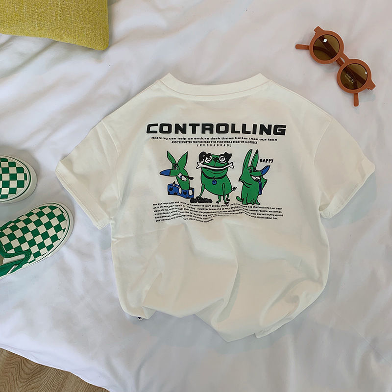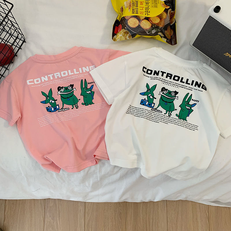 면 어린이 귀여운 아기 만화 반팔 티셔츠 여름 2024 새로운 스타일 중소 어린이 소년 및 어린이 탑 셔츠스토어 가기