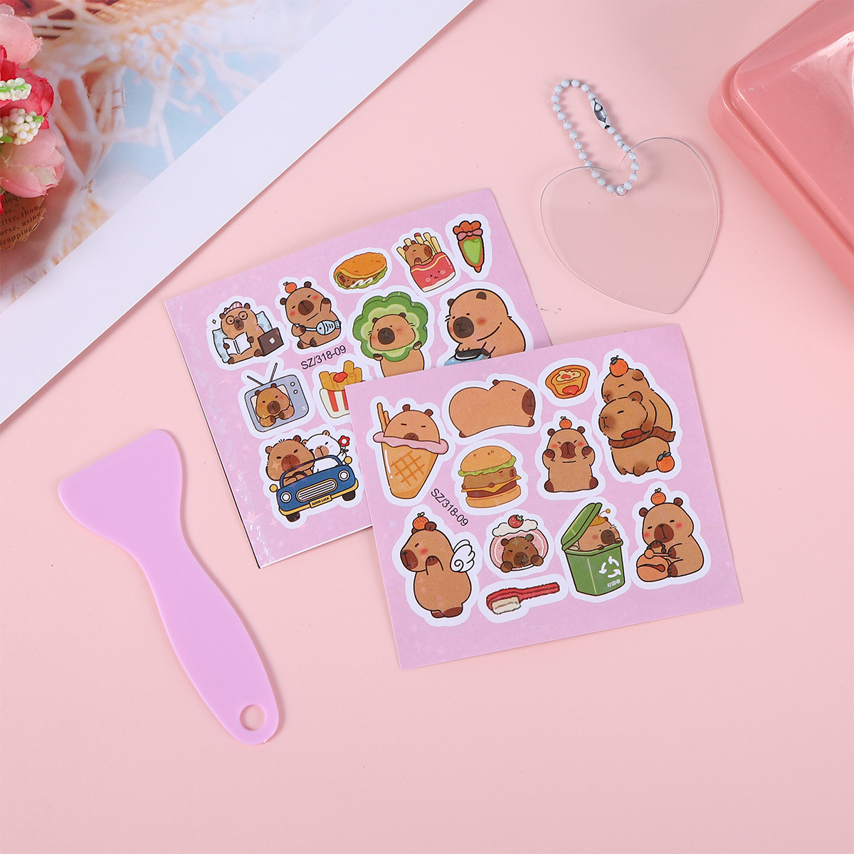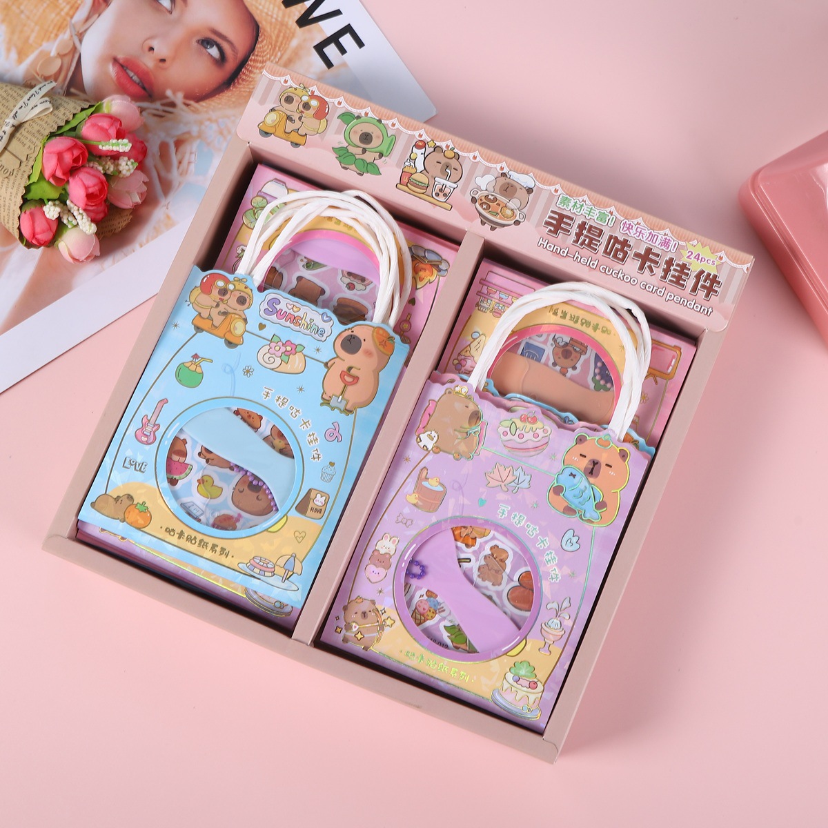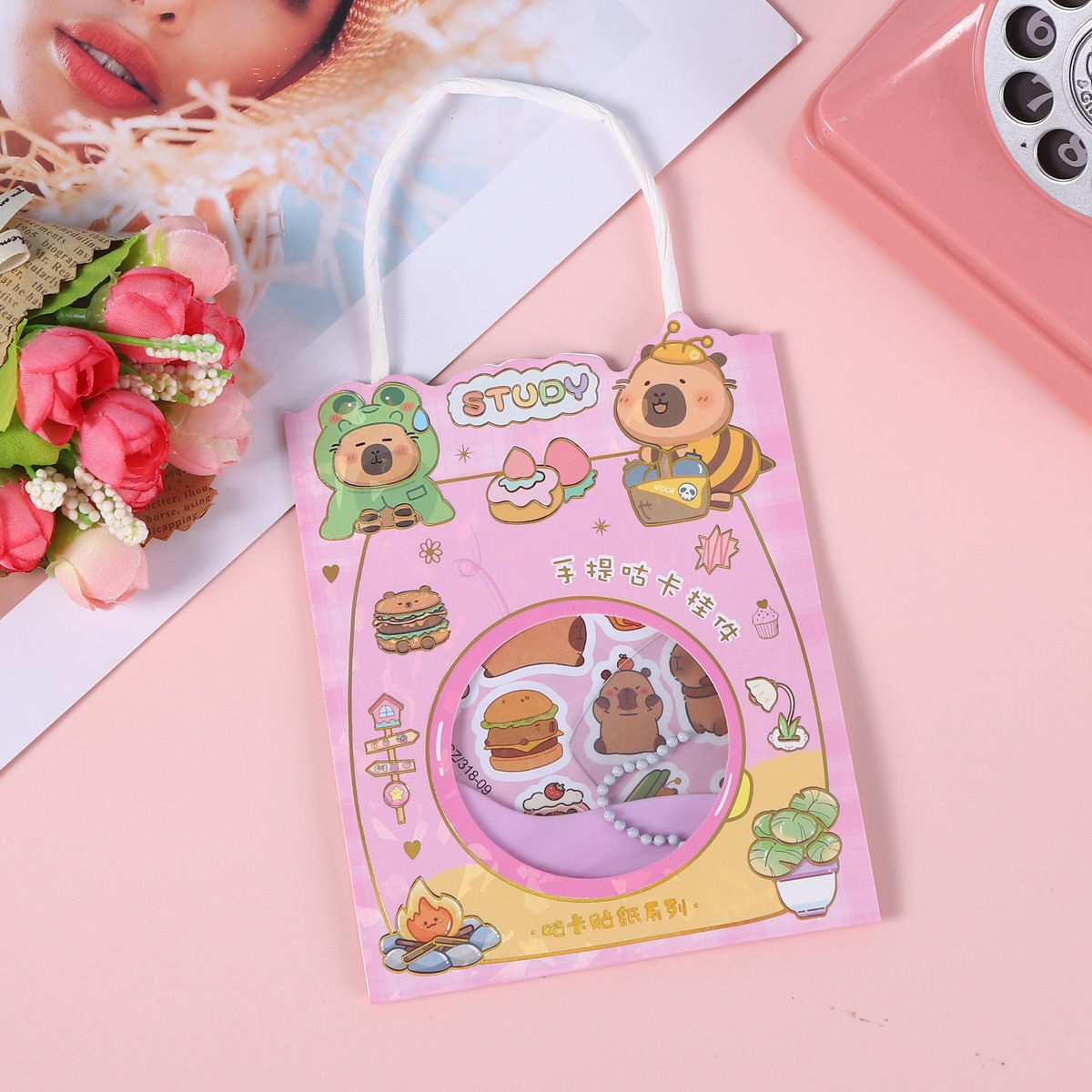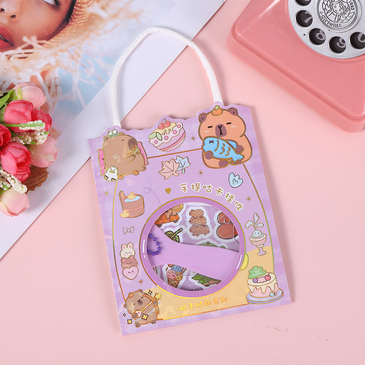 镭射烫金手提袋内含:咕卡贴纸2张、铲子1个、亚克力咕卡盘1个、珠链1个