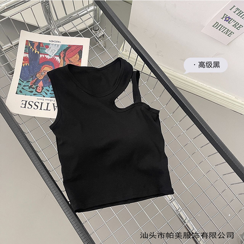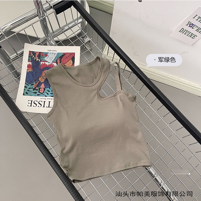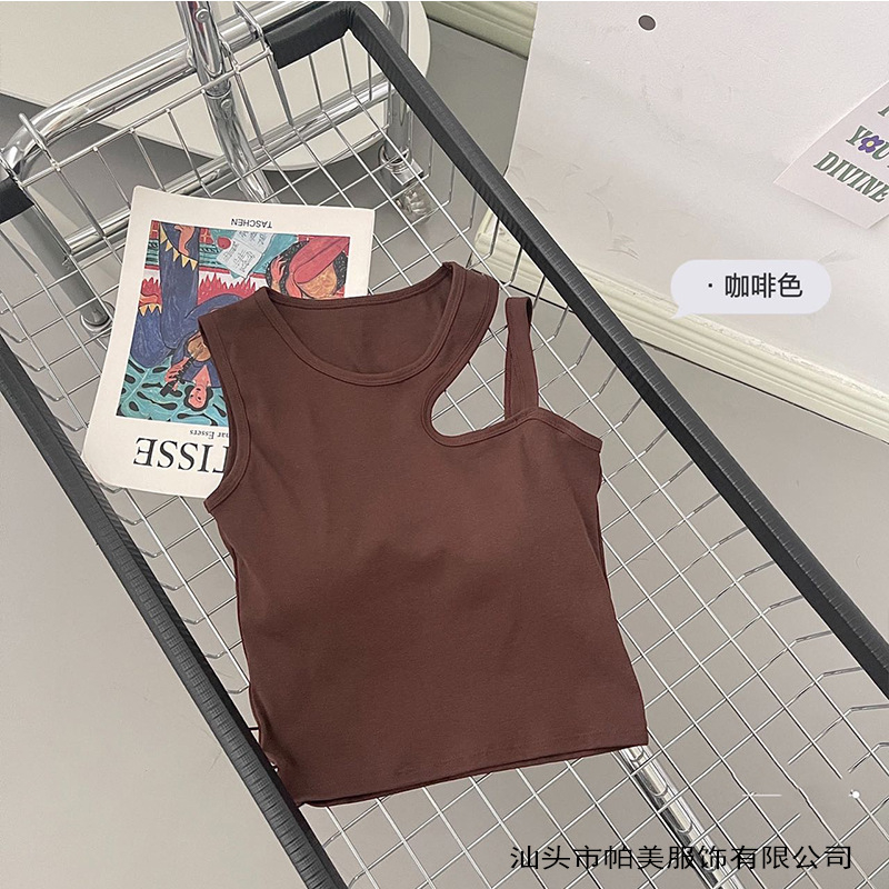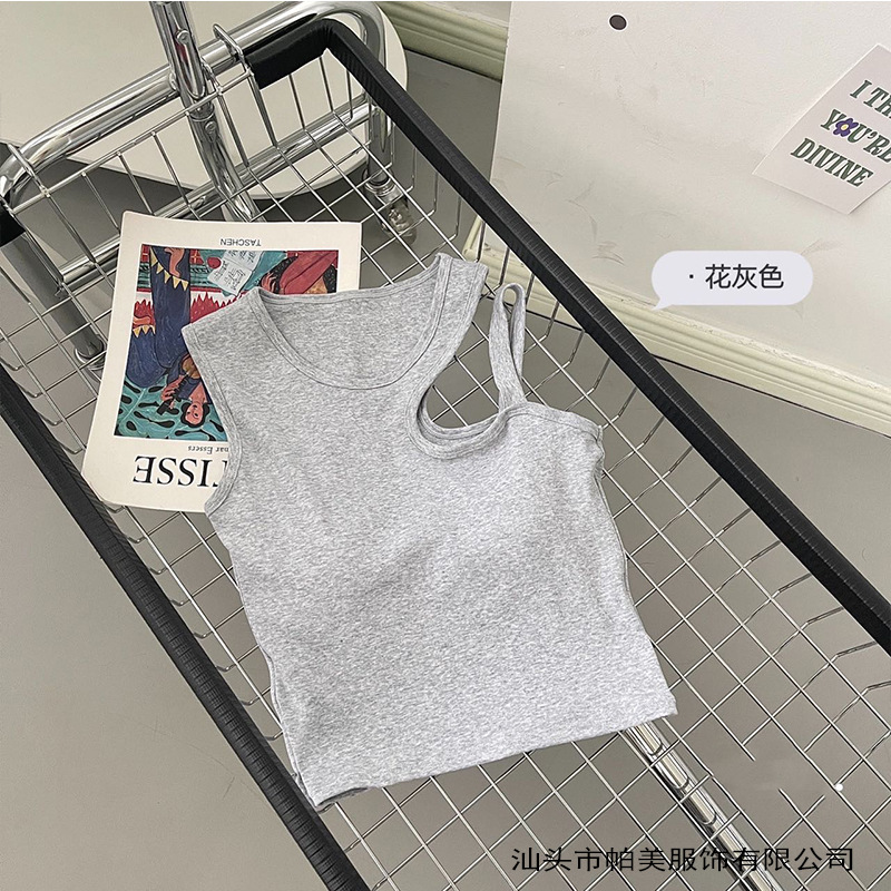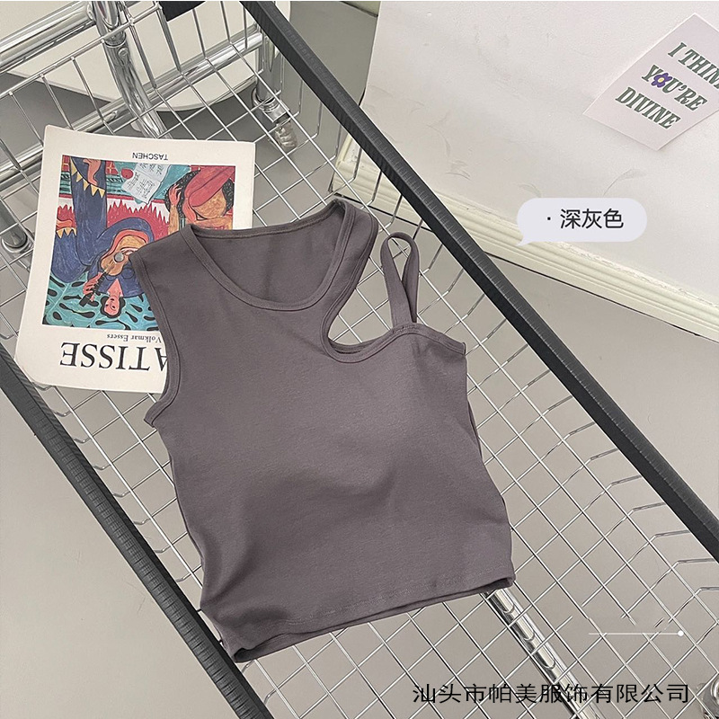 순면 아름다운 안티 라인 어깨 스트랩 불규칙한 조끼 여자의 향신료 여자의 내부 벨트 가슴 패드 짧은 끈이없는 겉옷 슬링 탑