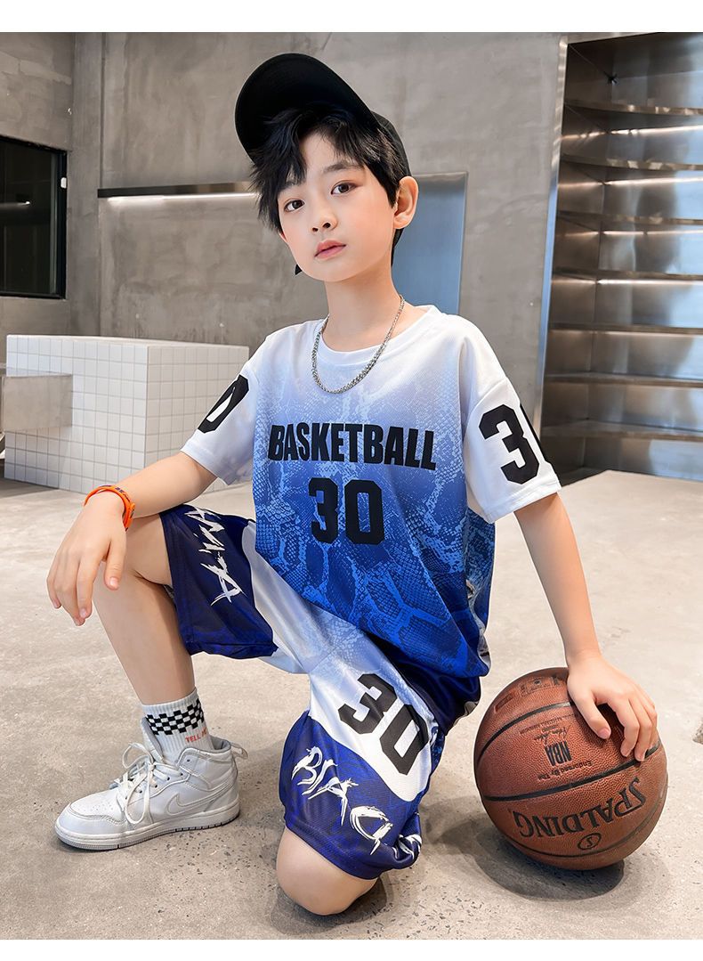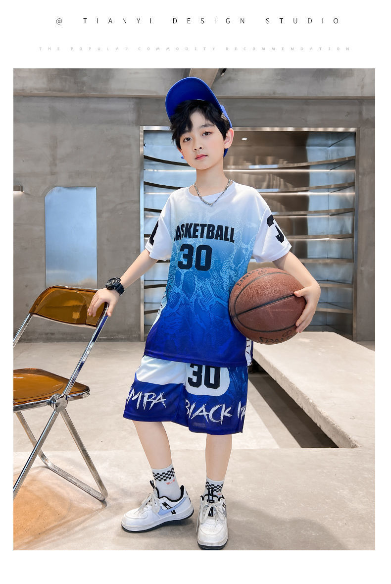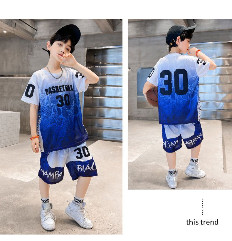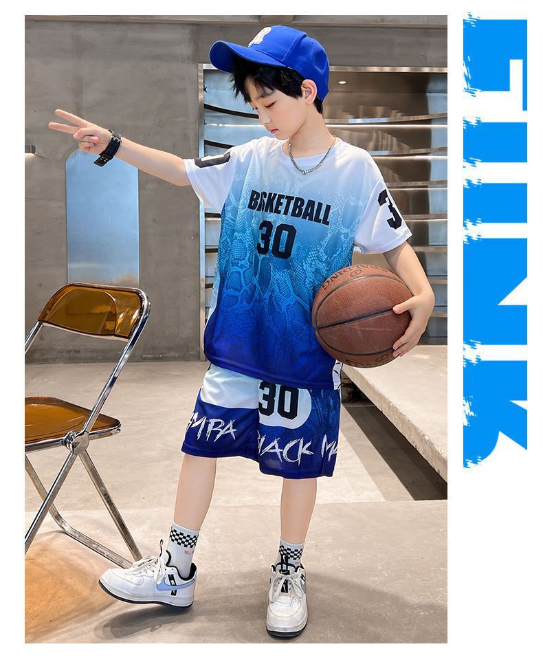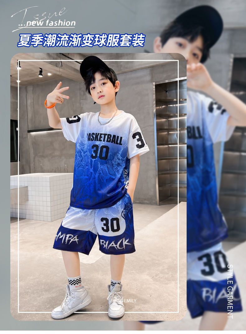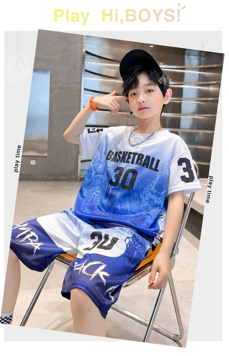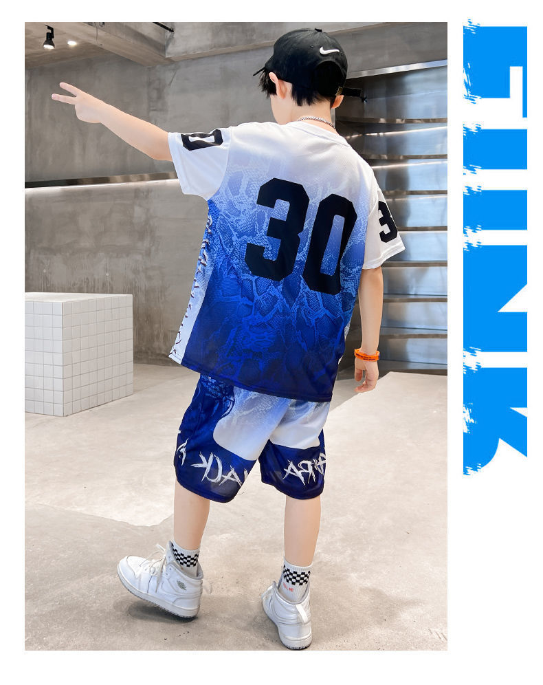 여름 어린이 유행 느슨한 캐주얼 볼 세트 세트 소년의 그라데이션 반팔 5 점 바지 스포츠 투피스 세트스토어 가기