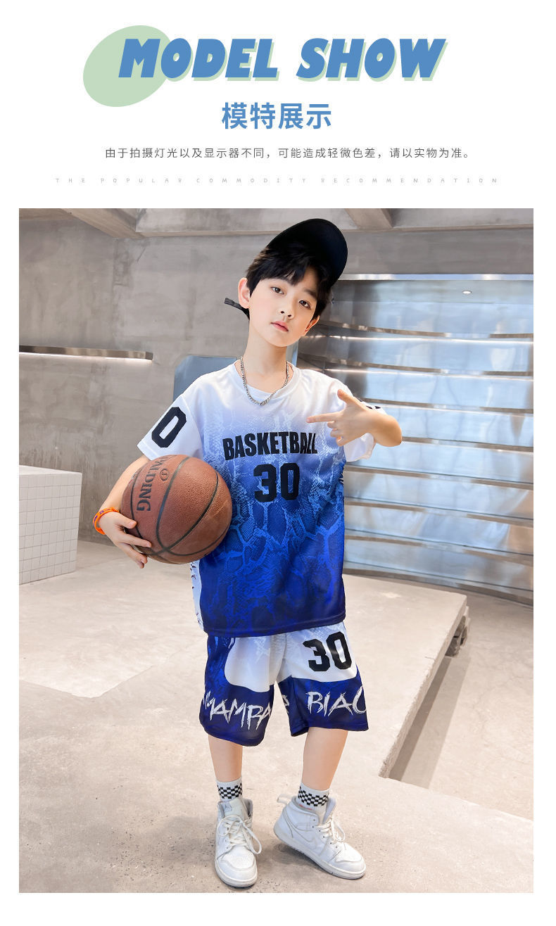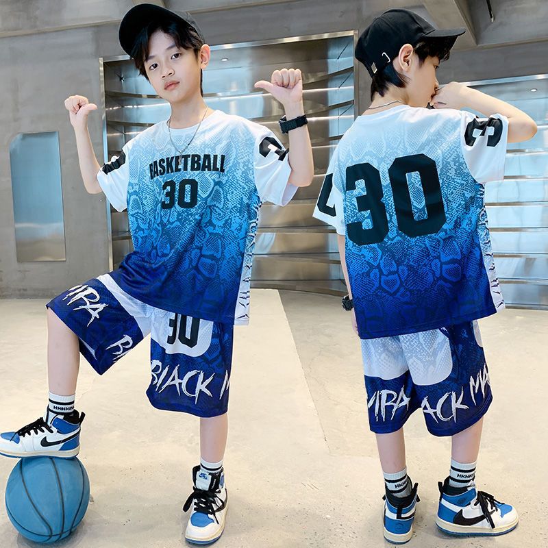 여름 어린이 유행 느슨한 캐주얼 볼 세트 세트 소년의 그라데이션 반팔 5 점 바지 스포츠 투피스 세트