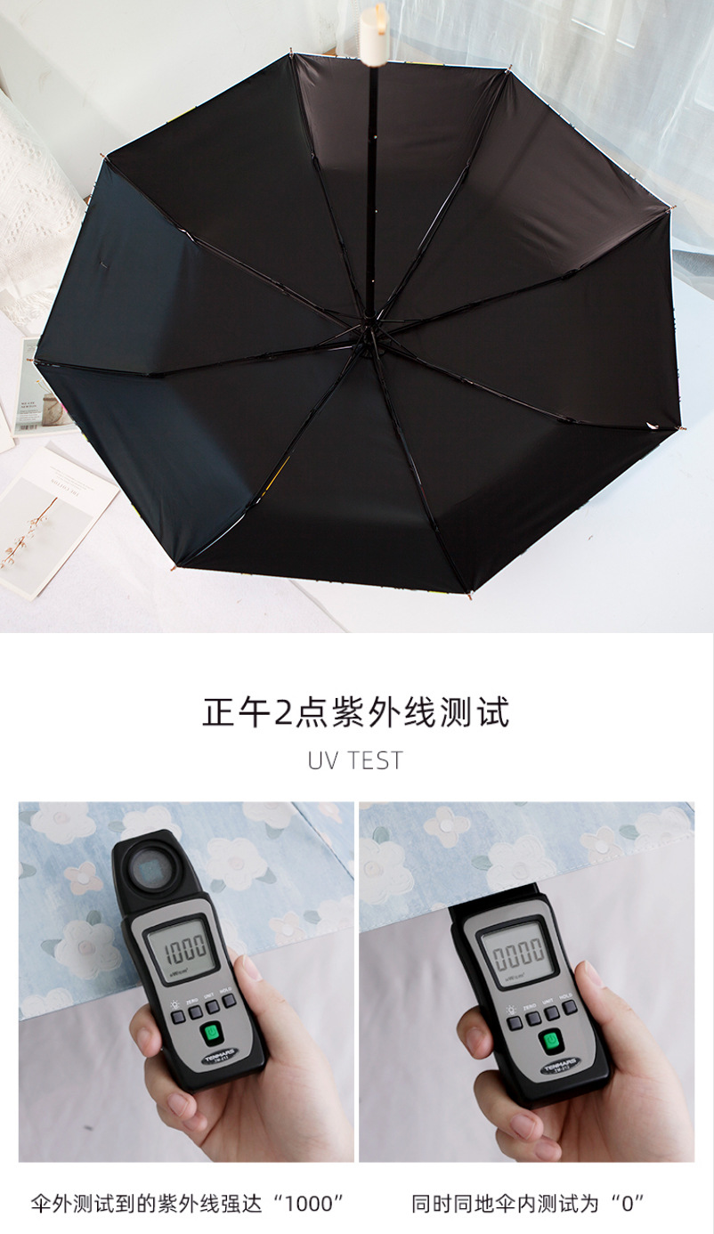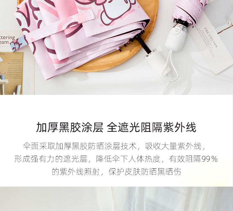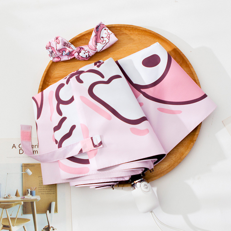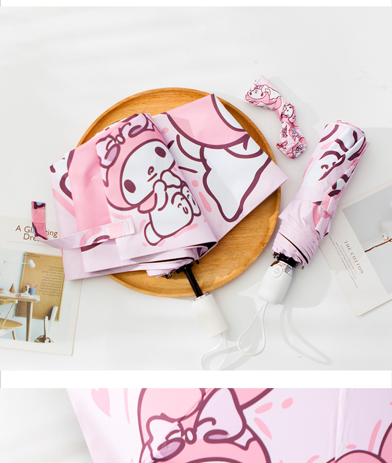 멜로디 산리오 자동 태양 우산 맑은 우산 접는 검은 고무 자외선 차단제 어린이를위한 UV 보호