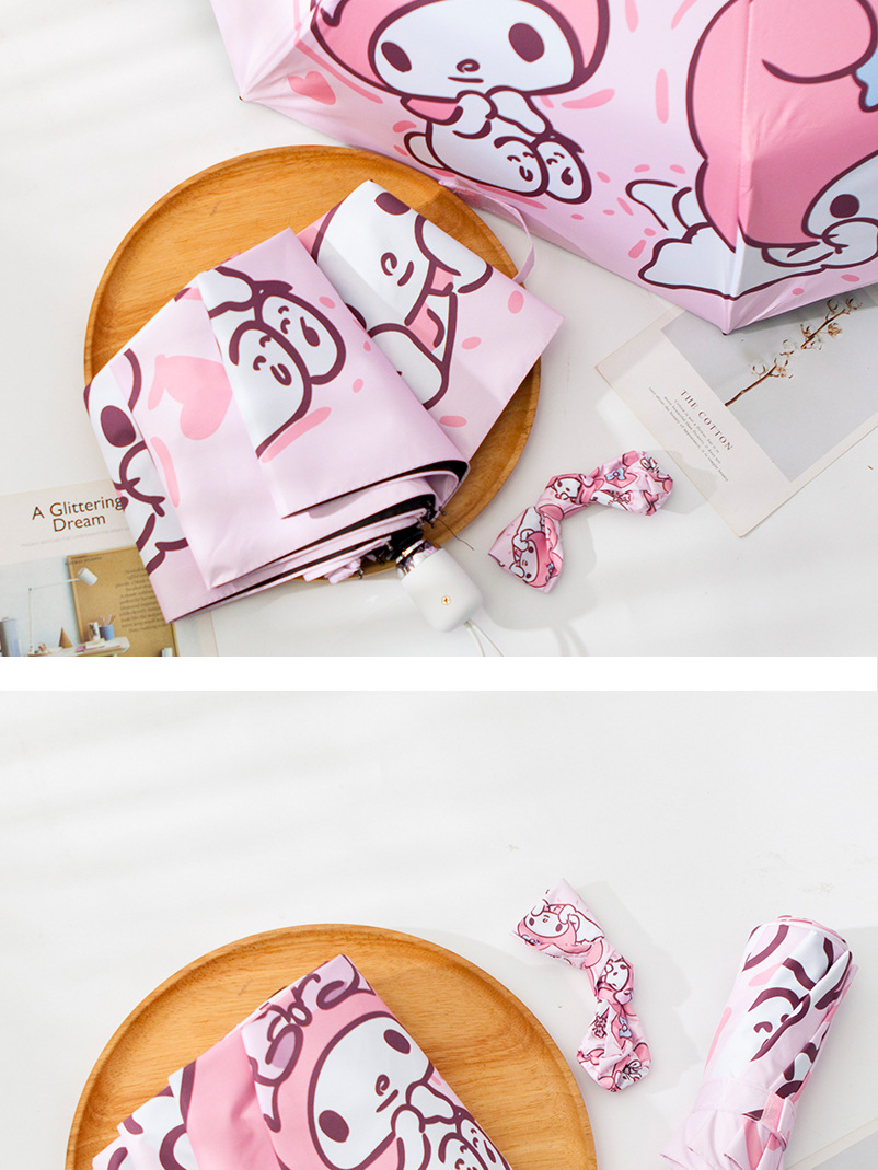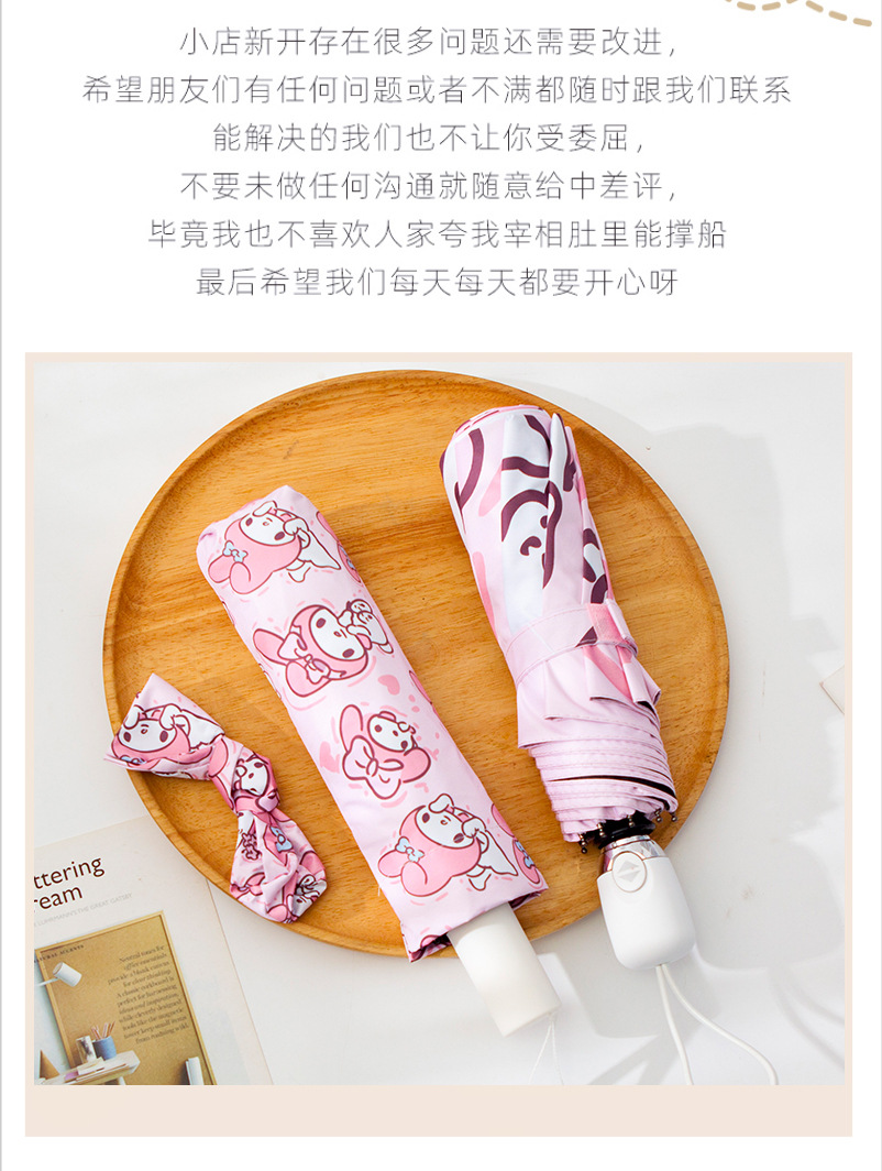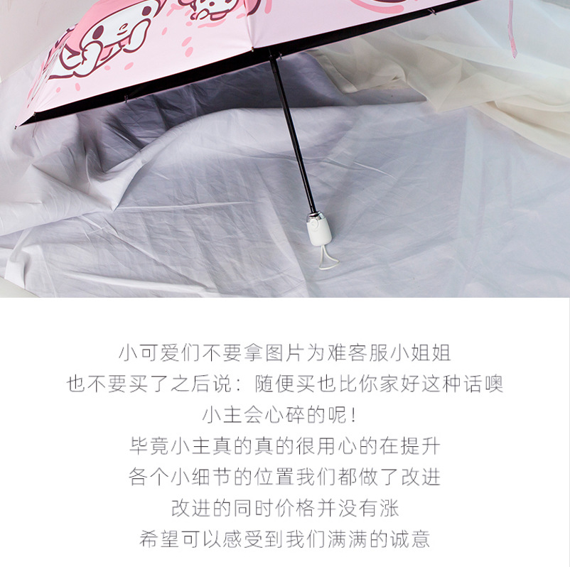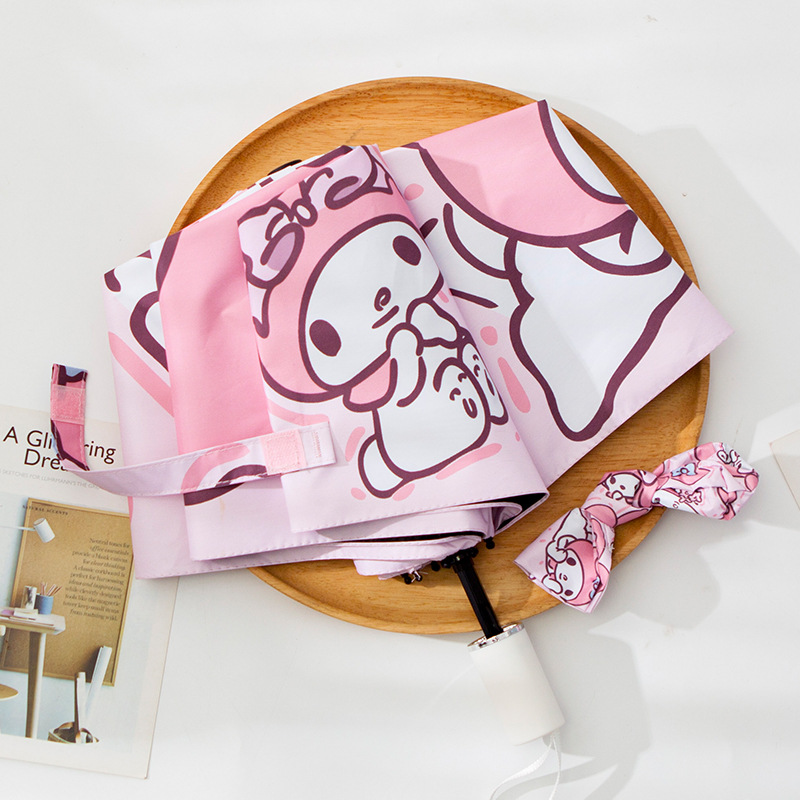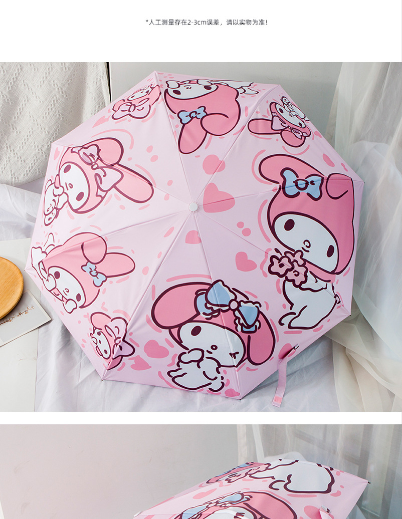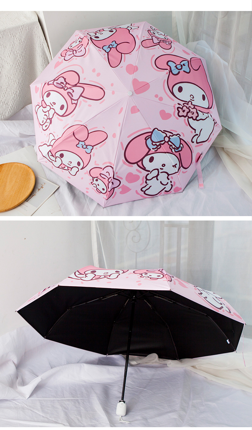 멜로디 산리오 자동 태양 우산 맑은 우산 접는 검은 고무 자외선 차단제 어린이를위한 UV 보호스토어 가기
