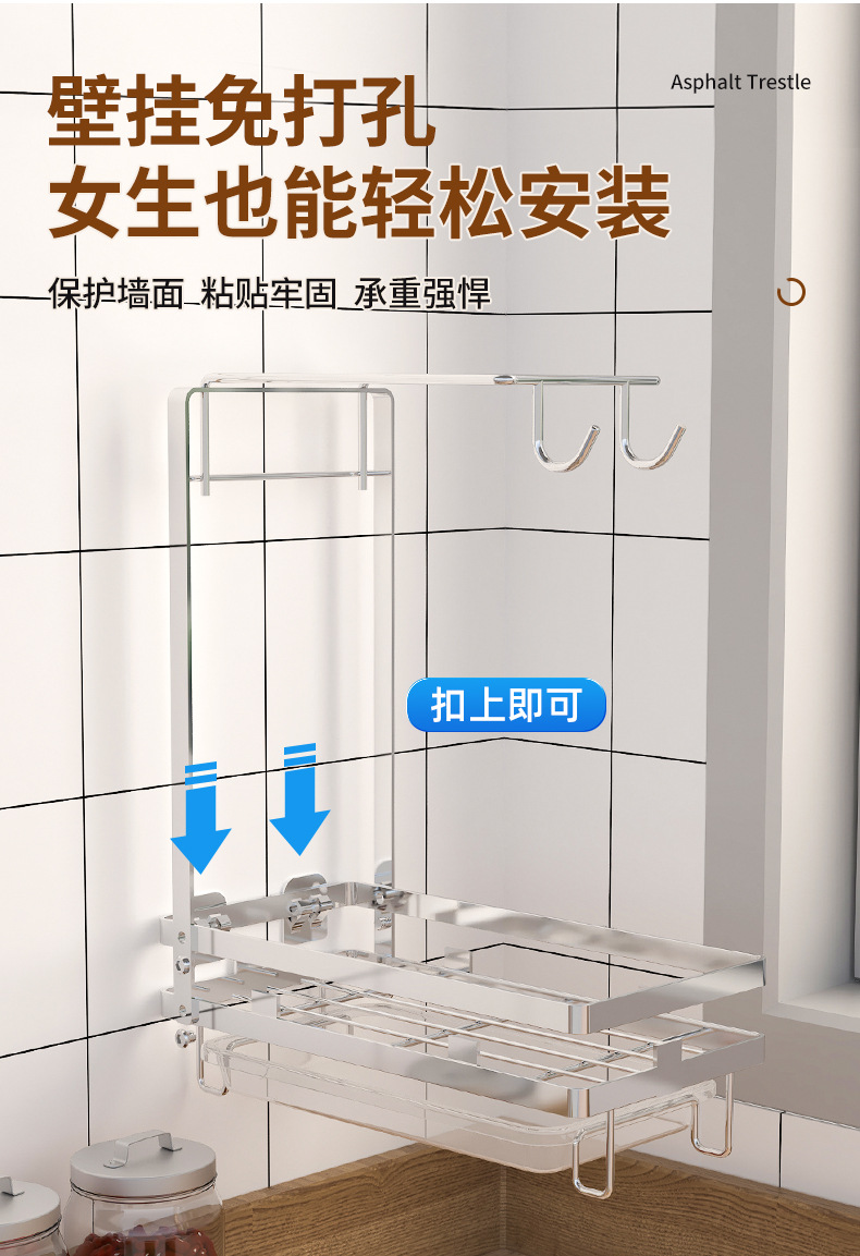 창턱 벽걸이 접시 천 걸이 랙 펀치 프리 주방 배수 수영장 보관 접시 천 싱크대 게으른 보관 랙스토어 가기