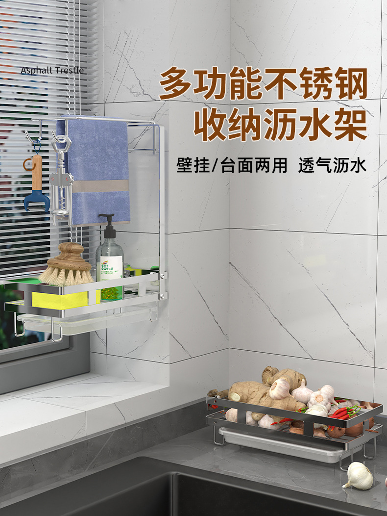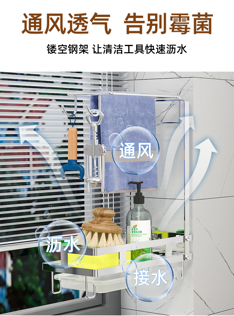窗台壁挂抹布挂架免打孔厨房沥水池收纳洗碗布水槽台面懒人置物架
