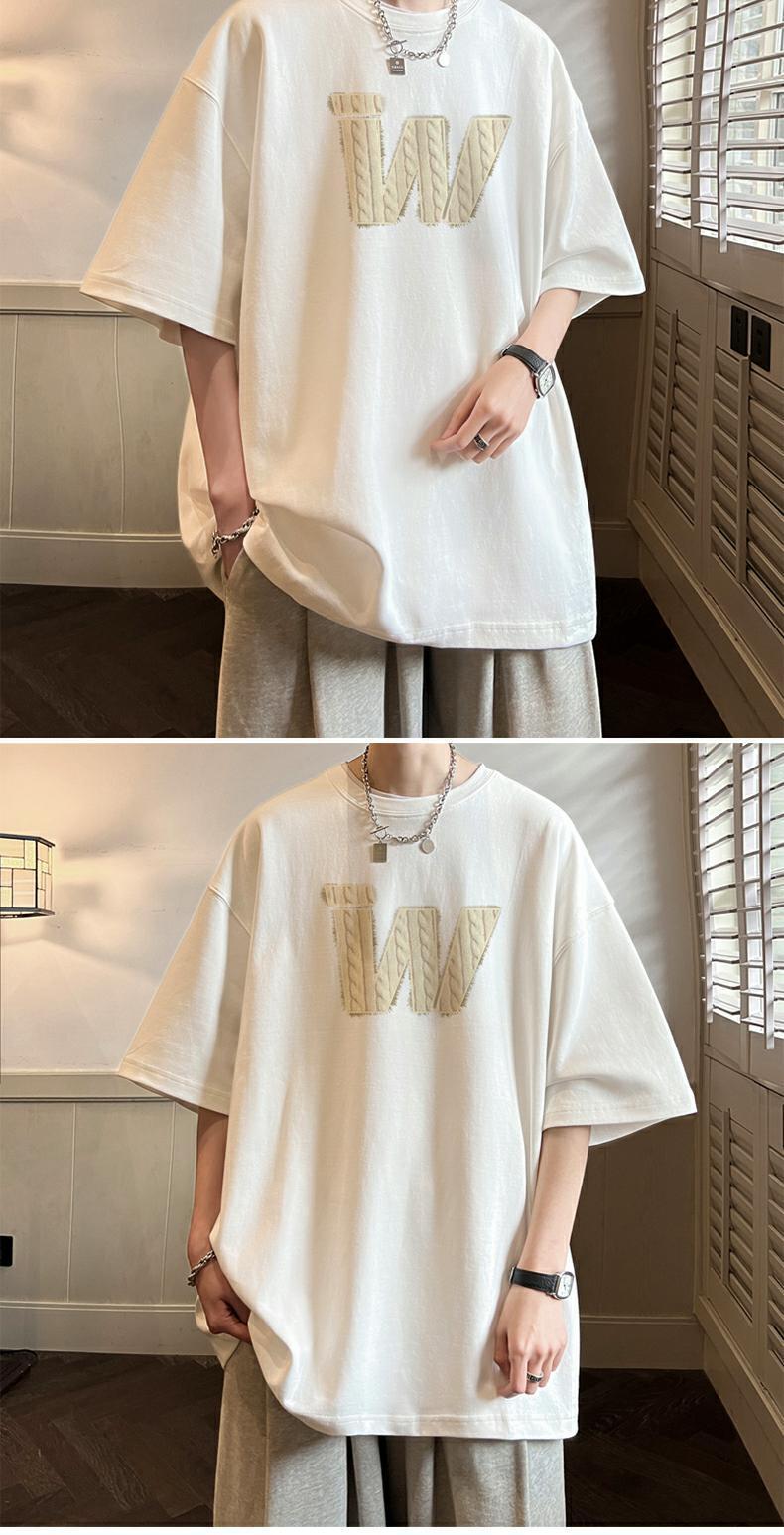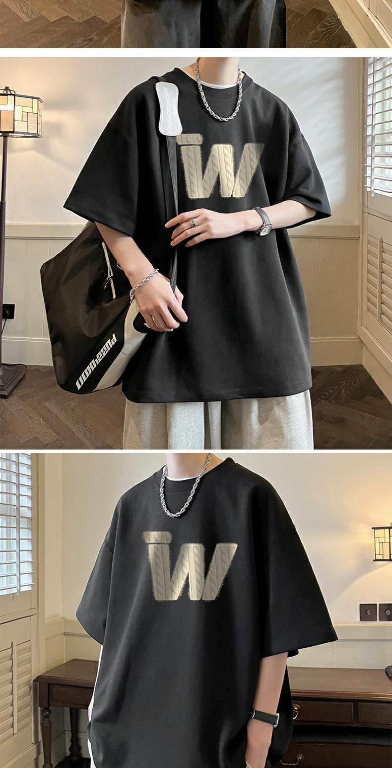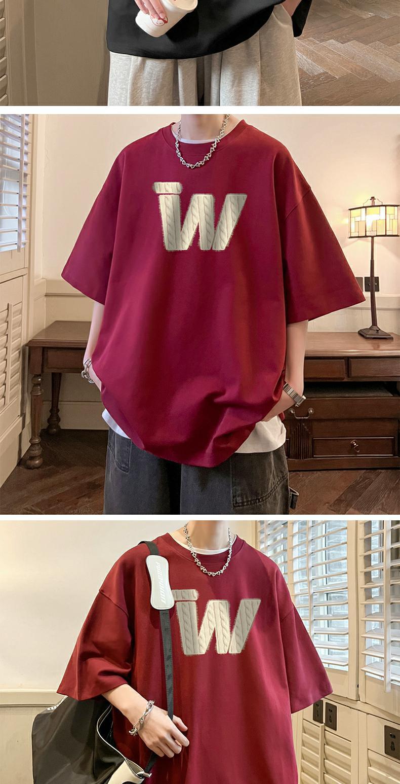 아메리칸 레트로 헤비급 순면 헤비급 티셔츠 소년 반팔 여름 패션 브랜드 트렌드 대형 반팔 부르고뉴 네이비 블루