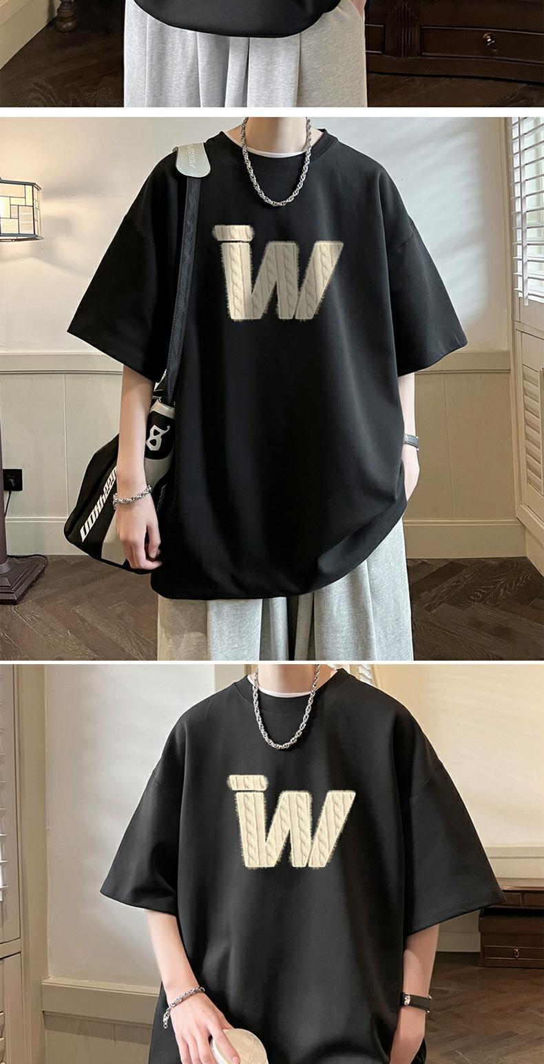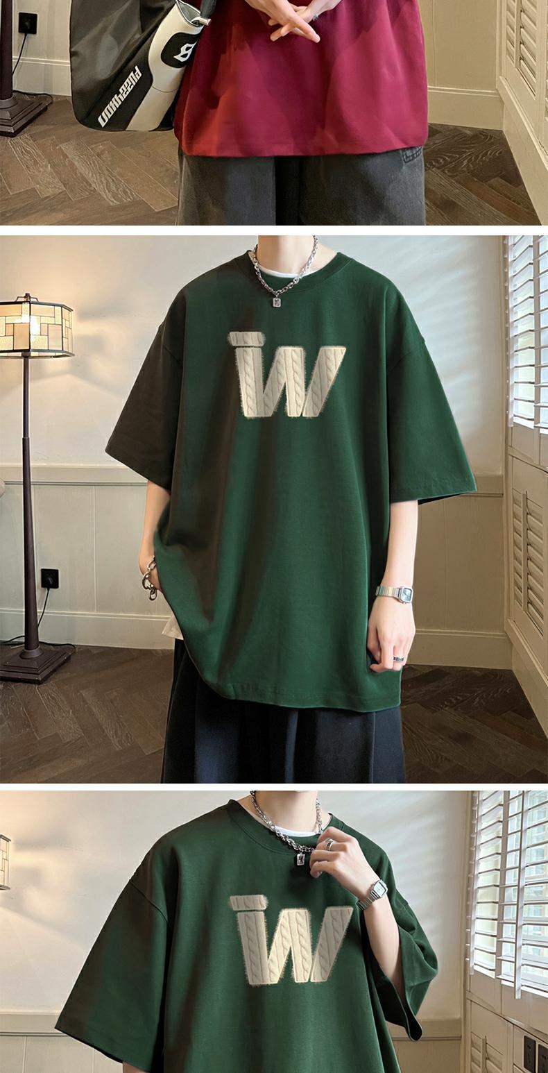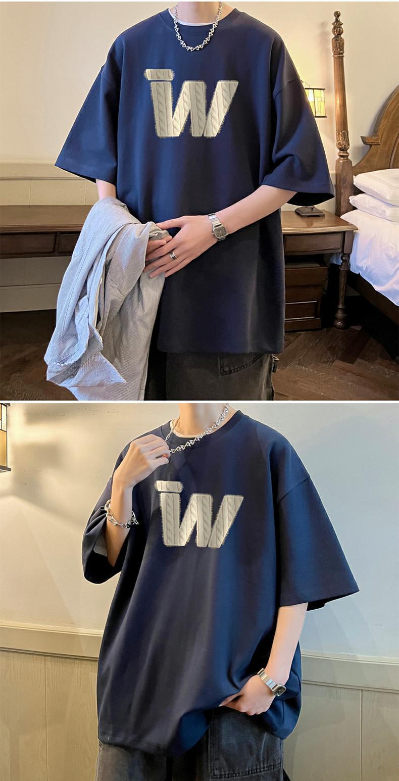 아메리칸 레트로 헤비급 순면 헤비급 티셔츠 소년 반팔 여름 패션 브랜드 트렌드 대형 반팔 부르고뉴 네이비 블루스토어 가기