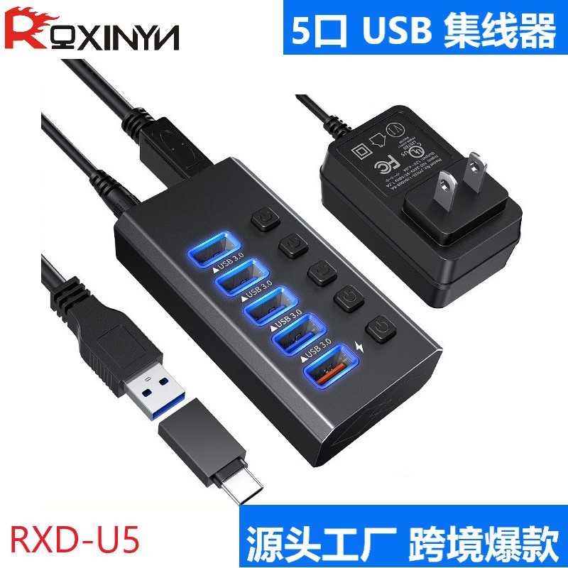 전원 공급 장치 컴퓨터 허브 멀티 인터페이스 1-5 충전 다기능 자동차 플러그가있는 usb3.0 익스텐더