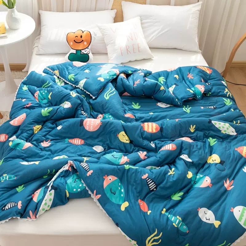 여름 클래스 어머니와 아이를위한 기계 빨 니트 여름 쿨 이불 싱글 실크 면 공간 이불 코어 봄과 가을 에어컨 얇은 이불