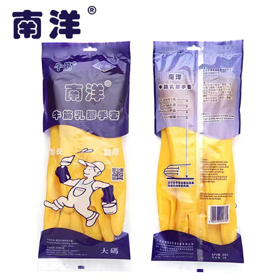 난양 두꺼운 쇠고기 힘줄 라텍스 장갑 식기 세척 방수 미끄럼 방지 내마모성 내구성 작업 고무 노동 보호 장갑 여성용