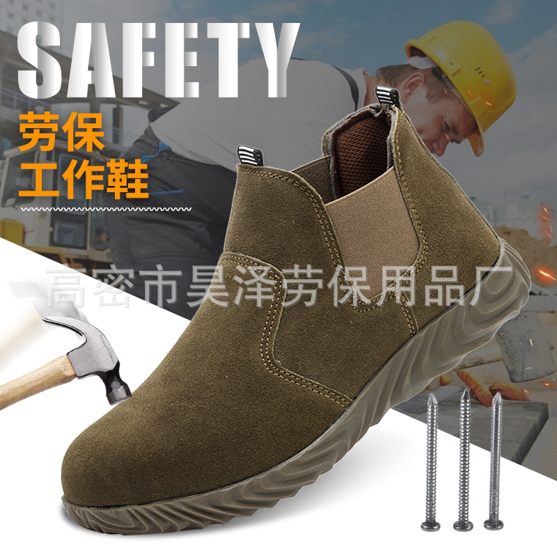 안전 신발 건설 현장 작업용 스틸 Baotou 원 페달 미드 탑 경량 안전 신발 남성용 여름 안전 신발