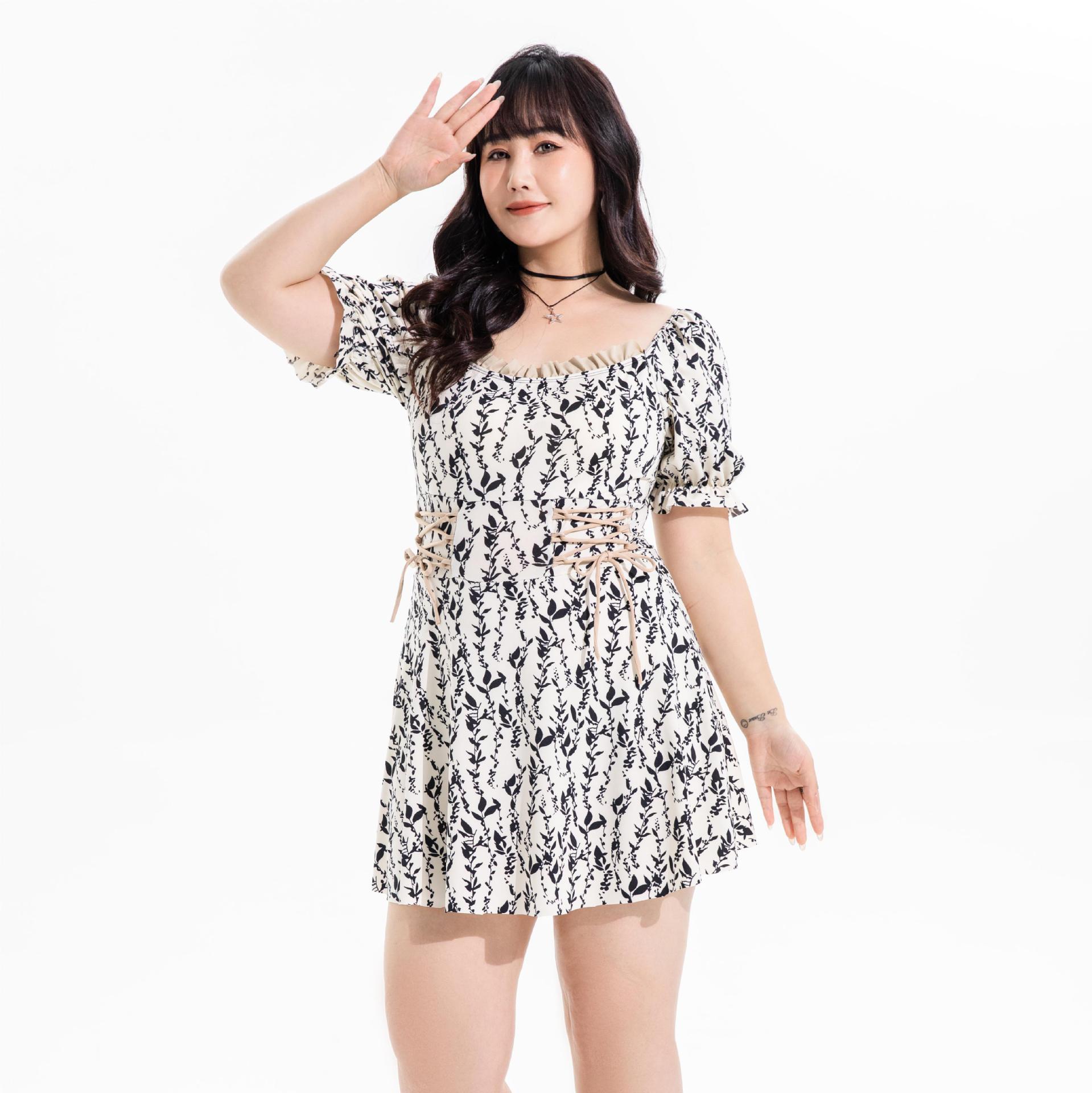 새로운 수영 세트 지방 결합 된 빈티지 관대 한 둥근 목 높은 허리 주름 퍼프 소매 온천 수영 세트스토어 가기