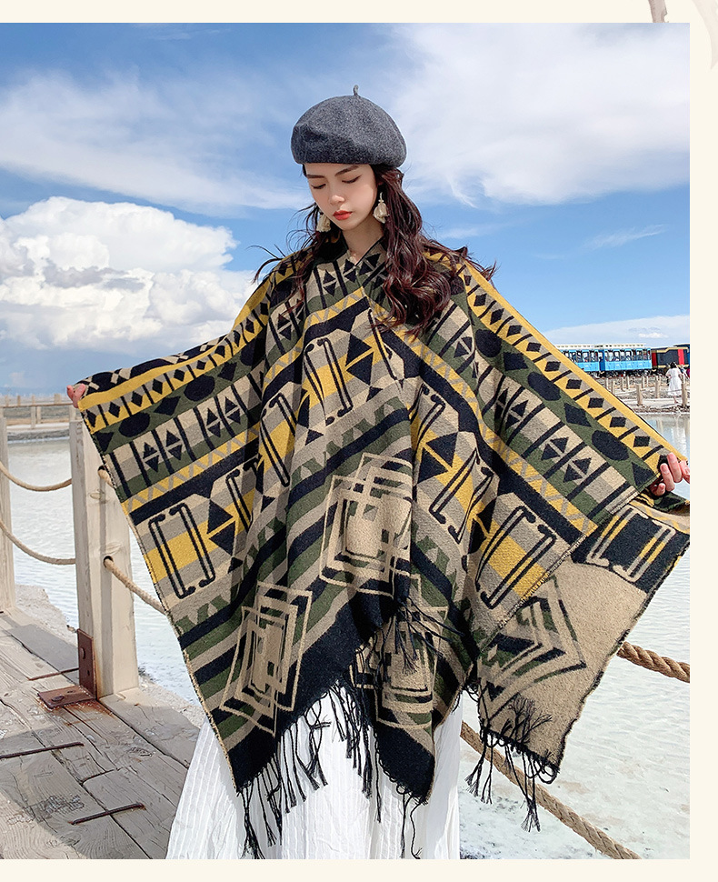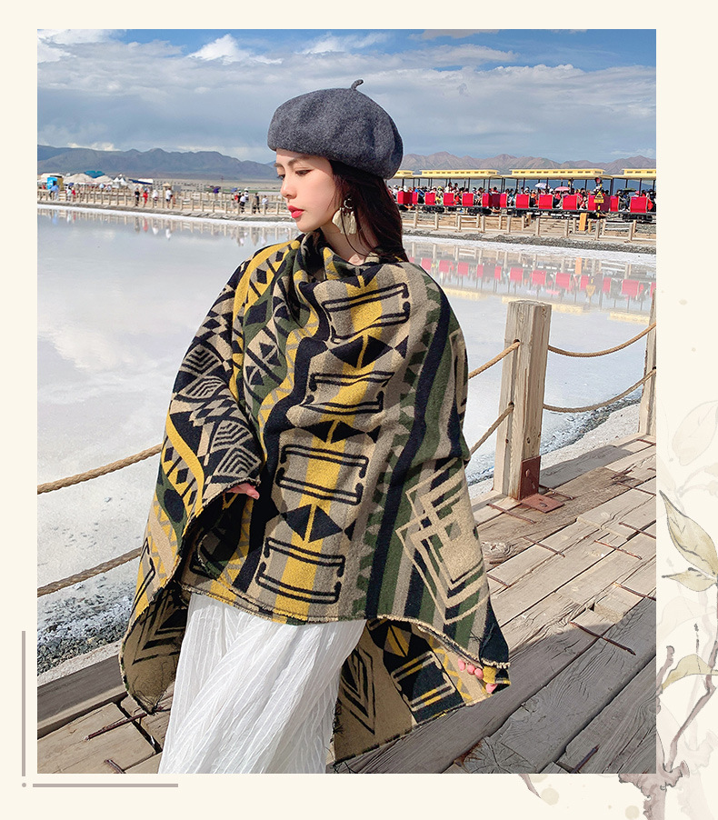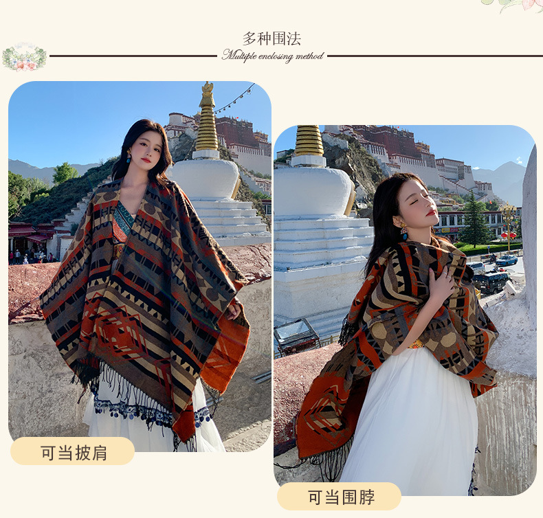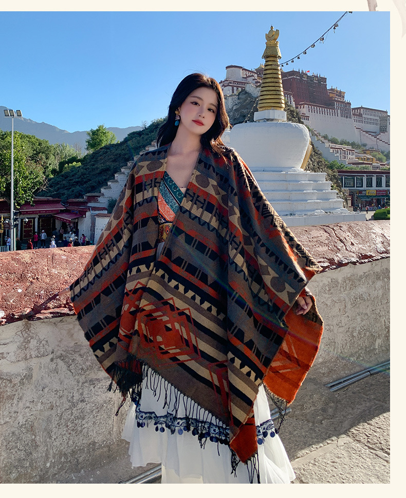 빈티지 스플릿 따뜻한 민족 스타일 숄 윈난 여행 네팔 스카프 모방 캐시미어 술 케이프 여성
