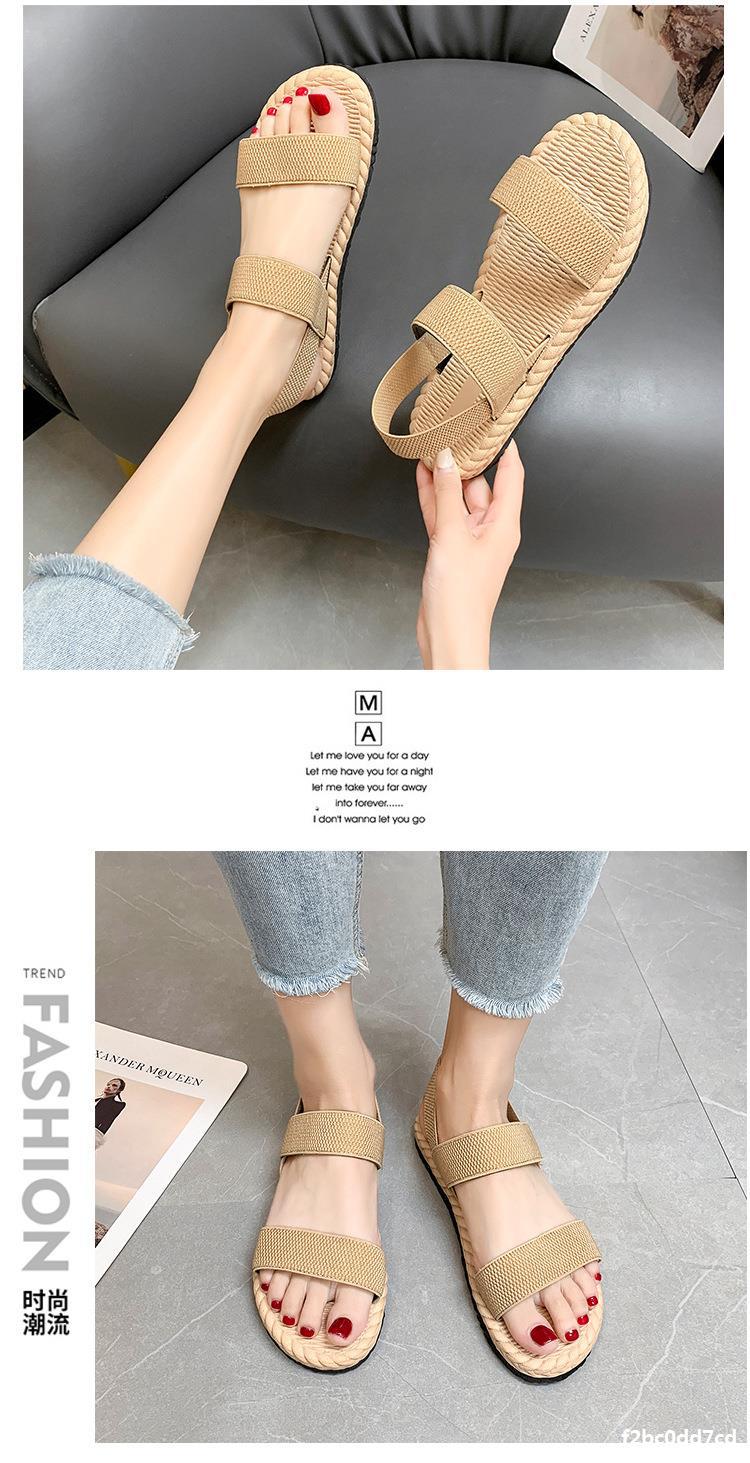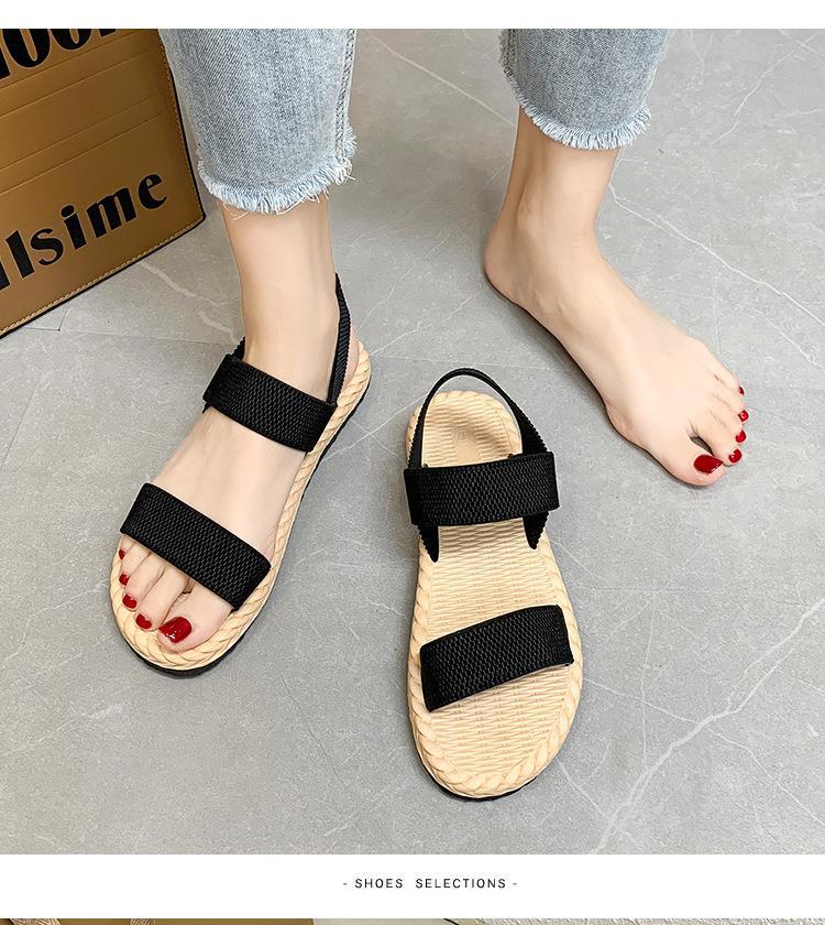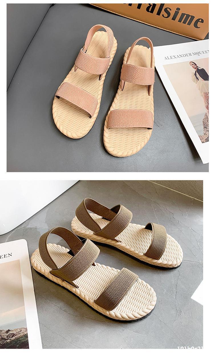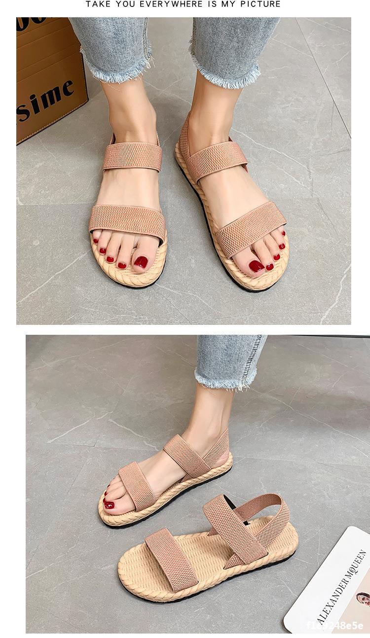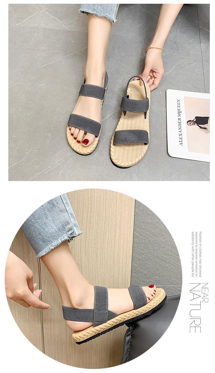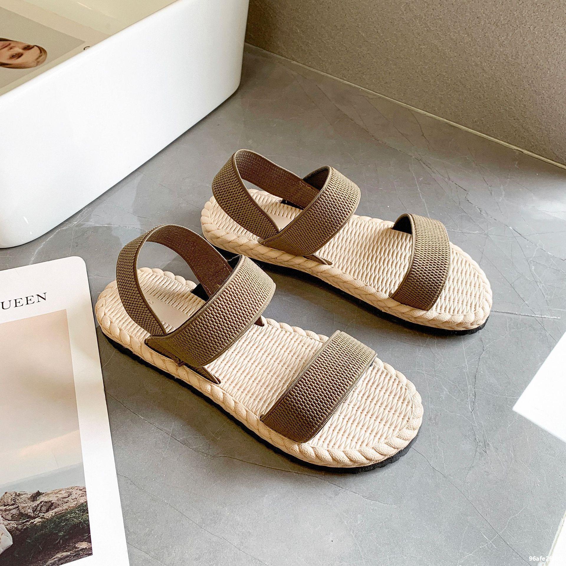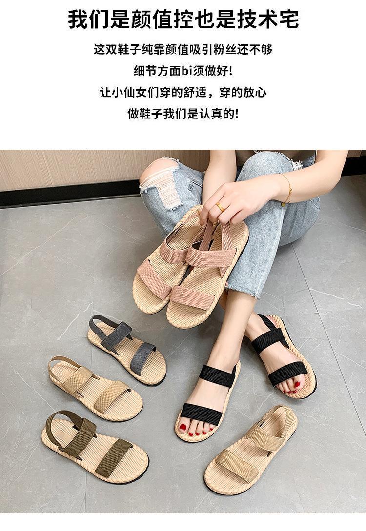여성용 신축성있는 밴드 크로스 플랫 슈즈 2023 새로운 샌들 여성용 여름 착용 모조 짚 짠 린넨 로마 샌들스토어 가기
