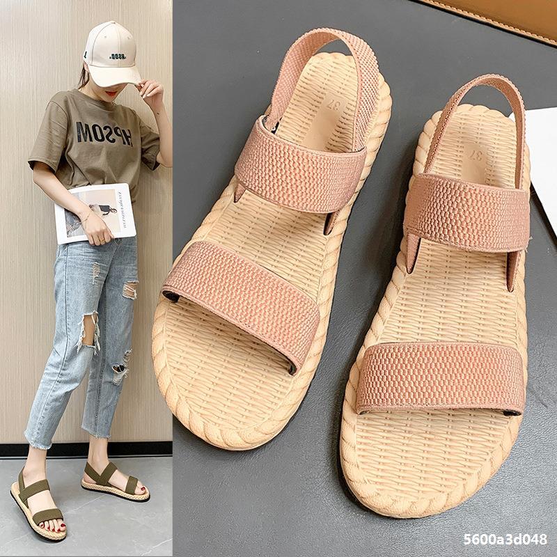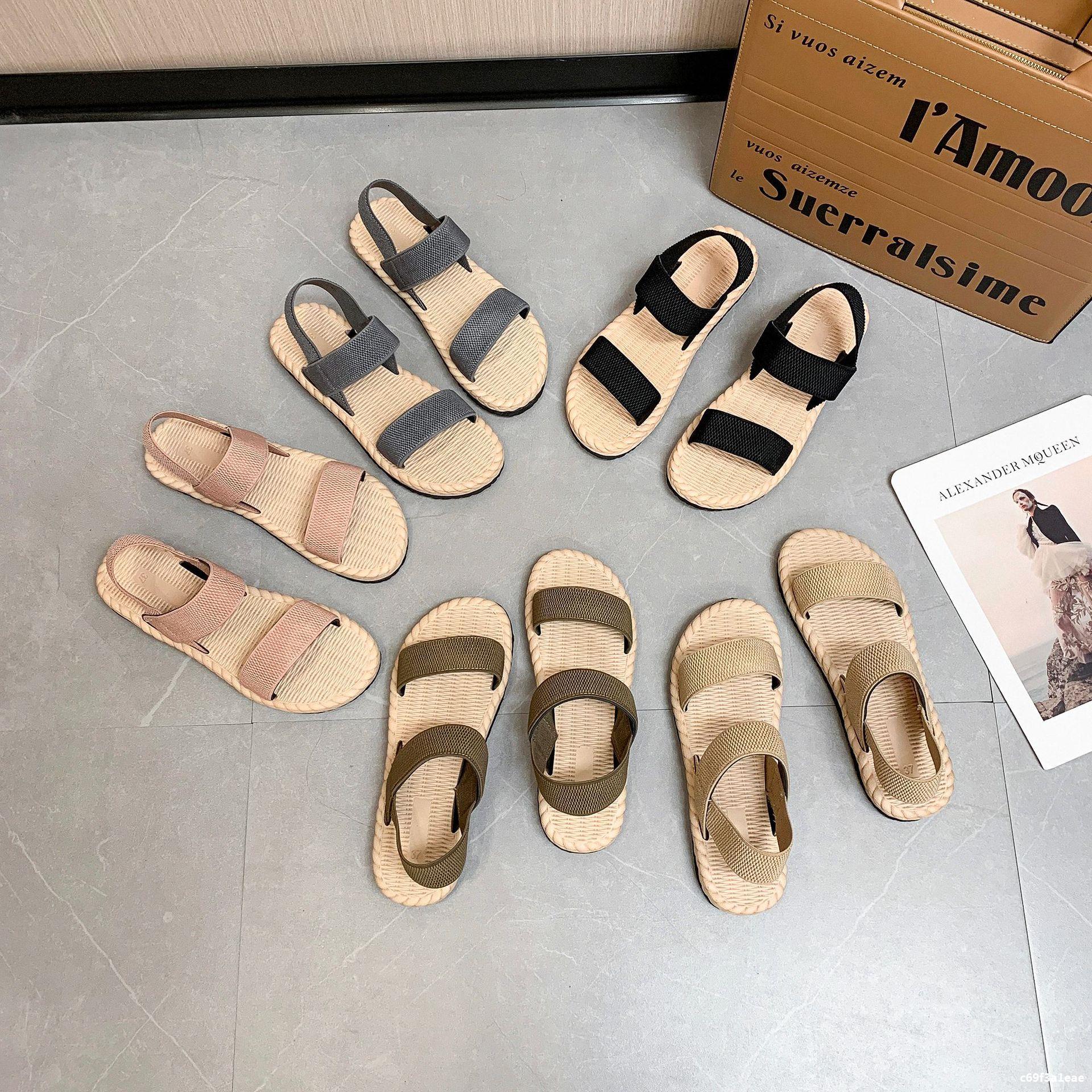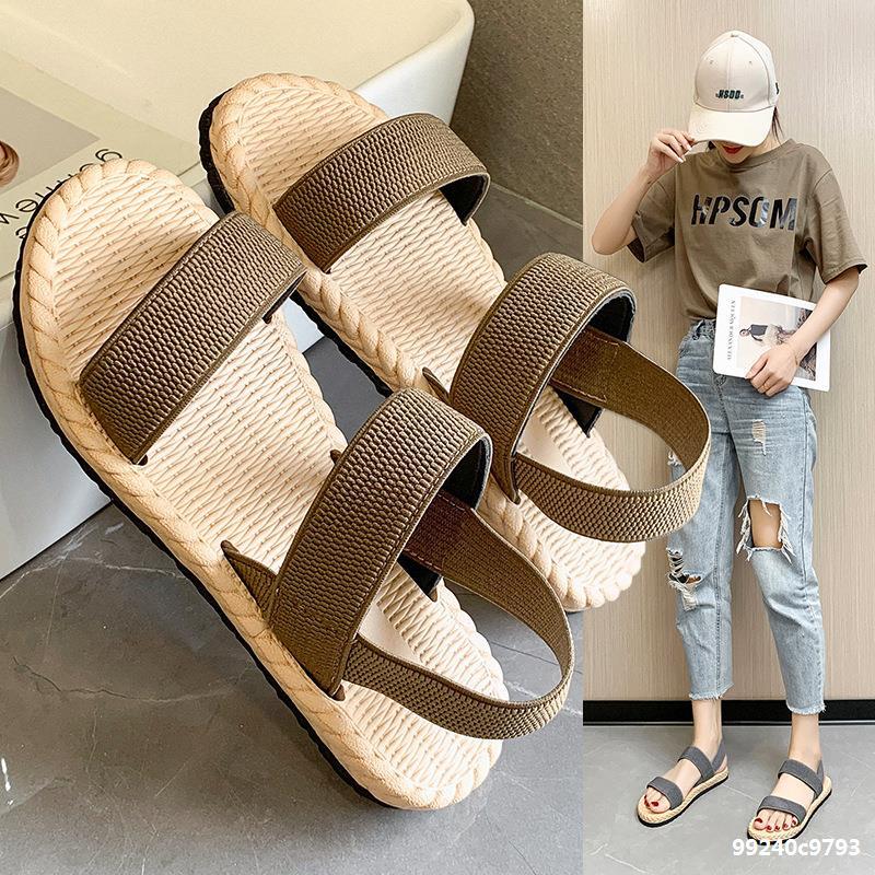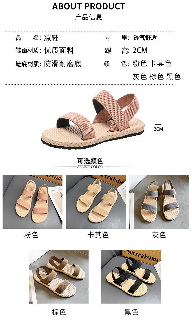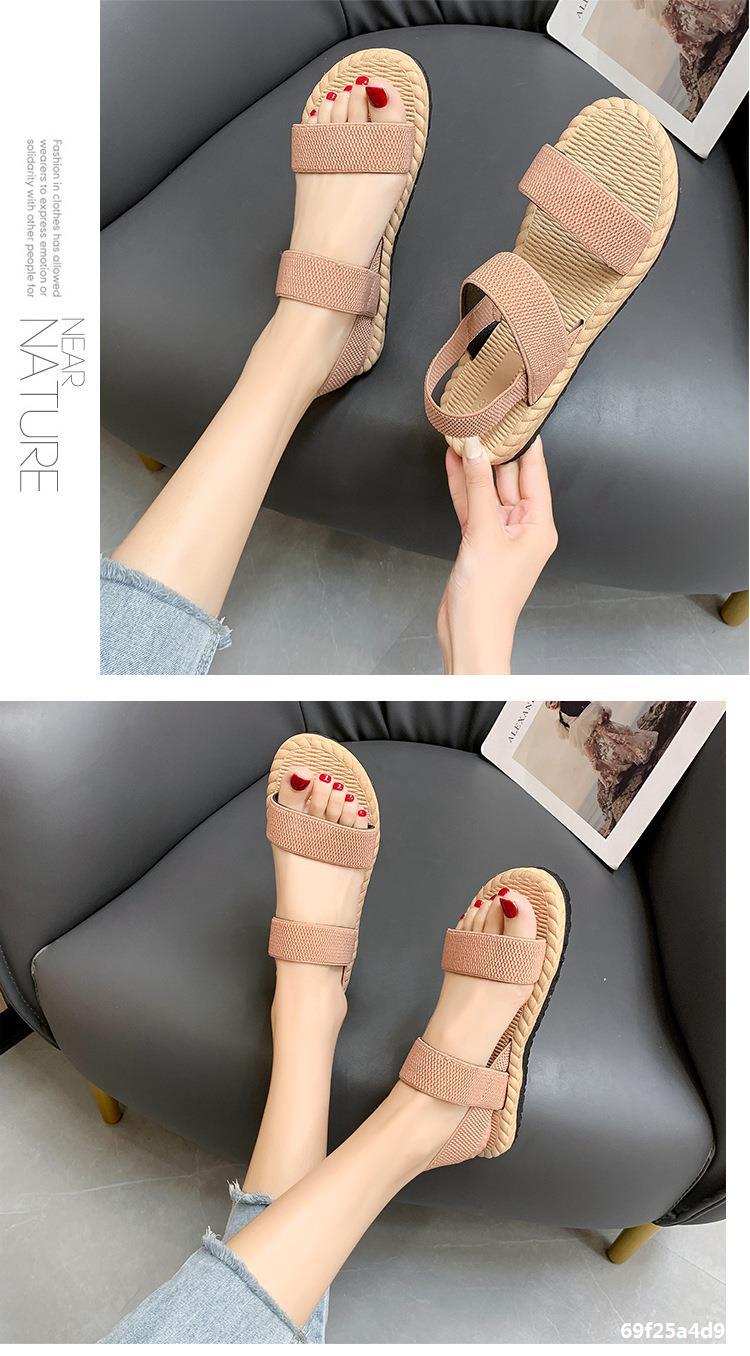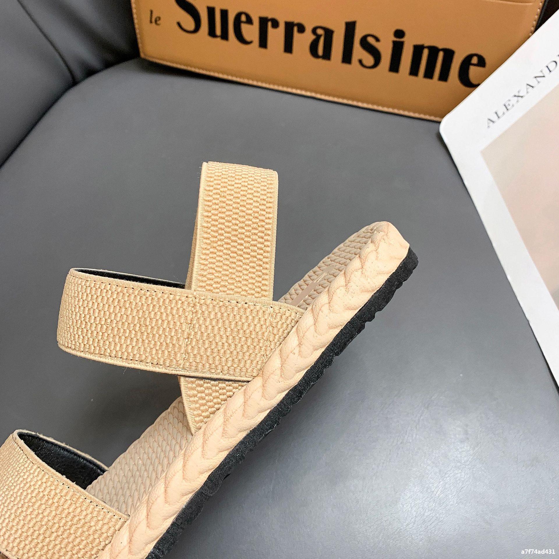 여성용 신축성있는 밴드 크로스 플랫 슈즈 2023 새로운 샌들 여성용 여름 착용 모조 짚 짠 린넨 로마 샌들스토어 가기