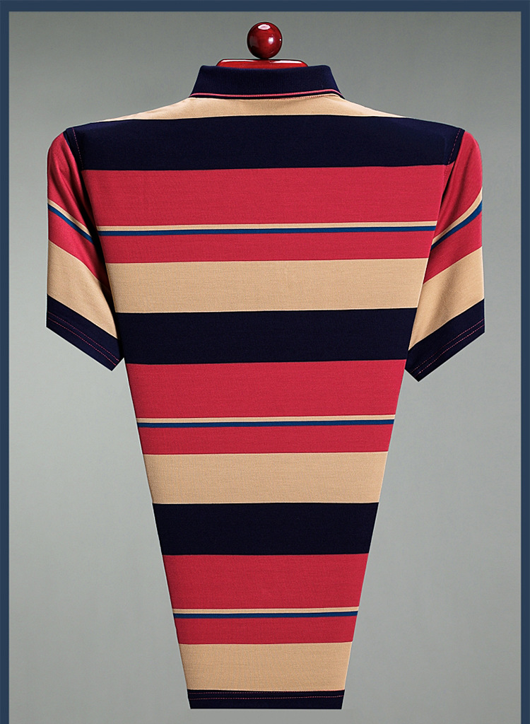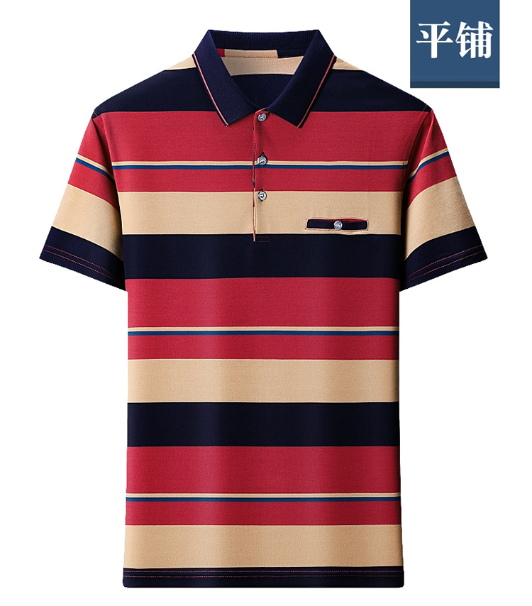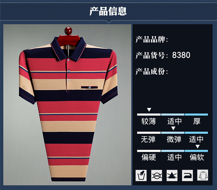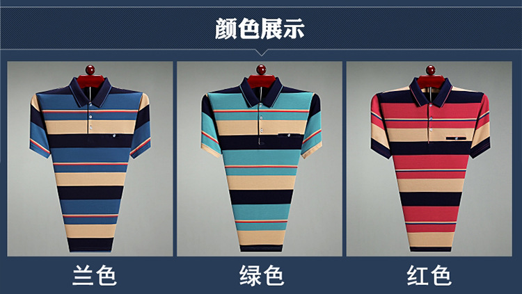新款撞色带领t恤男式夏季薄款上衣中青年休闲男装短袖条纹体恤潮