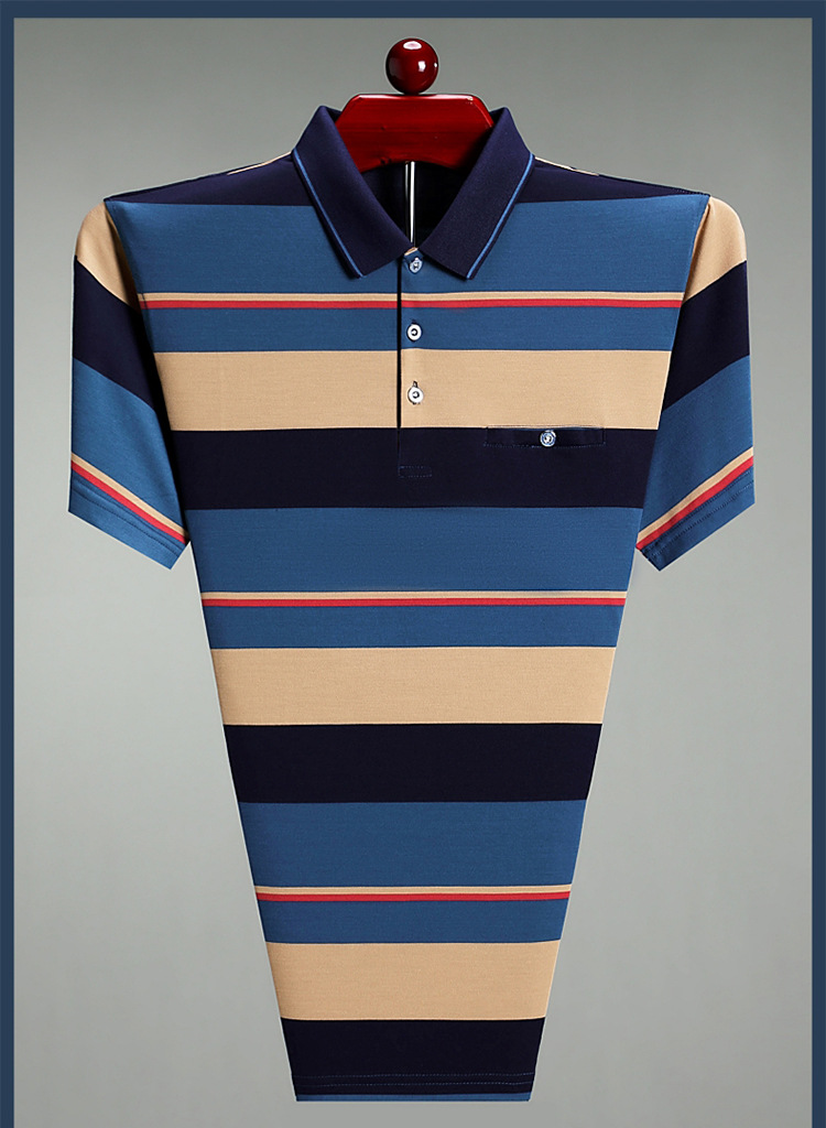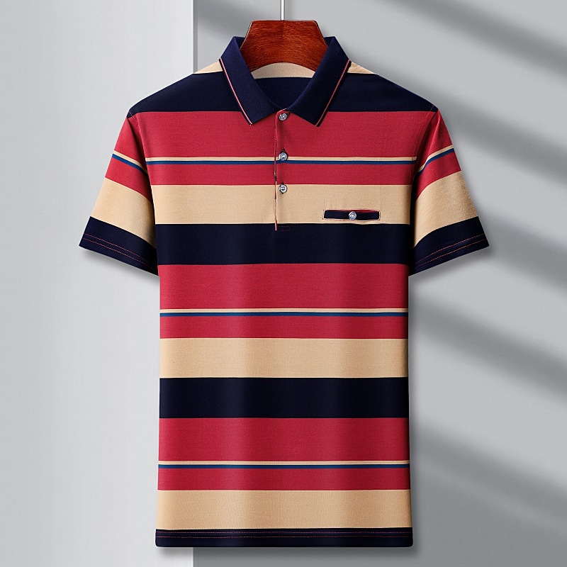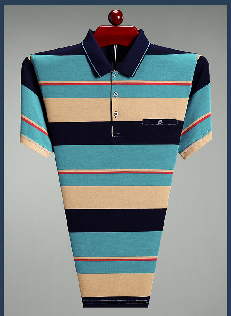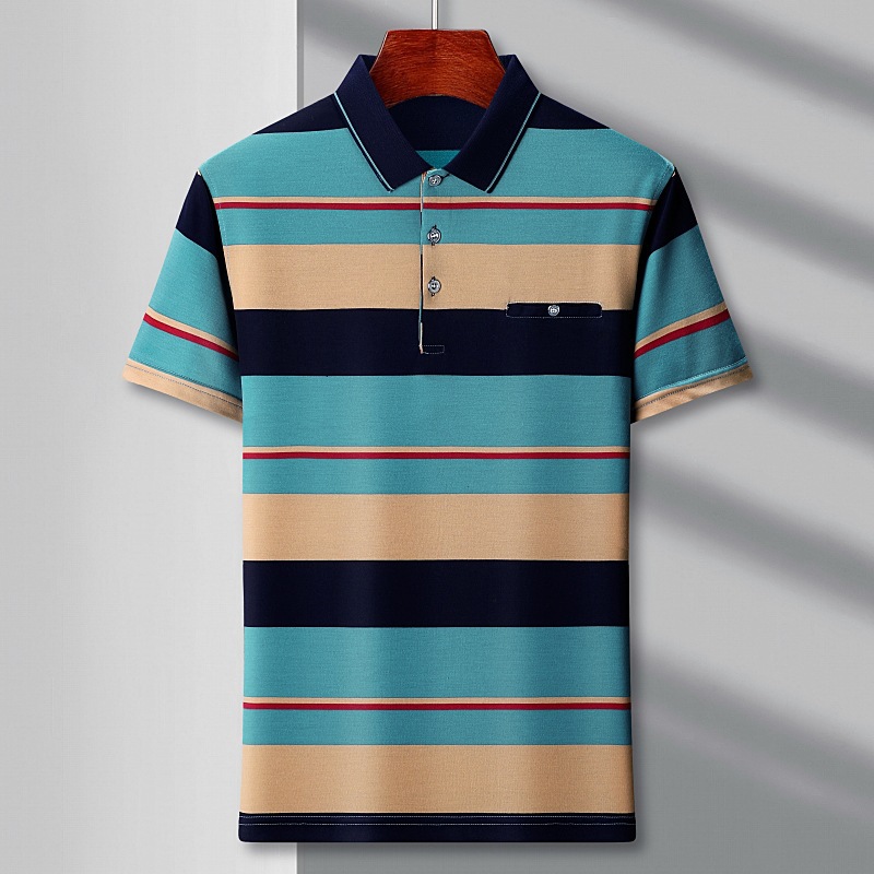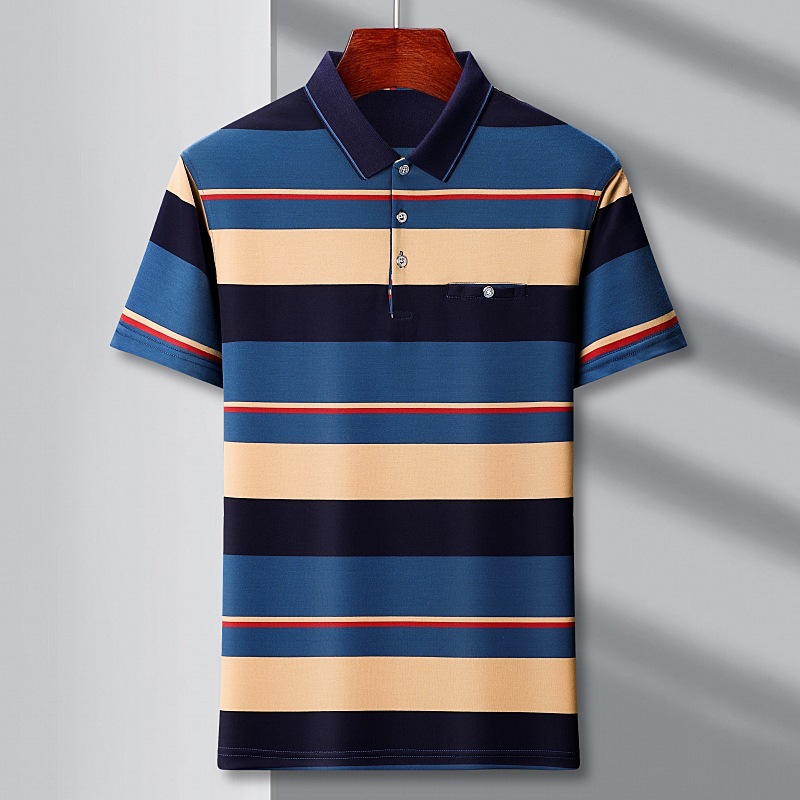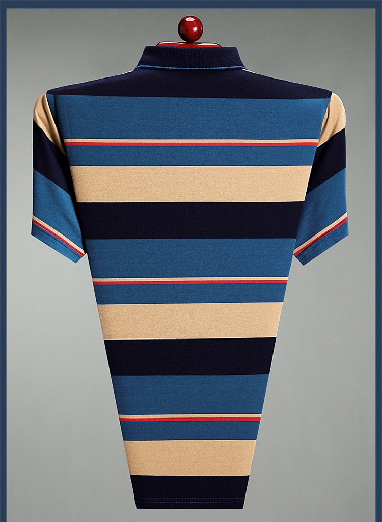 새로운 대비 색상 Led 티셔츠 남성용 여름 얇은 탑 영 및 중년 캐주얼 남성용 반팔 스트라이프 트렌디 티셔츠