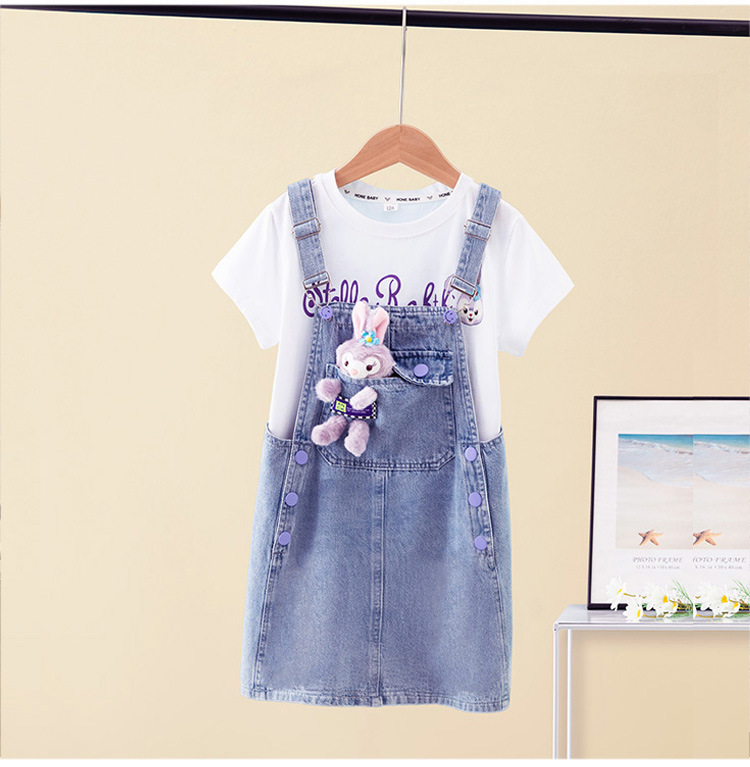 소녀 데님 서스펜더 스커트 세트 여름 원피스 미디어와 큰 아이들 느슨한 한국 캐주얼 서스펜더 스커트 투피스 세트 패션스토어 가기