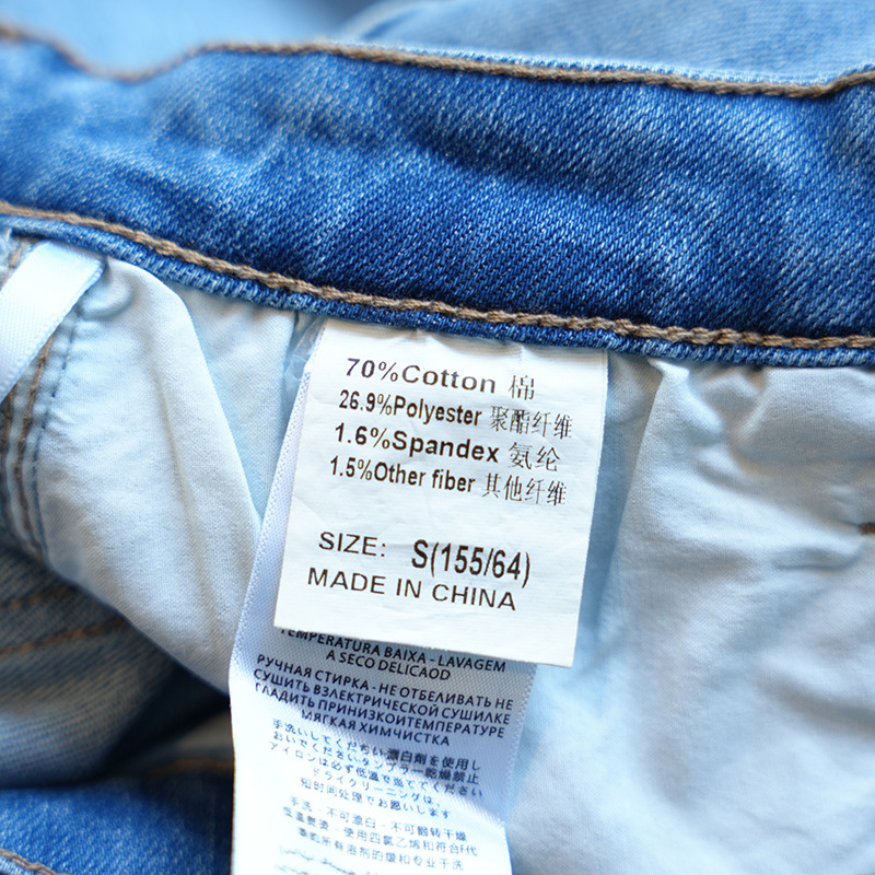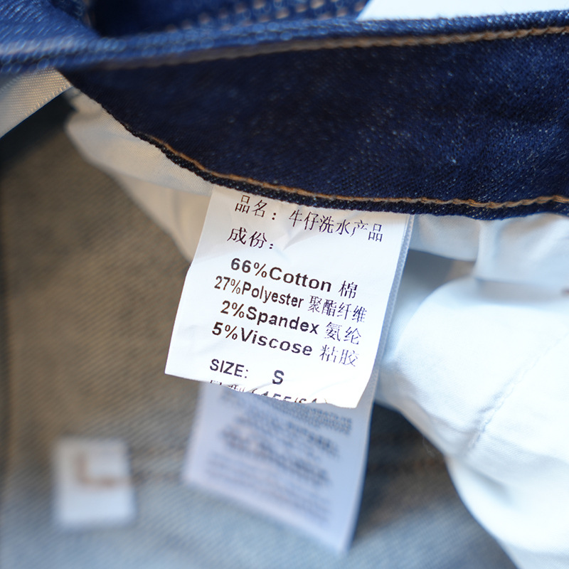 深蓝:70%棉,26.9%聚酯纤维,1.6%氨纶,1.5%其它纤维