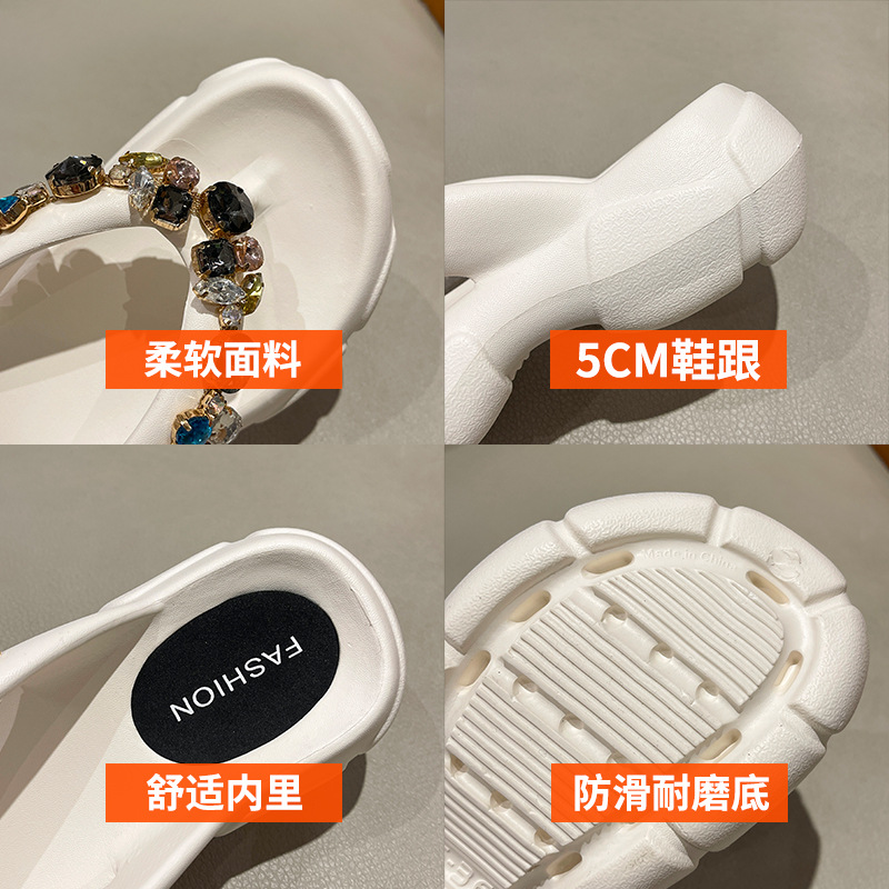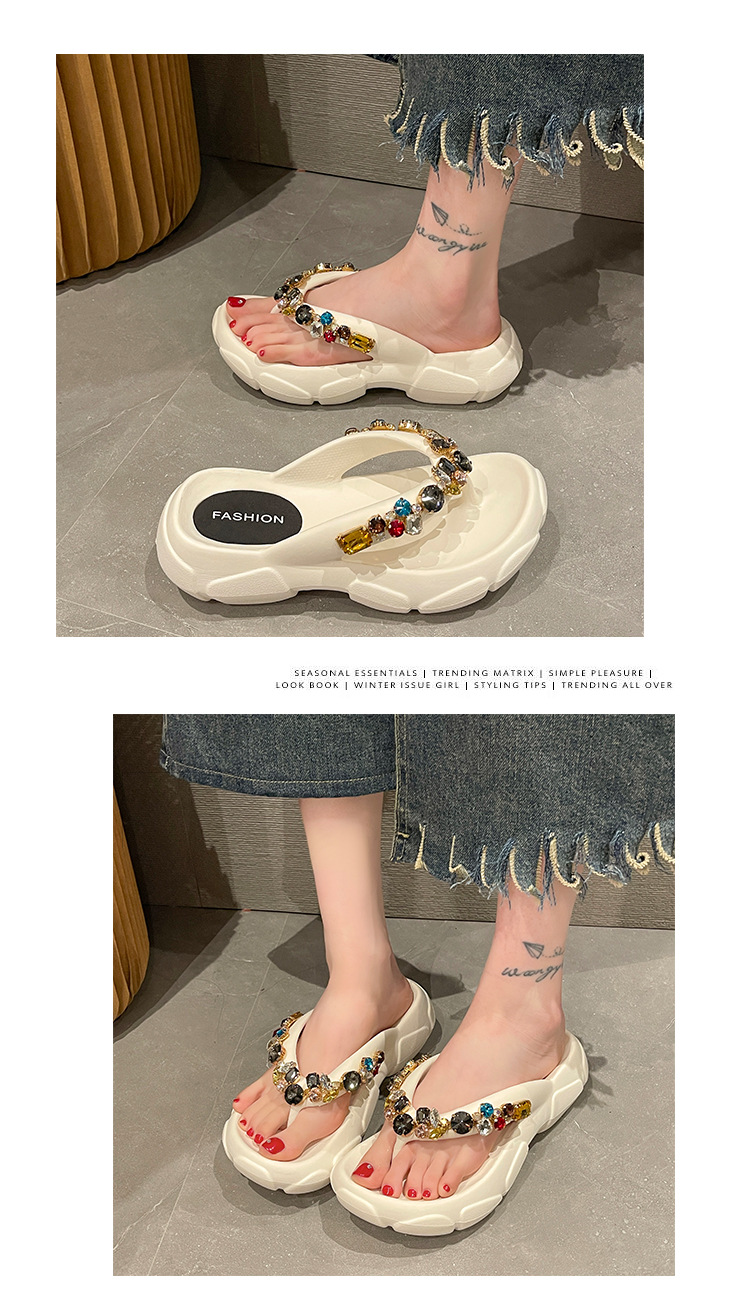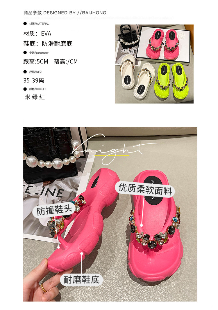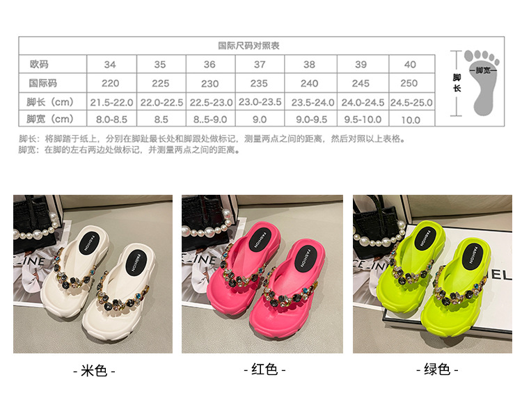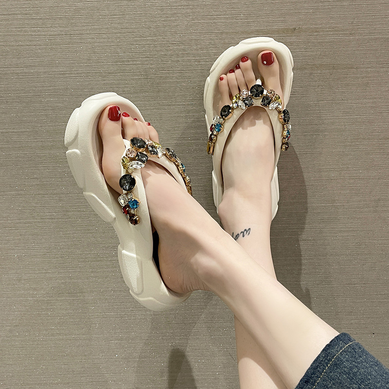 두꺼운 바닥 모조 다이아몬드 플립 플롭 여성용 여름 아웃도어 웨어 고급 패션 인터넷-유명한 모든 경기 미끄럼 방지 플립 플롭 비치 샌들스토어 가기