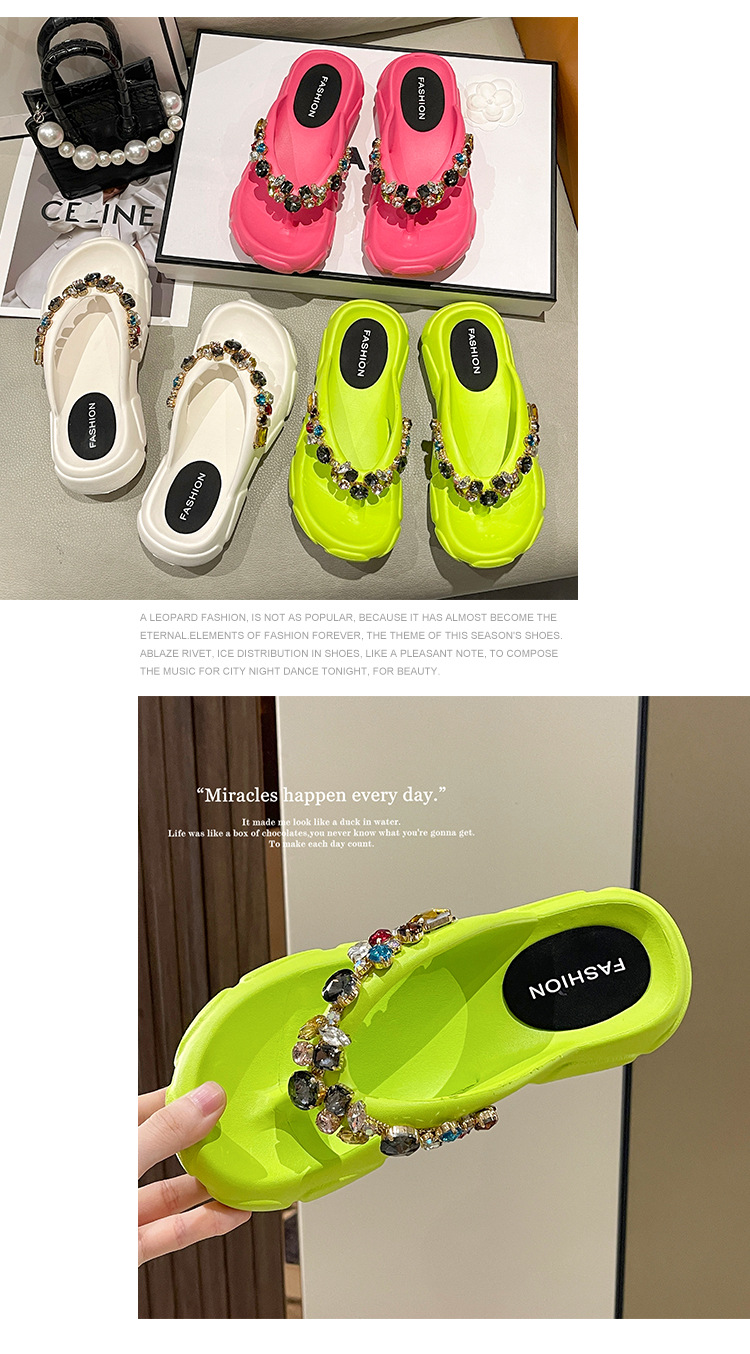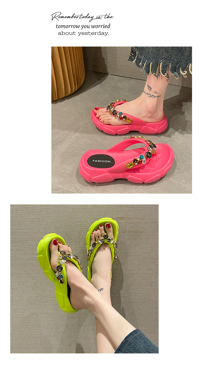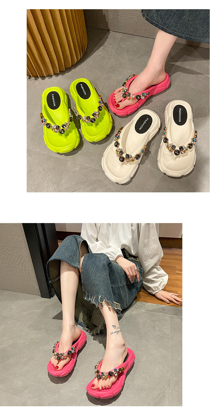 두꺼운 바닥 모조 다이아몬드 플립 플롭 여성용 여름 아웃도어 웨어 고급 패션 인터넷-유명한 모든 경기 미끄럼 방지 플립 플롭 비치 샌들스토어 가기