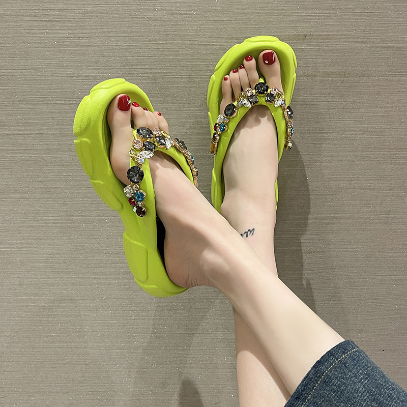 두꺼운 바닥 모조 다이아몬드 플립 플롭 여성용 여름 아웃도어 웨어 고급 패션 인터넷-유명한 모든 경기 미끄럼 방지 플립 플롭 비치 샌들