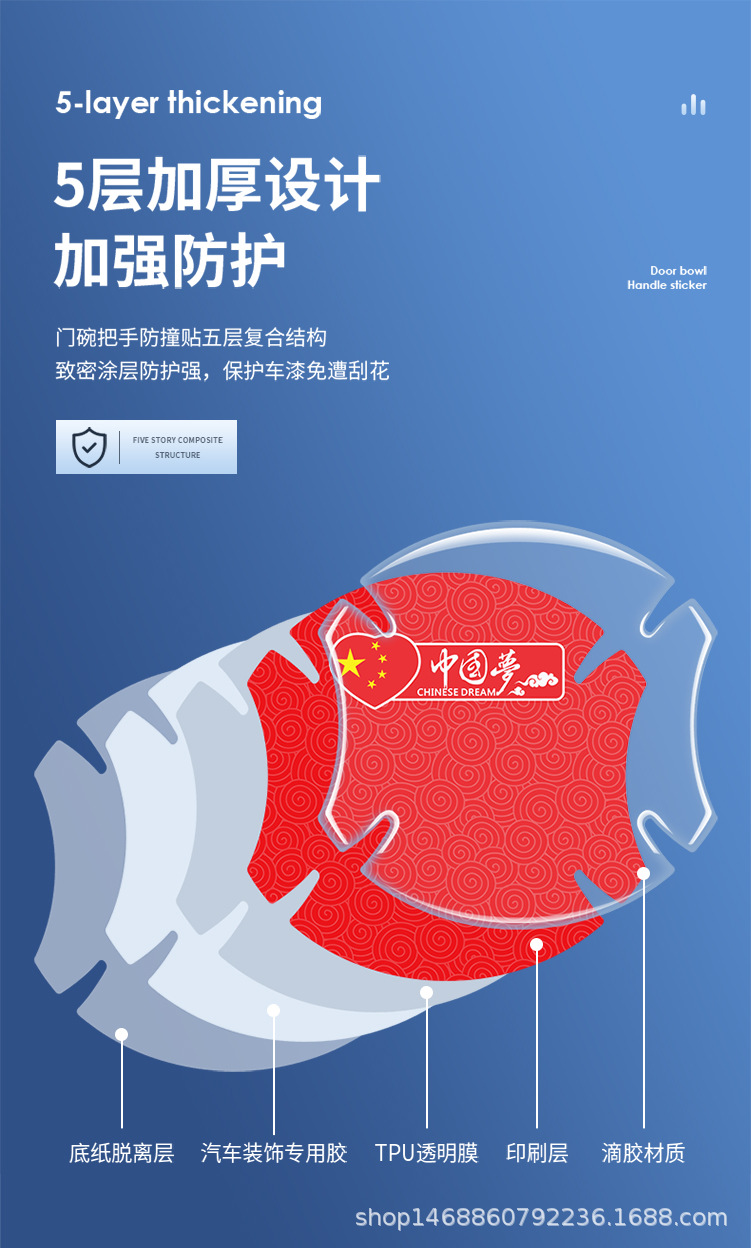 • 두꺼운 접착제 드롭 [차이니즈 드림] 도어 볼 + 핸들 + 충돌 방지/14 장 세트