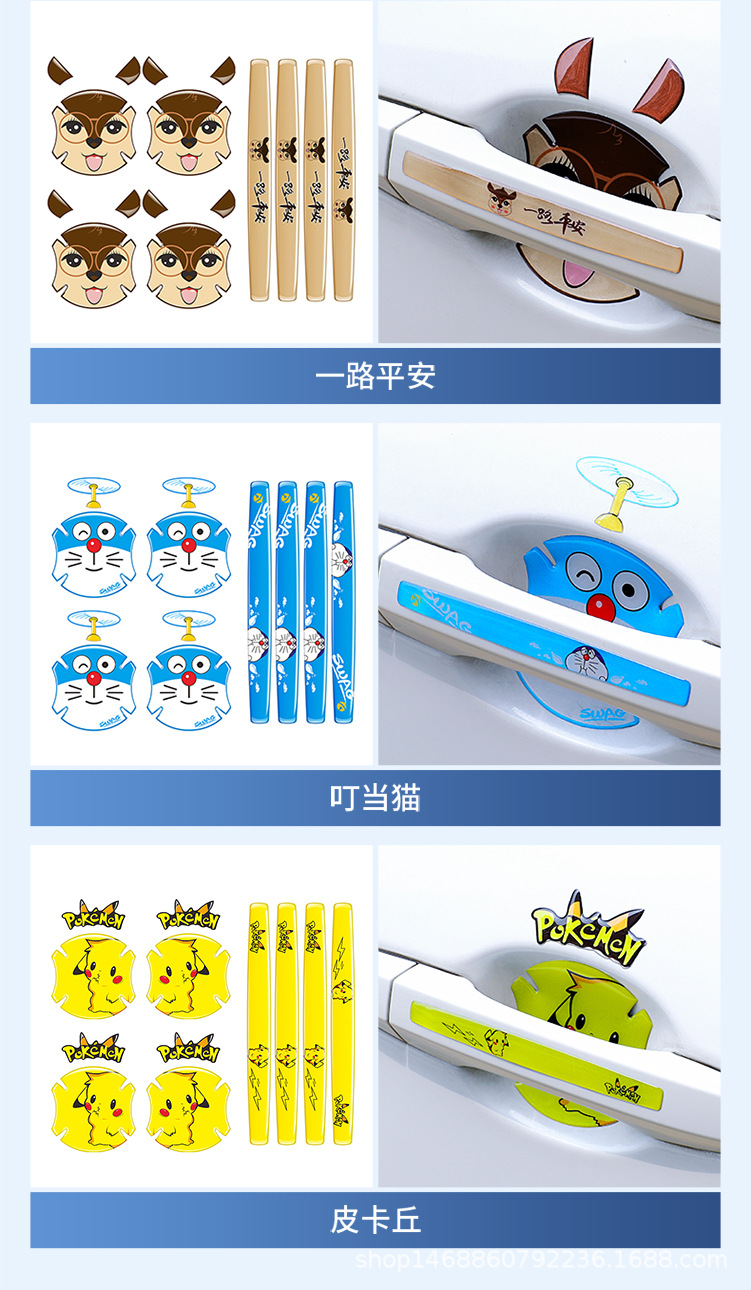 자동차 도어 핸들 스크래치 방지 스티커 만화 귀여운 핸들 충돌 방지 스트립 도어 보울 보호 스티커 페인트 보호 스티커스토어 가기