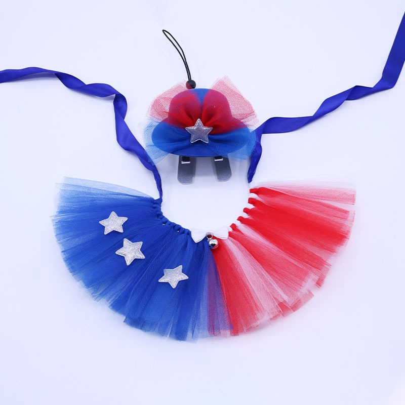 크로스 국경 새로운 미국 독립 기념일 고양이 파란색과 흰색 빨간색 투투 원피스 고양이 개 모자 애완 동물 원피스 용품스토어 가기