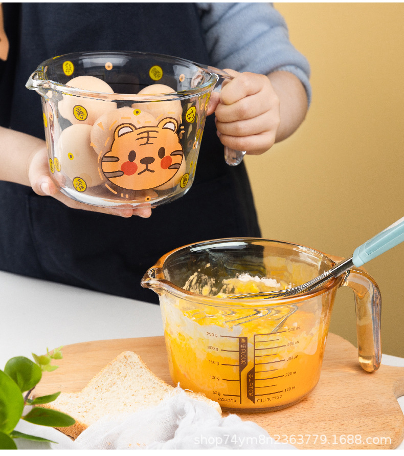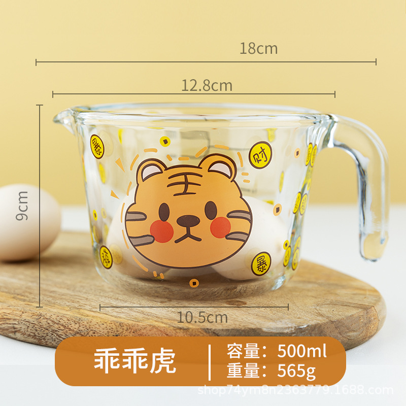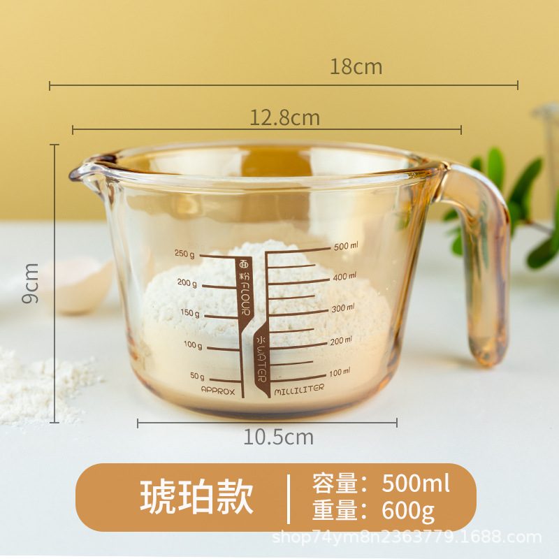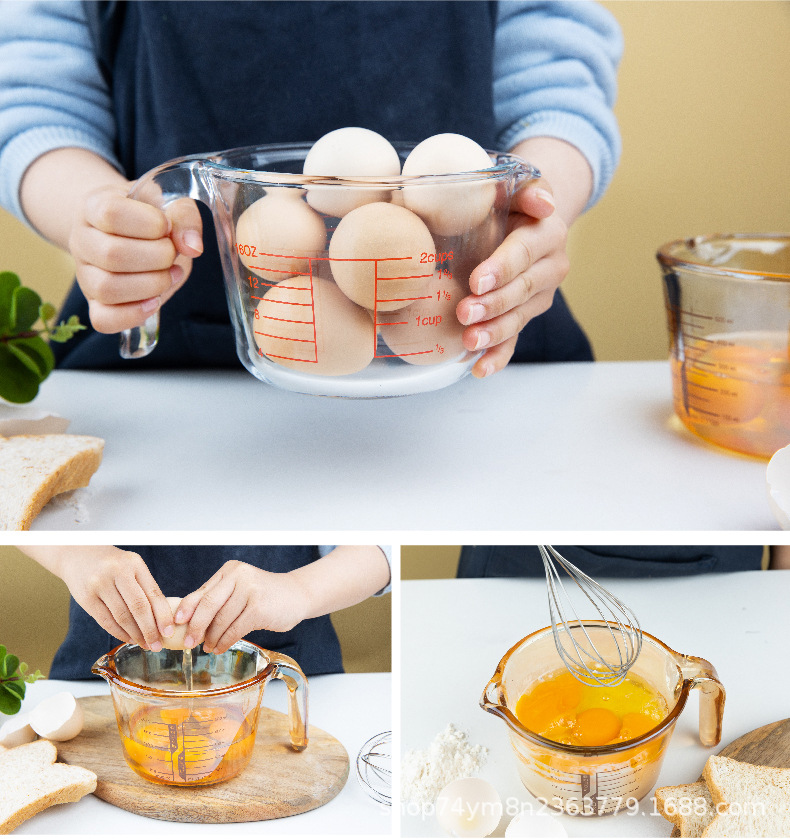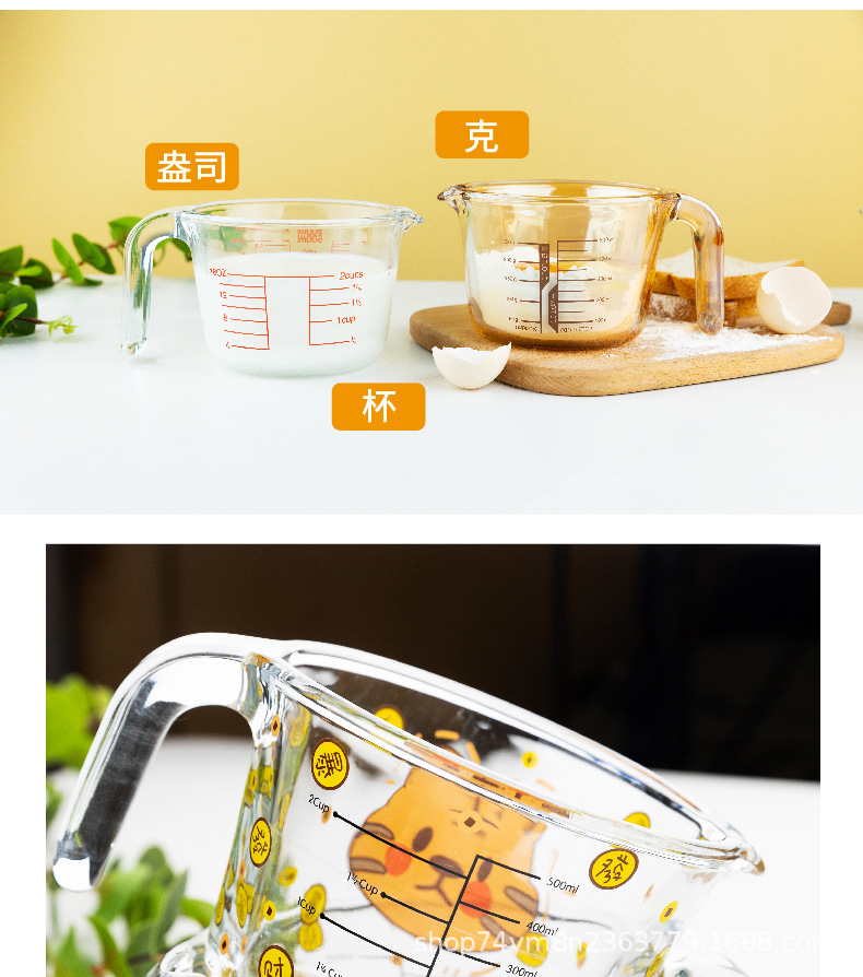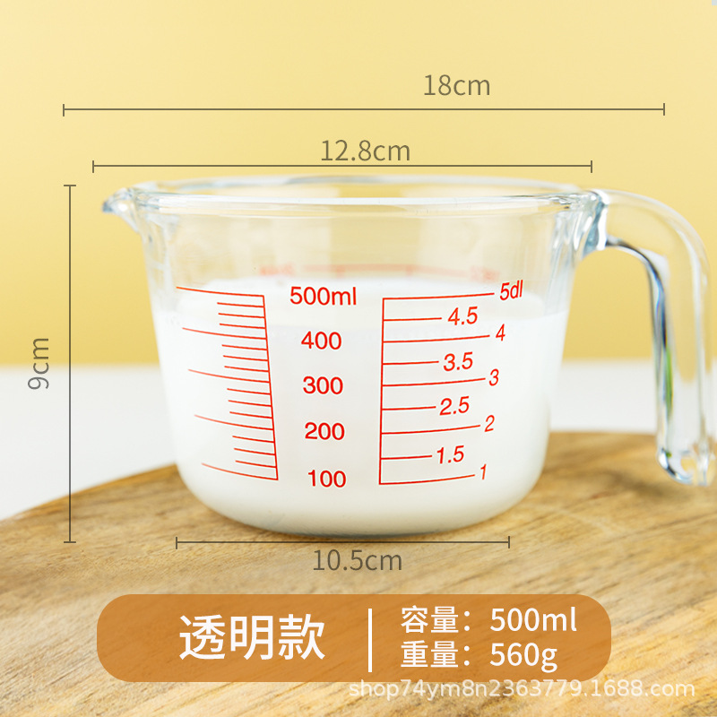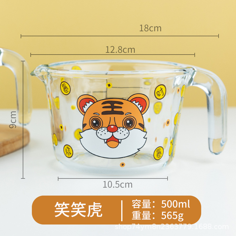 체중계 손잡이가 있는 붕규산 유리 측정 컵 가정용 우유 컵 아침 식사 컵 두꺼운 내열 전자 레인지 베이킹