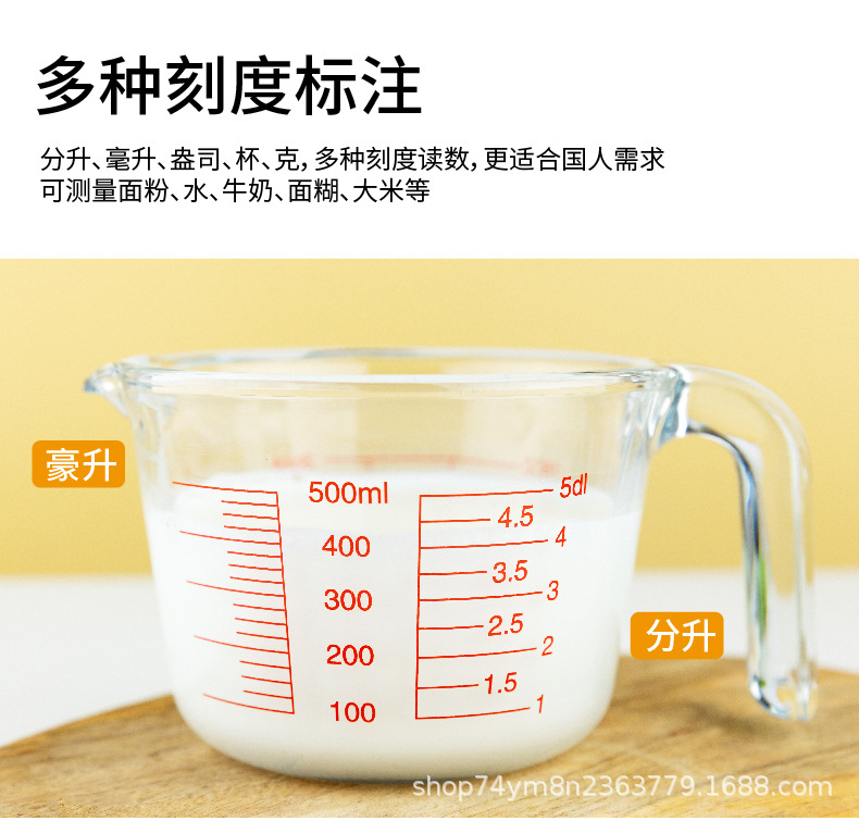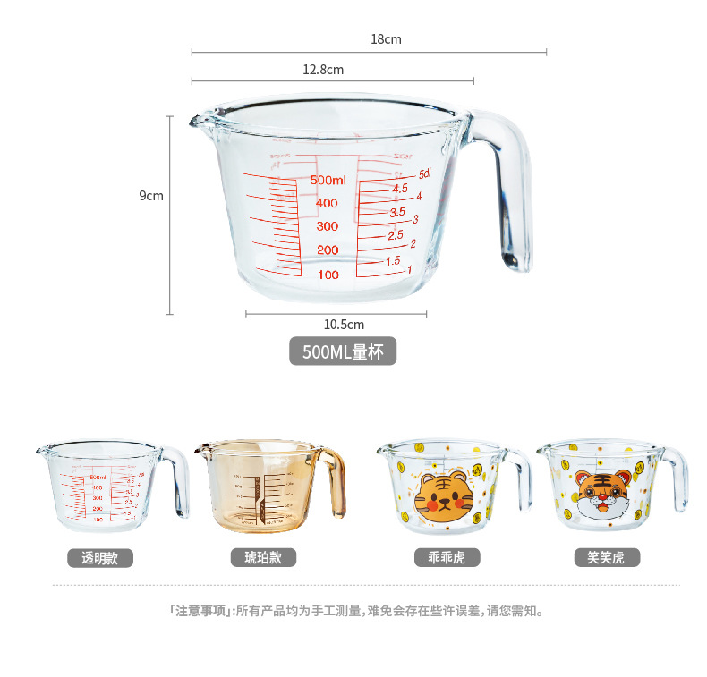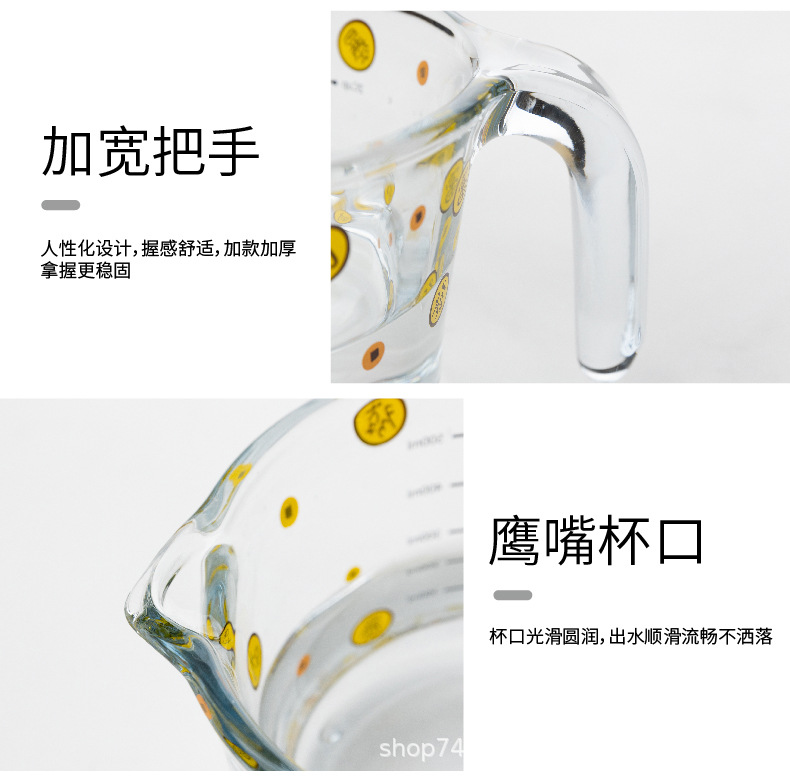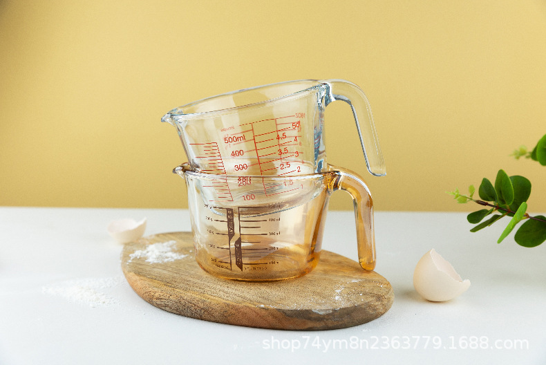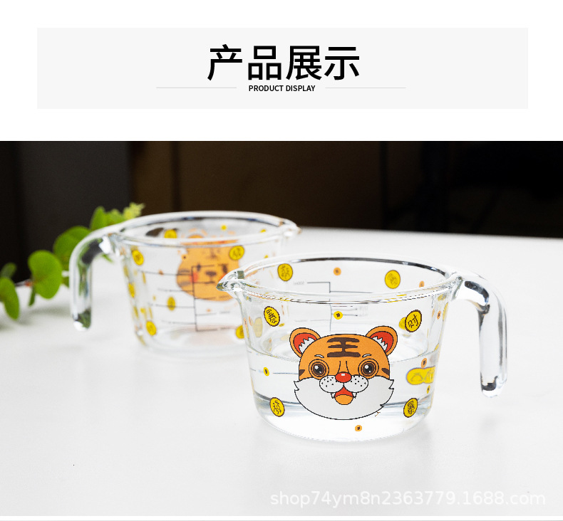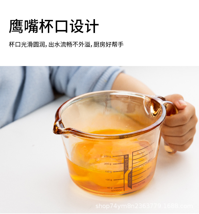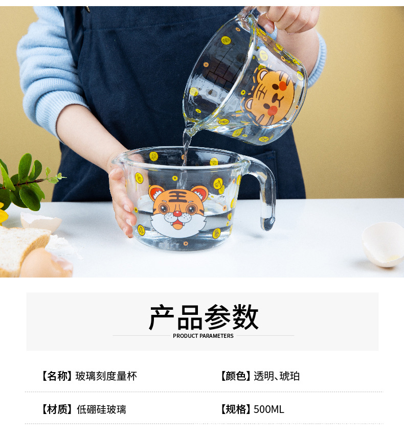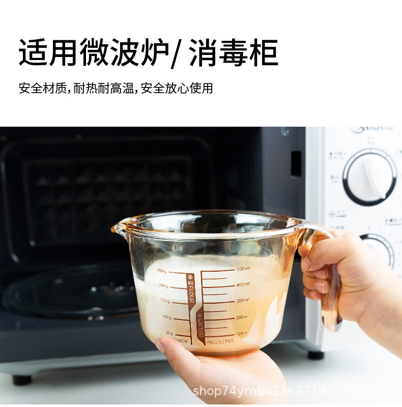 체중계 손잡이가 있는 붕규산 유리 측정 컵 가정용 우유 컵 아침 식사 컵 두꺼운 내열 전자 레인지 베이킹