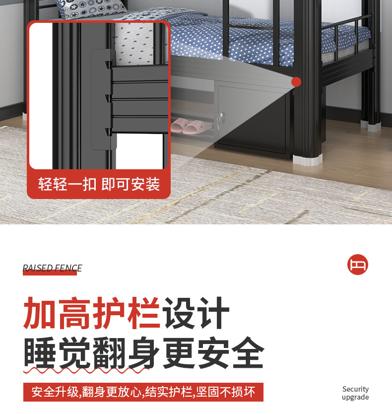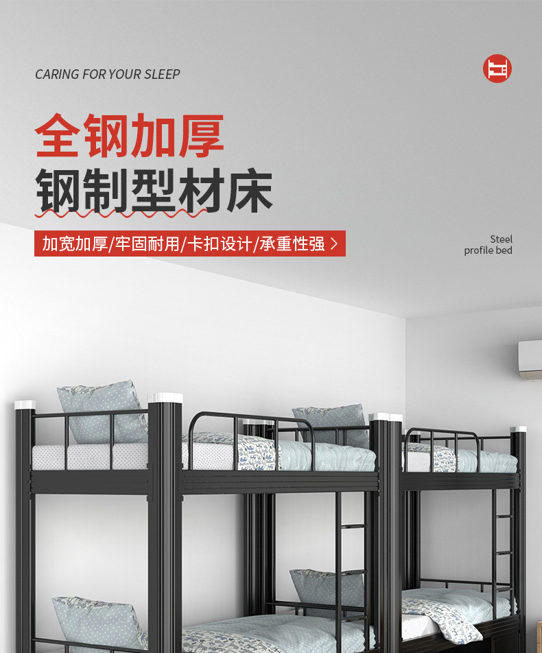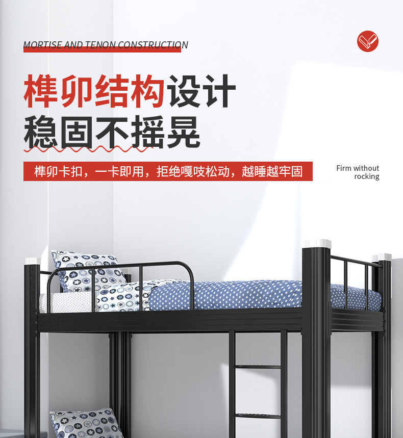강철 이층 이층 침대 학교 기숙사 더블 침대 침실 높고 낮은 침대 건설 현장 철제 프레임 침대 아파트 프로필 침대