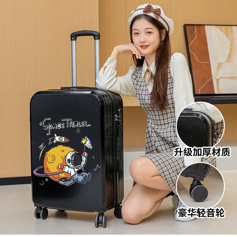 여성용 만화 패턴 여행 가방 20인치 범용 휠 비밀번호 상자 26 내구성이 뛰어난 튼튼한 여행 가방 트롤리 케이스스토어 가기