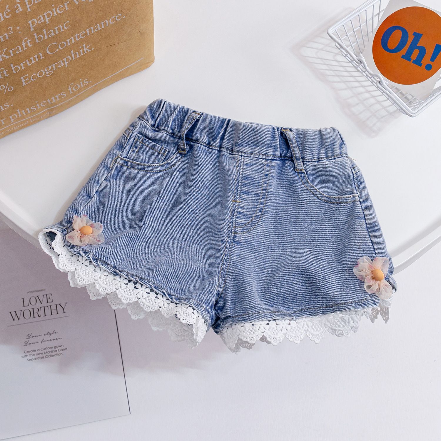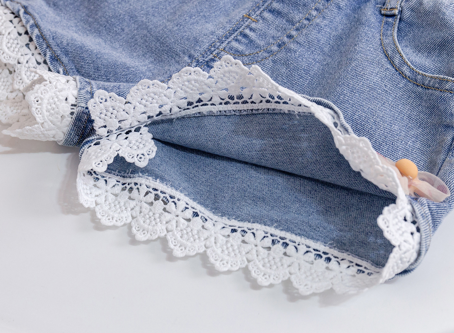 童装女童蕾丝花边牛仔短裤洋气婴儿童夏装裤子女宝宝宽松热裤百搭