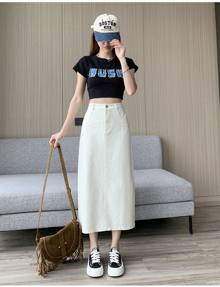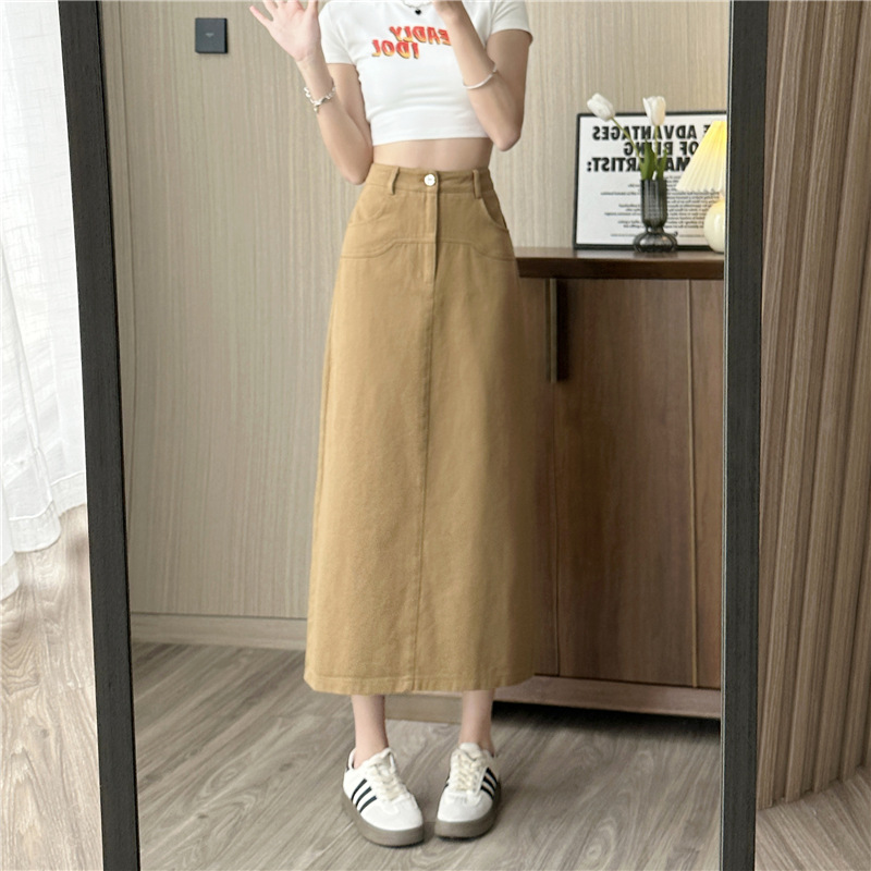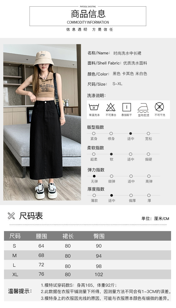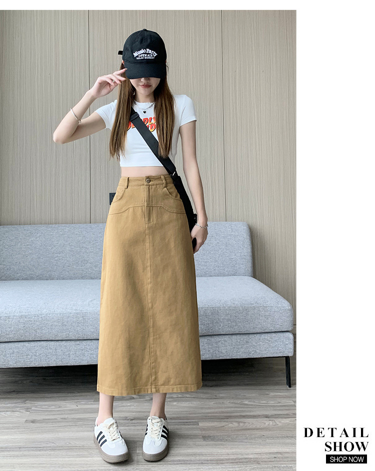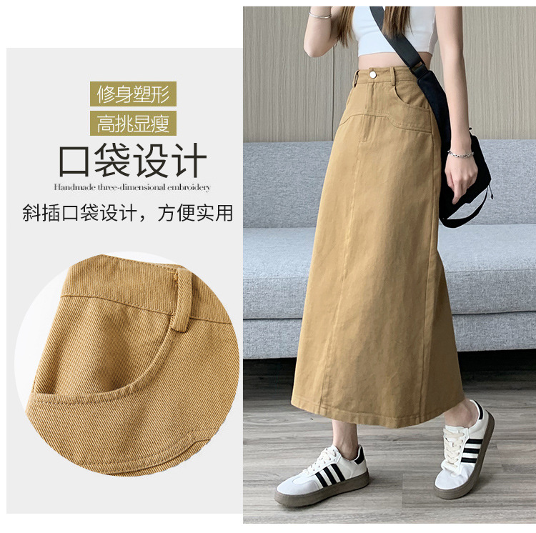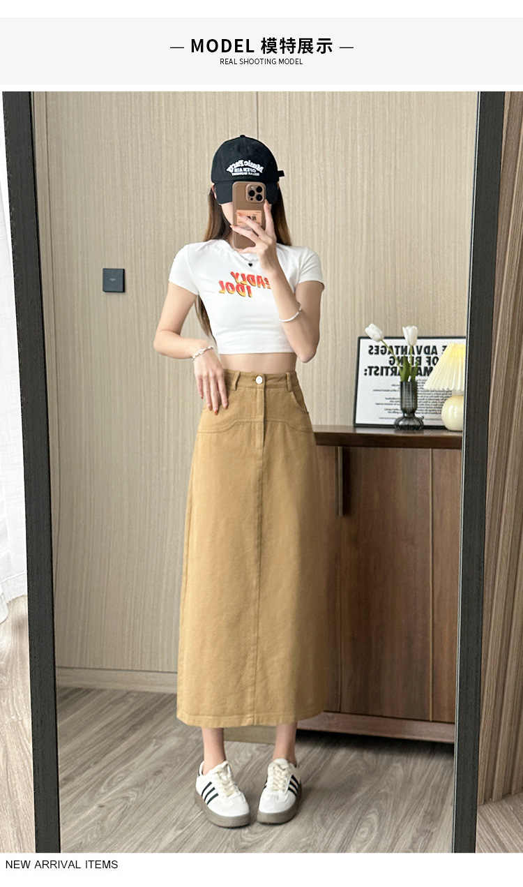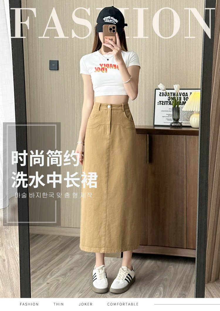 실제 촬영 데님 A라인 스커트 중간 길이 2025년 신상 트렌디 하이웨이스트 편안한 출퇴근용 힙커버 스커트 여성용스토어 가기