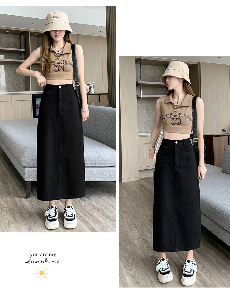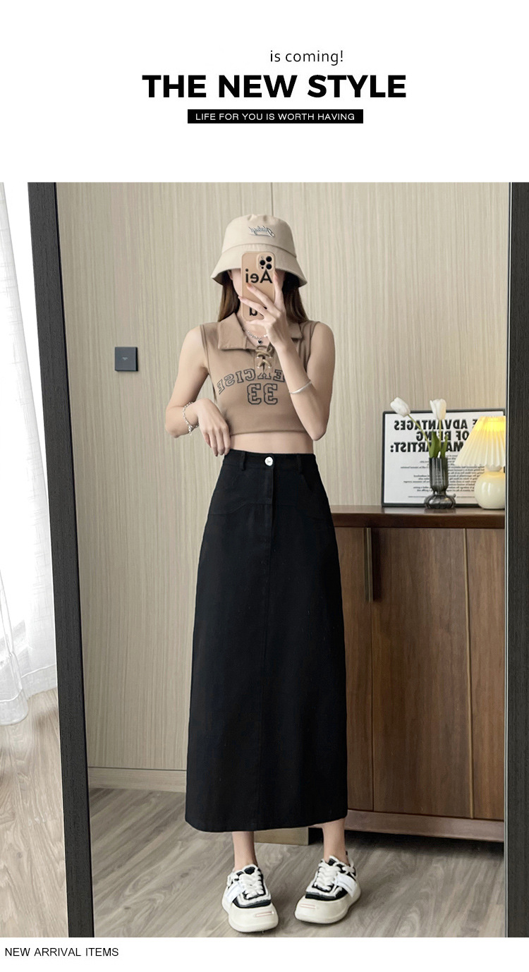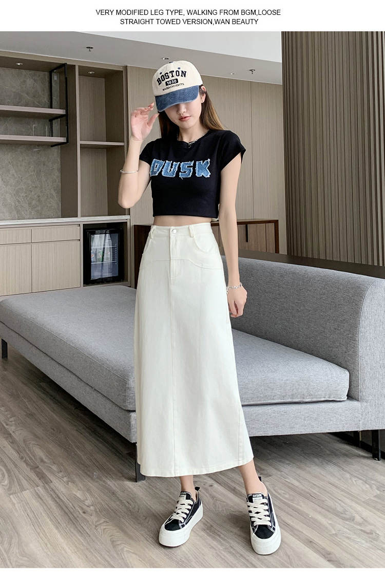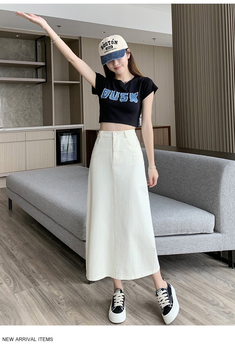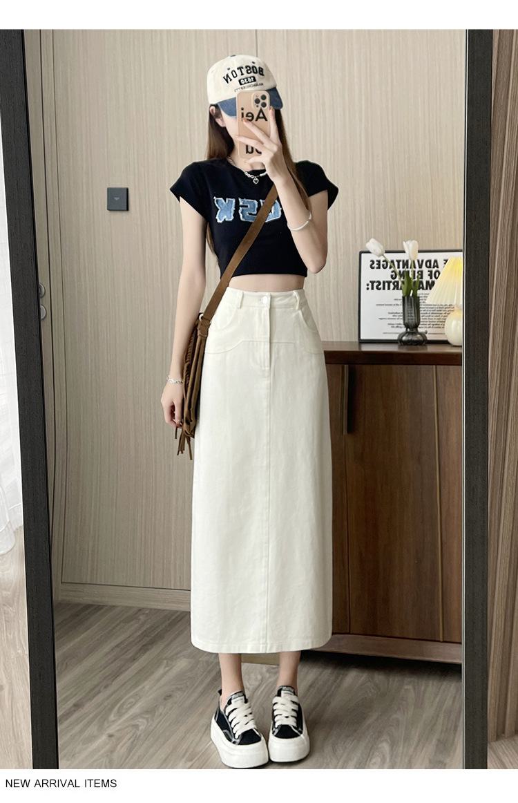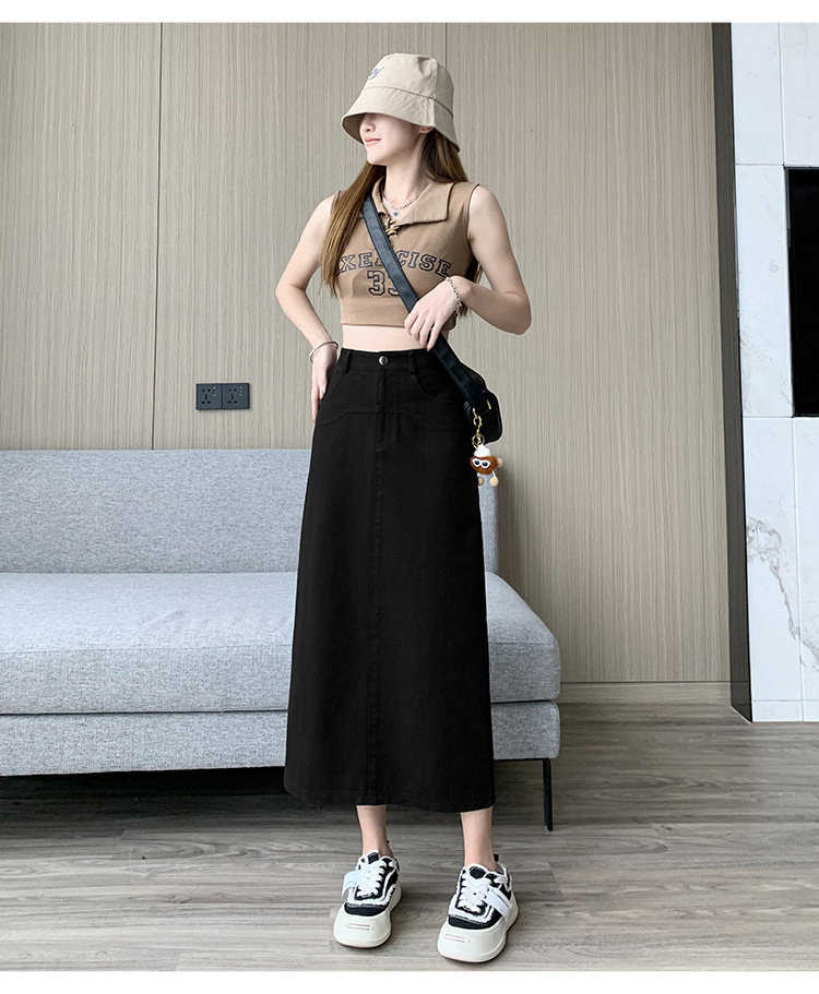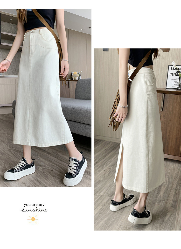 실제 촬영 데님 A라인 스커트 중간 길이 2025년 신상 트렌디 하이웨이스트 편안한 출퇴근용 힙커버 스커트 여성용스토어 가기