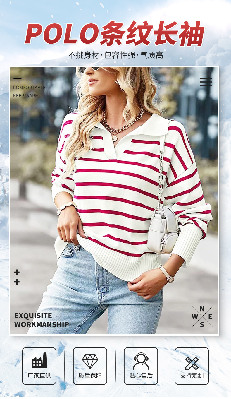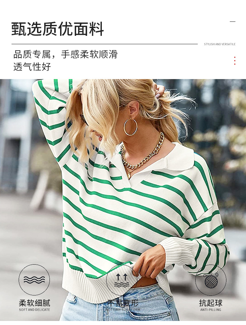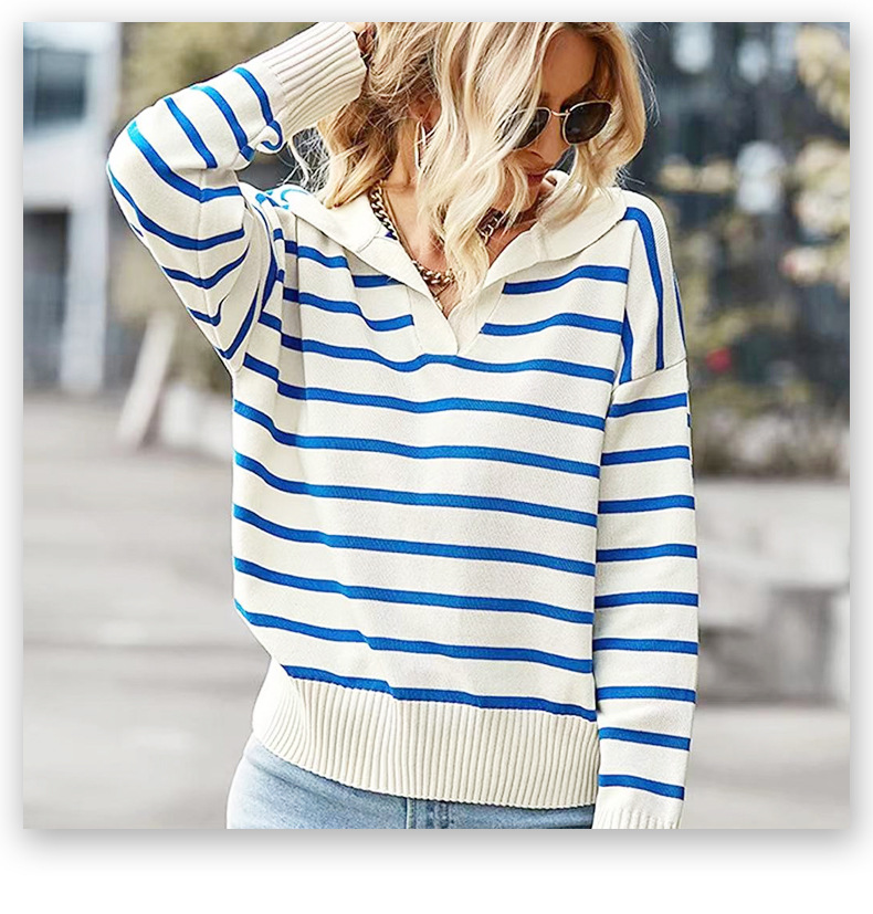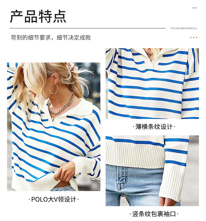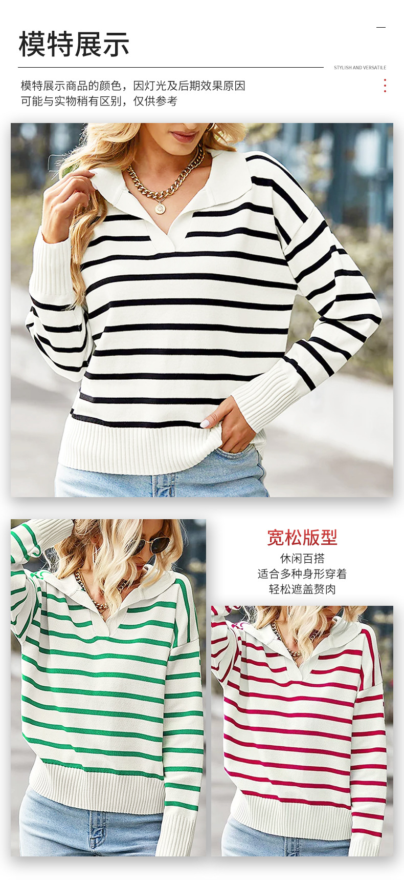 2023 대외 무역 신제품 아마존 뜨거운 판매 유럽과 미국 스타일 크로스 보더 여성 니트웨어 캐주얼 라펠 스트라이프 니트웨어스토어 가기