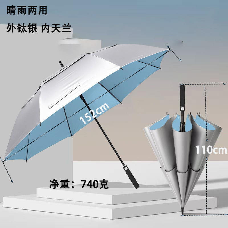 티타늄 실버 골프 우산 더블 레이어 40inch 긴 손잡이 우산 남성용 초대형 태양 그늘 스트레이트 폴 자동 광고 우산