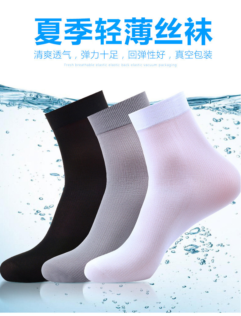 아이스 실크 양말 남성 여름 얇은 비즈니스 캐주얼 중반 송아지 양말 수직 스트립 통기성 땀 흡수 남성 스타킹 도매