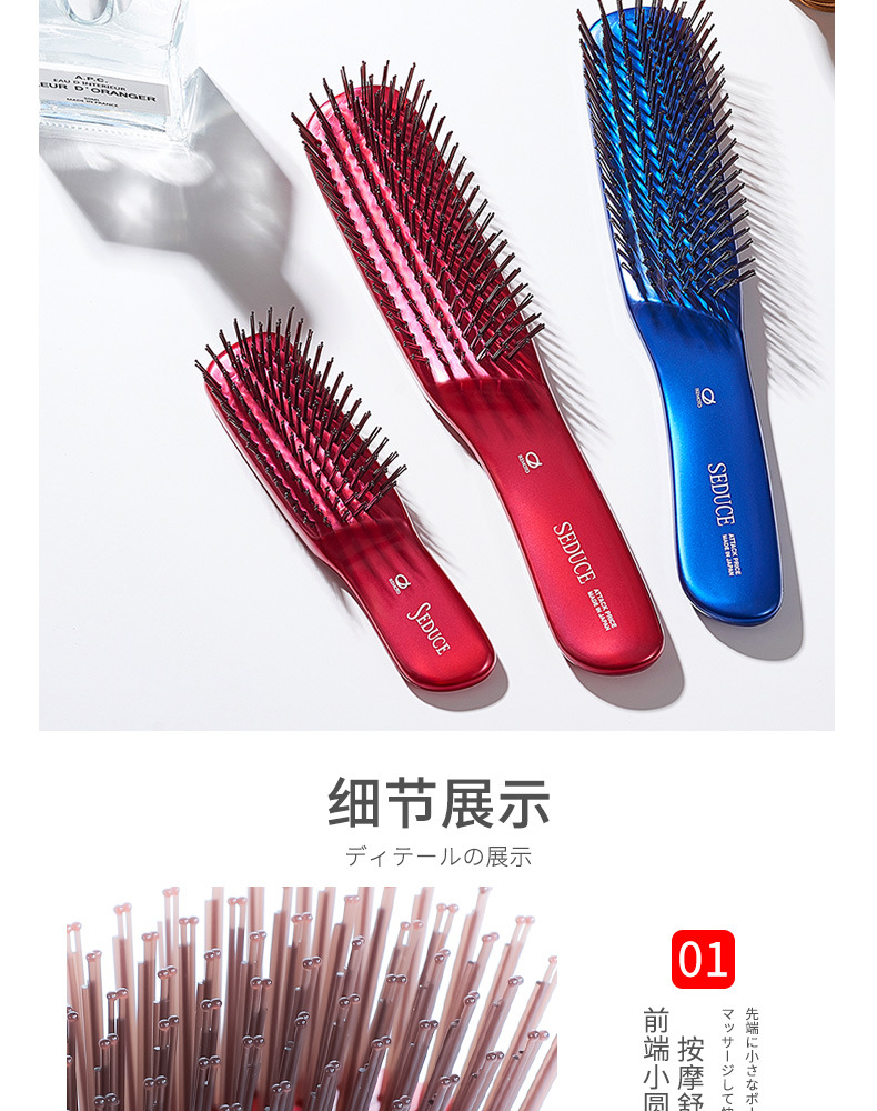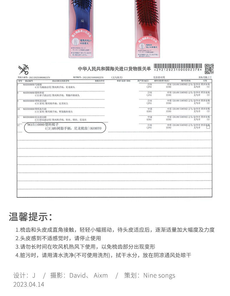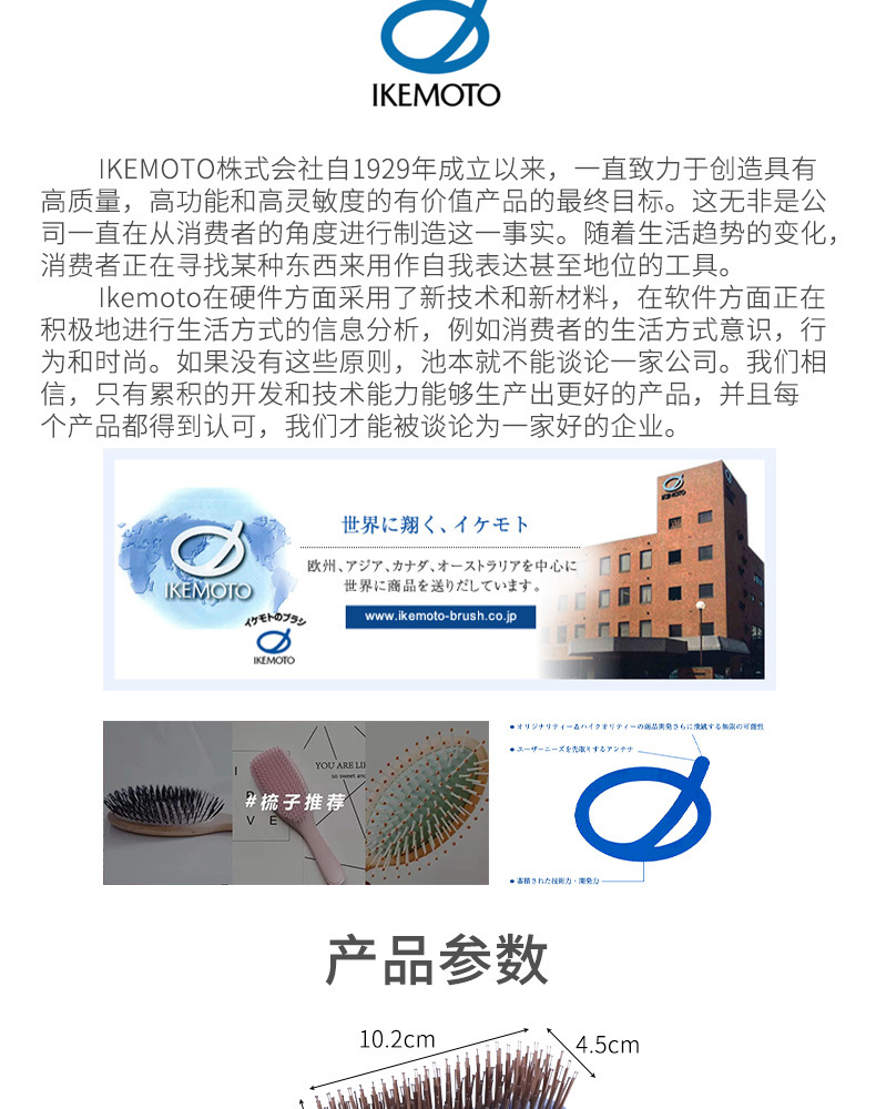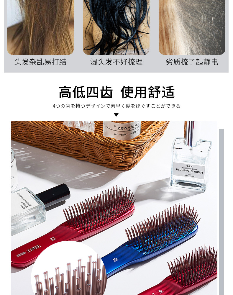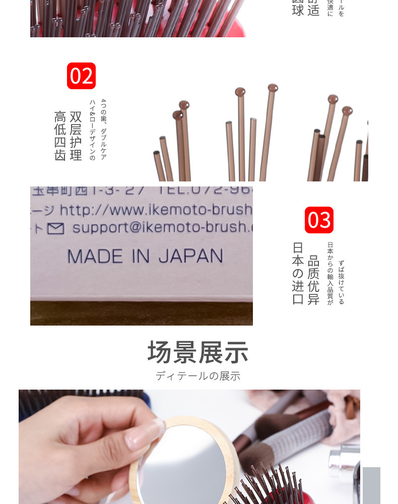 IKEMOTO 일본 수입 가정용 여성용 마사지 정전기 방지 빗 학생 휴대용 스테레오 스타일 헤어 빗