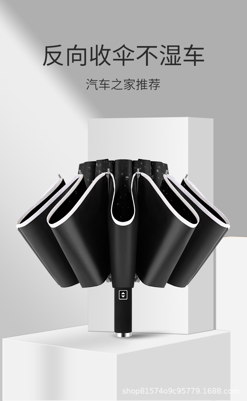 10 뼈 자동 역 우산 안전 반사 스트립 접는 비닐 양산 초대형 비즈니스 우산 인쇄 로고스토어 가기