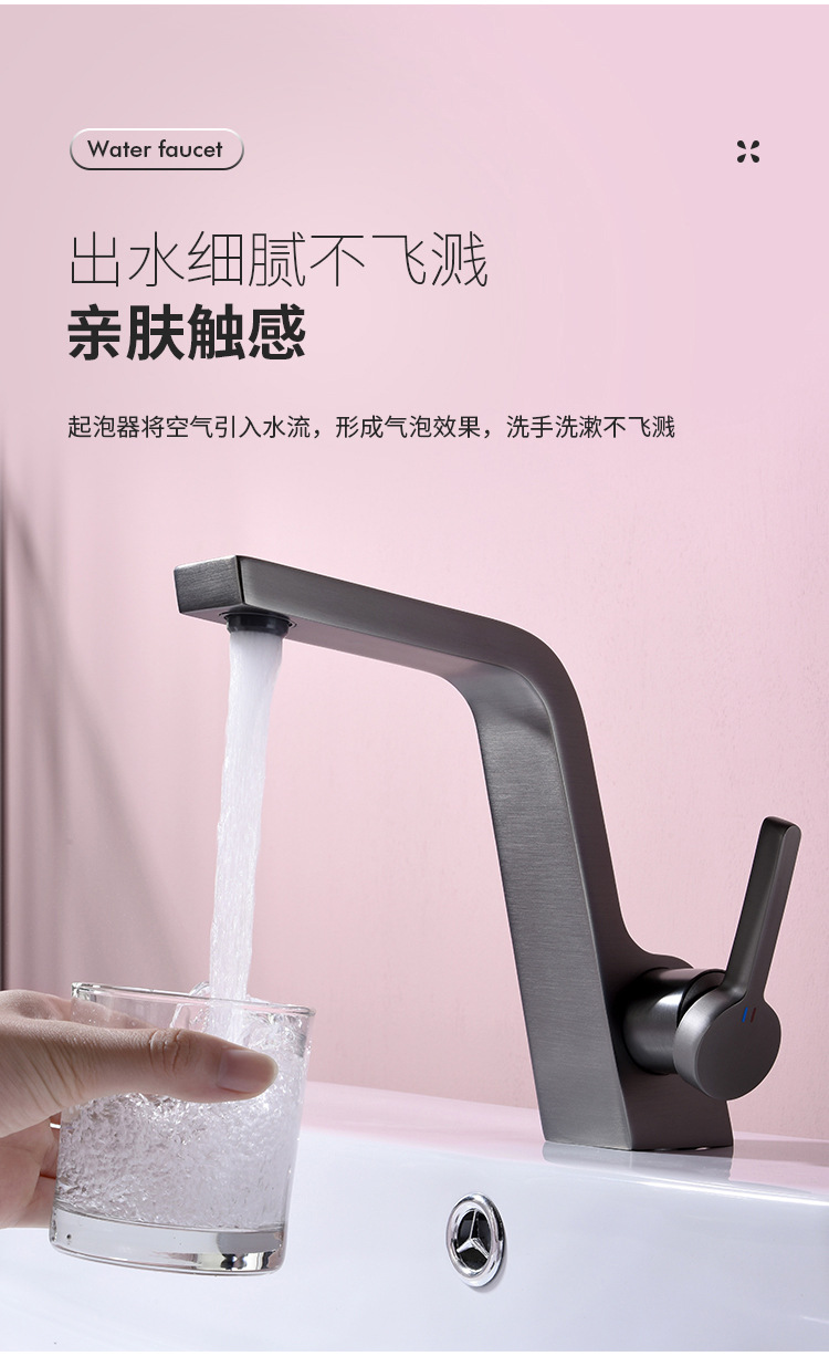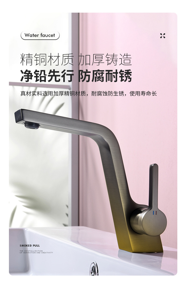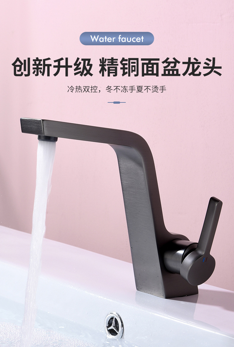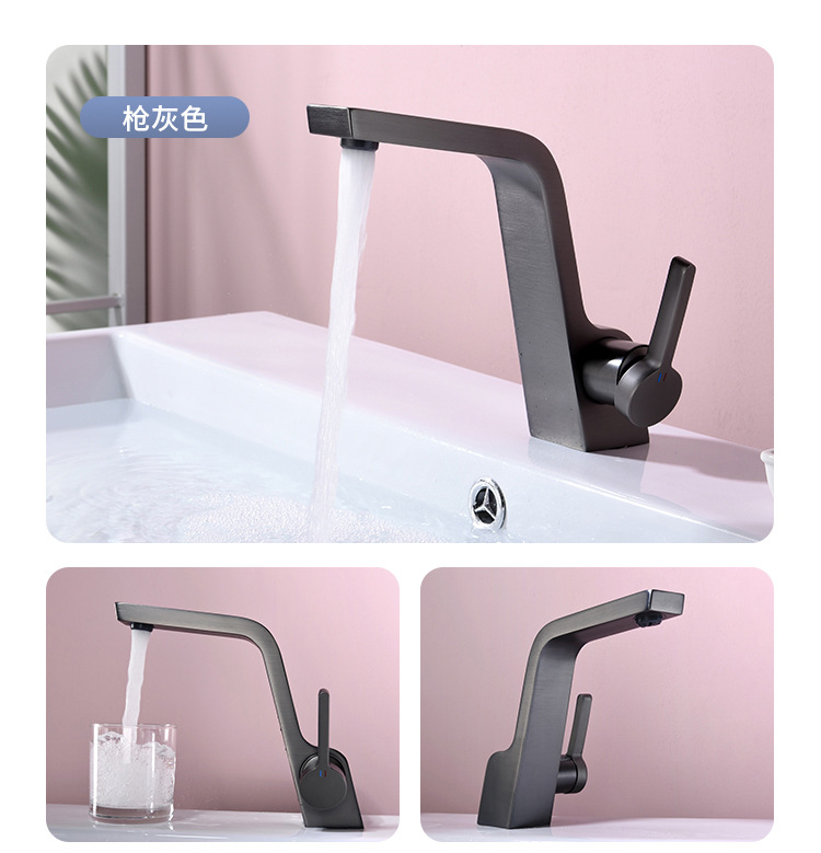 구리 건 그레이 분지 세면기 화장실 욕실 심플 퍼스널리티 싱글 홀 분지 수도꼭지 핫 앤 콜드스토어 가기