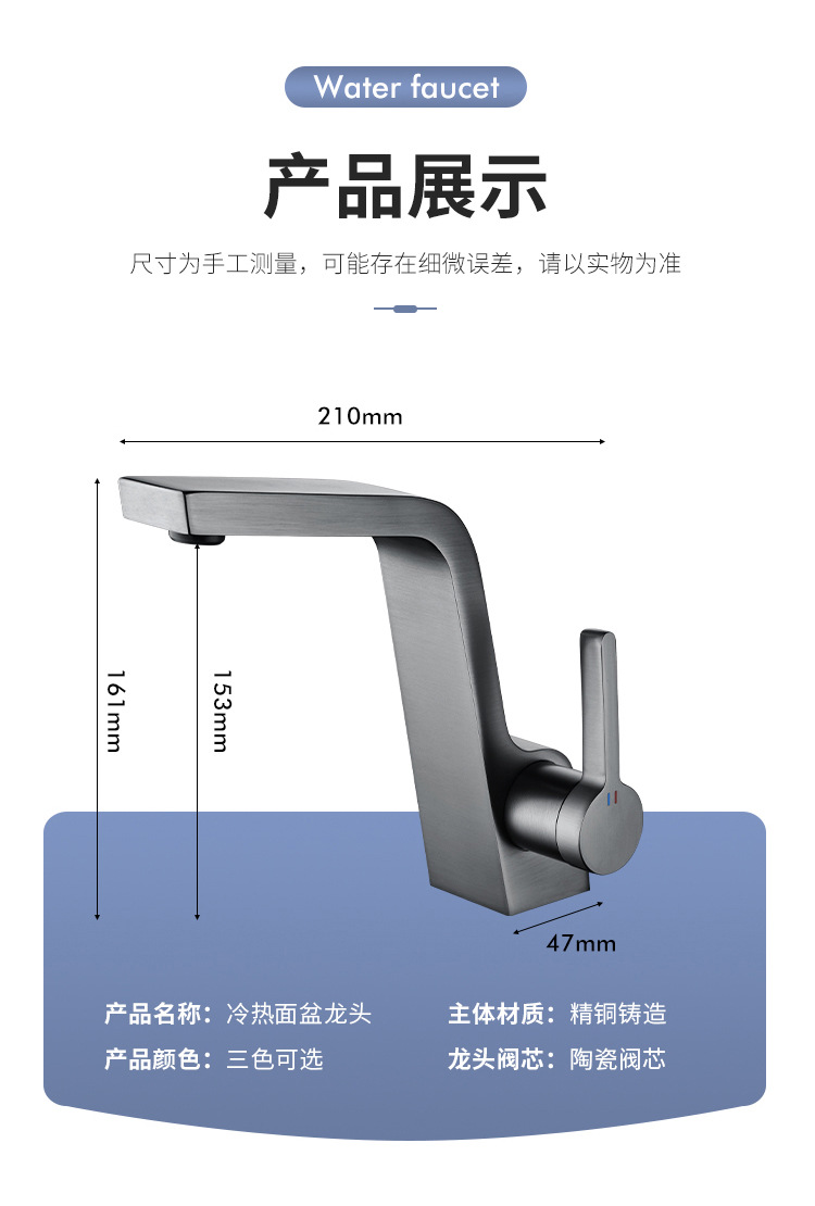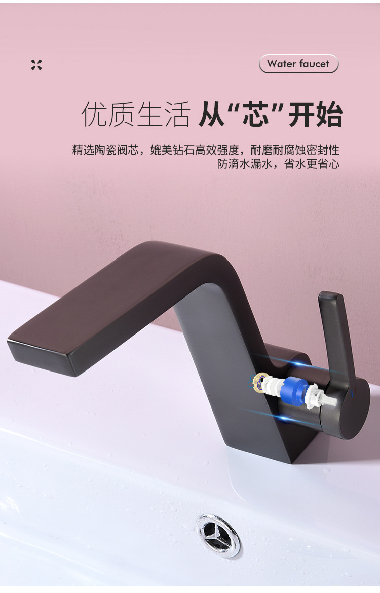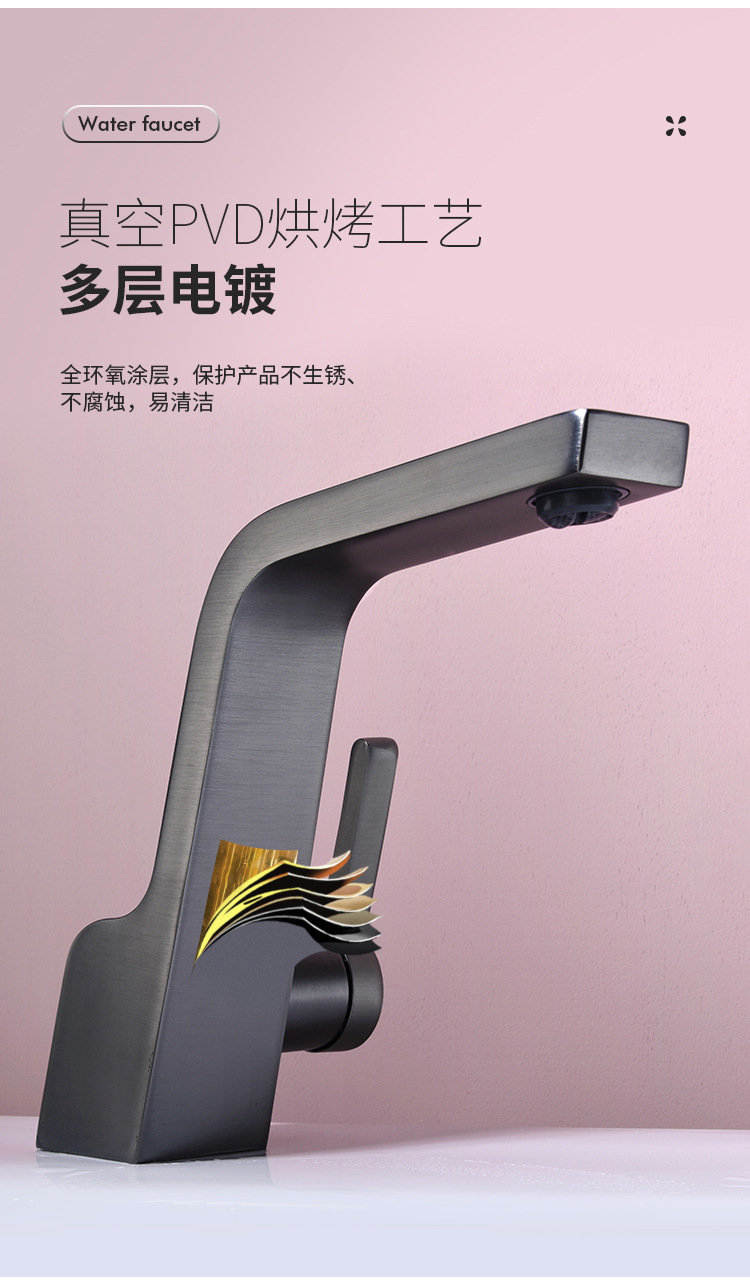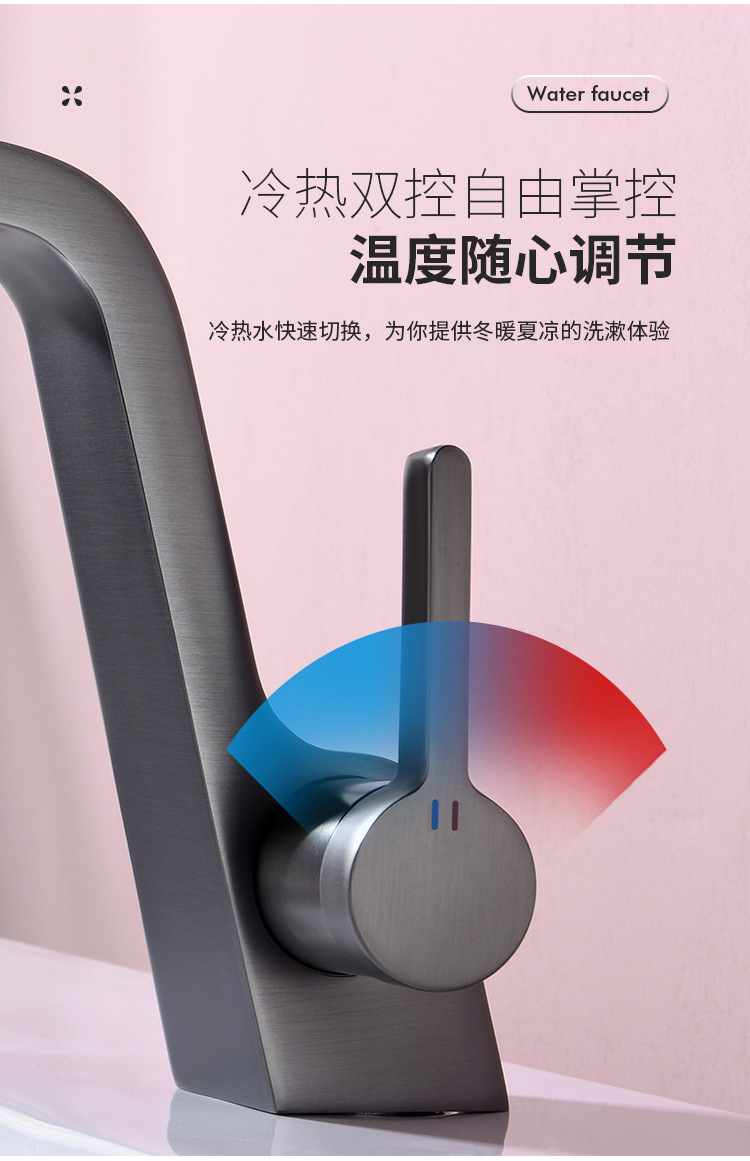 구리 건 그레이 분지 세면기 화장실 욕실 심플 퍼스널리티 싱글 홀 분지 수도꼭지 핫 앤 콜드스토어 가기