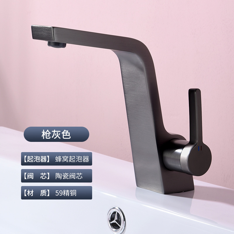 구리 건 그레이 분지 세면기 화장실 욕실 심플 퍼스널리티 싱글 홀 분지 수도꼭지 핫 앤 콜드