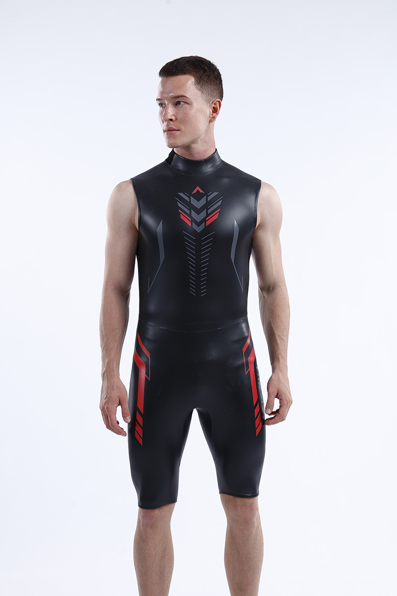 3mm铁人三项进口韩国材料,盲缝粘胶工艺防水性好,内里贴合超弹,弹性很好