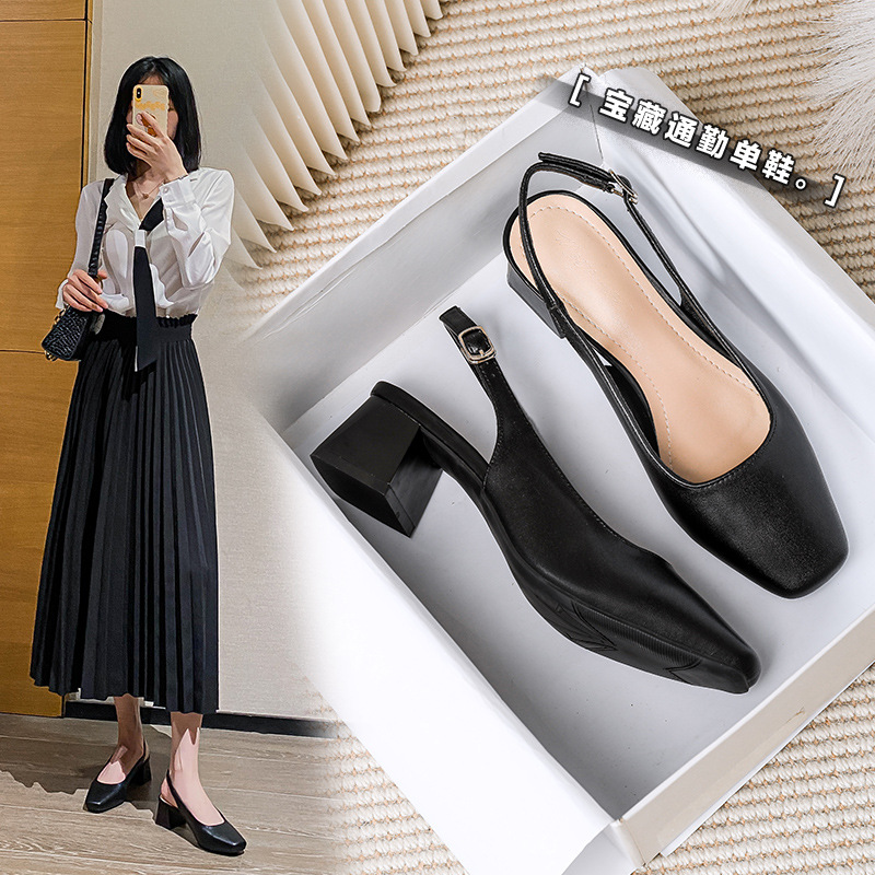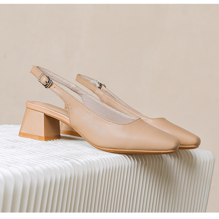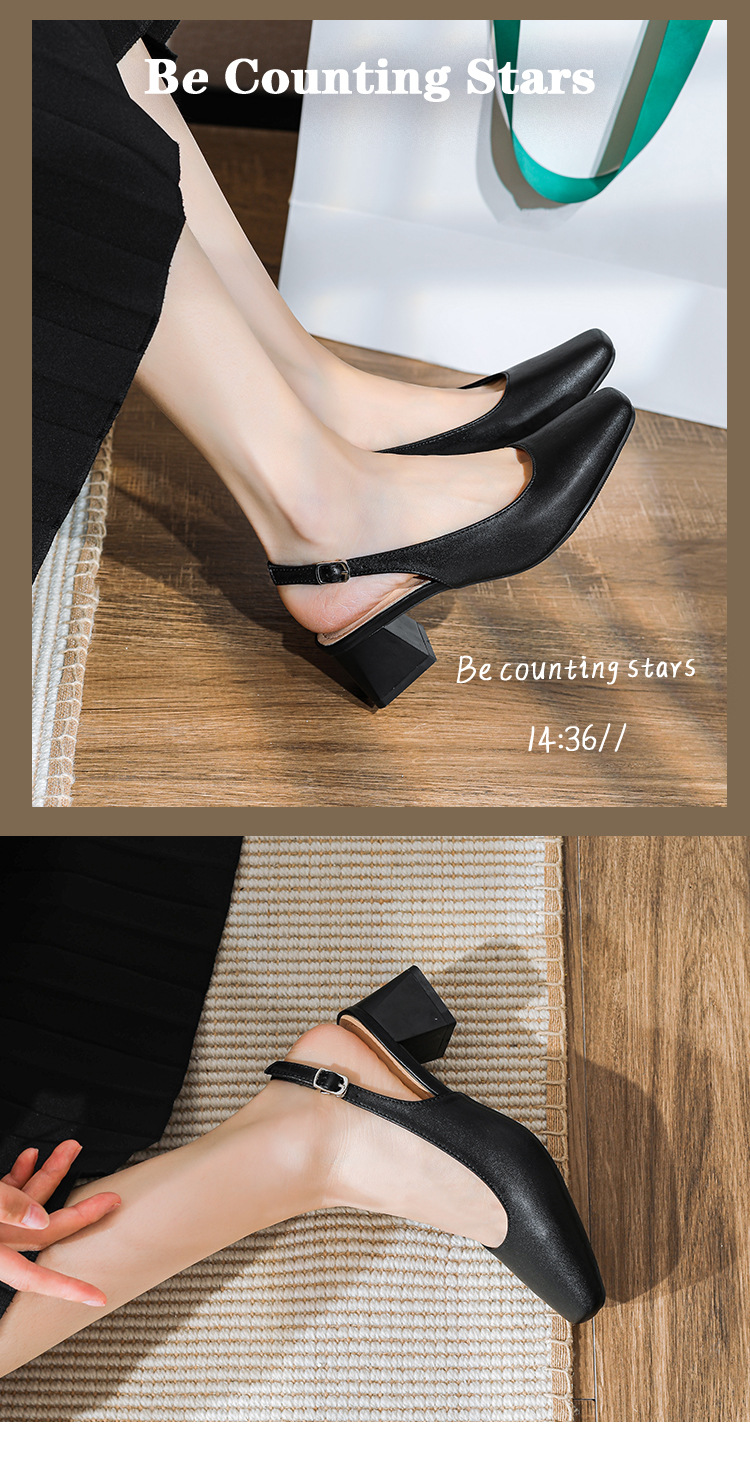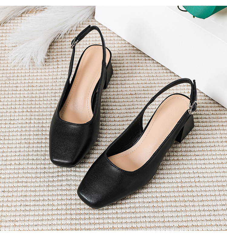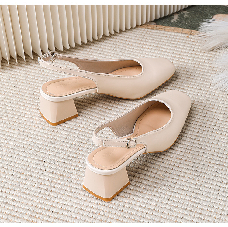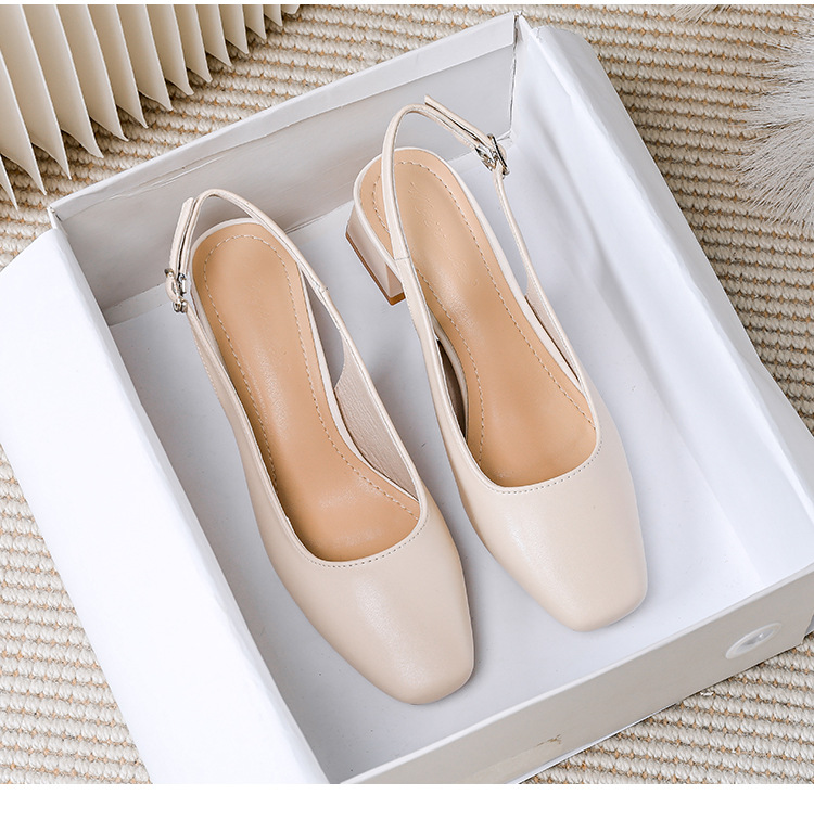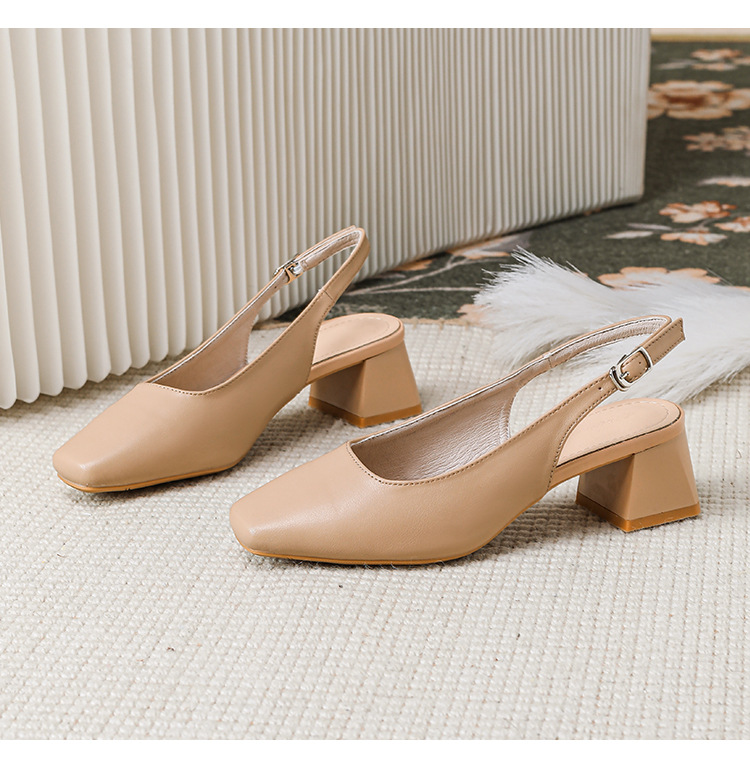 프랑스어 Baotou 샌들 여성 여름 2025 새로운 중간 두꺼운 뒤꿈치 정품 가죽 하이힐 얕은 입 대형 여성 신발 41-43스토어 가기