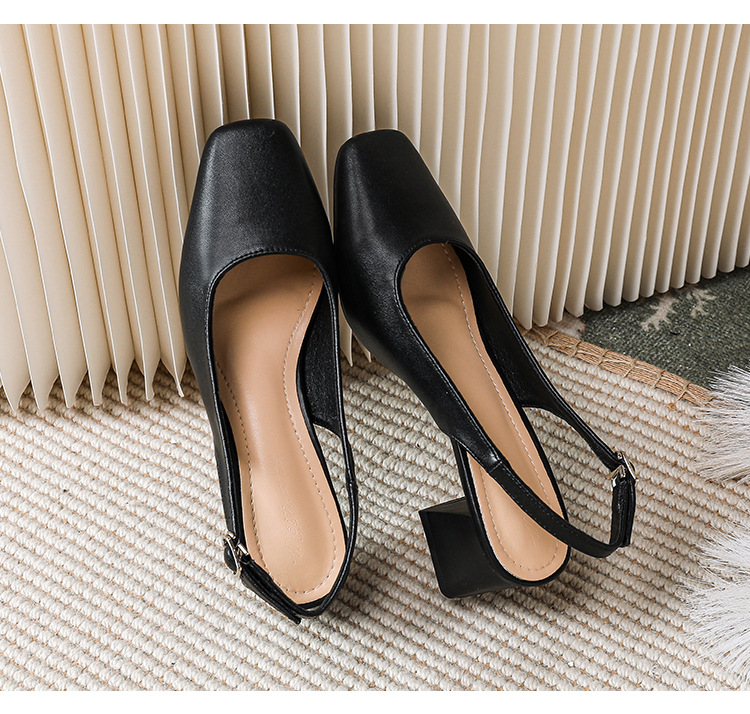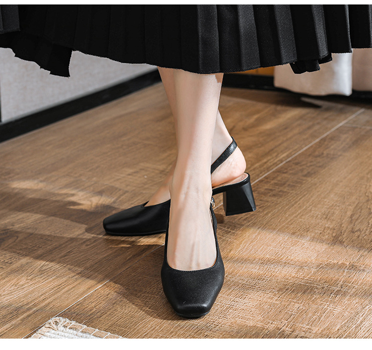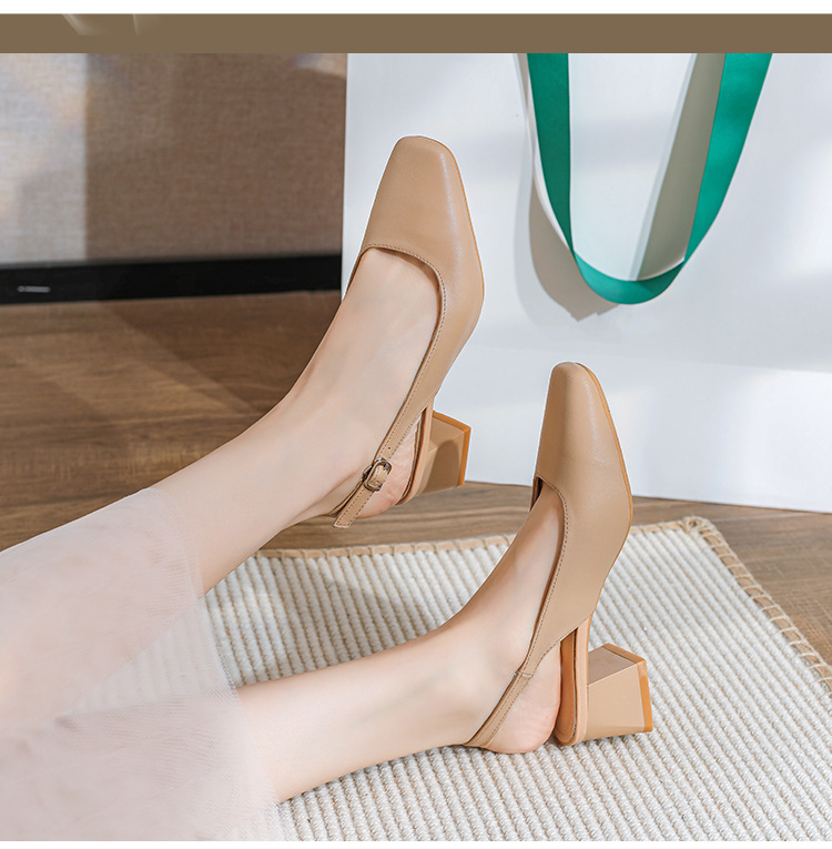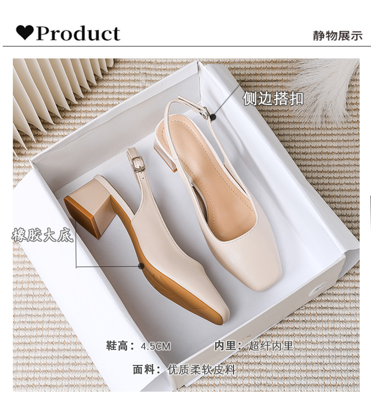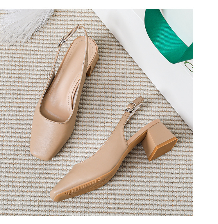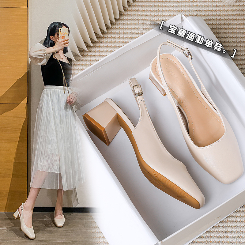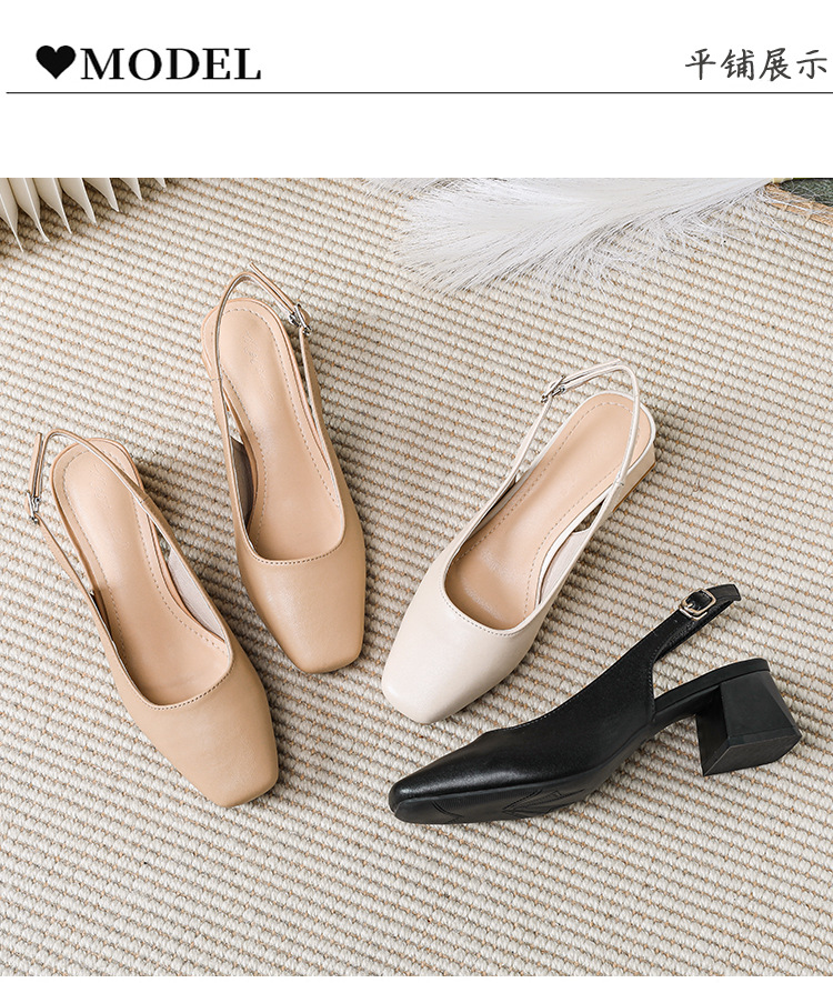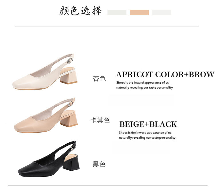 프랑스어 Baotou 샌들 여성 여름 2025 새로운 중간 두꺼운 뒤꿈치 정품 가죽 하이힐 얕은 입 대형 여성 신발 41-43스토어 가기