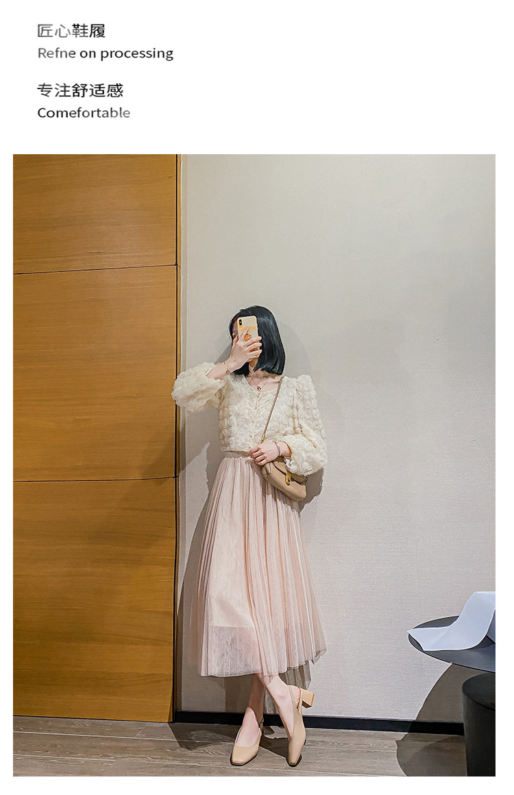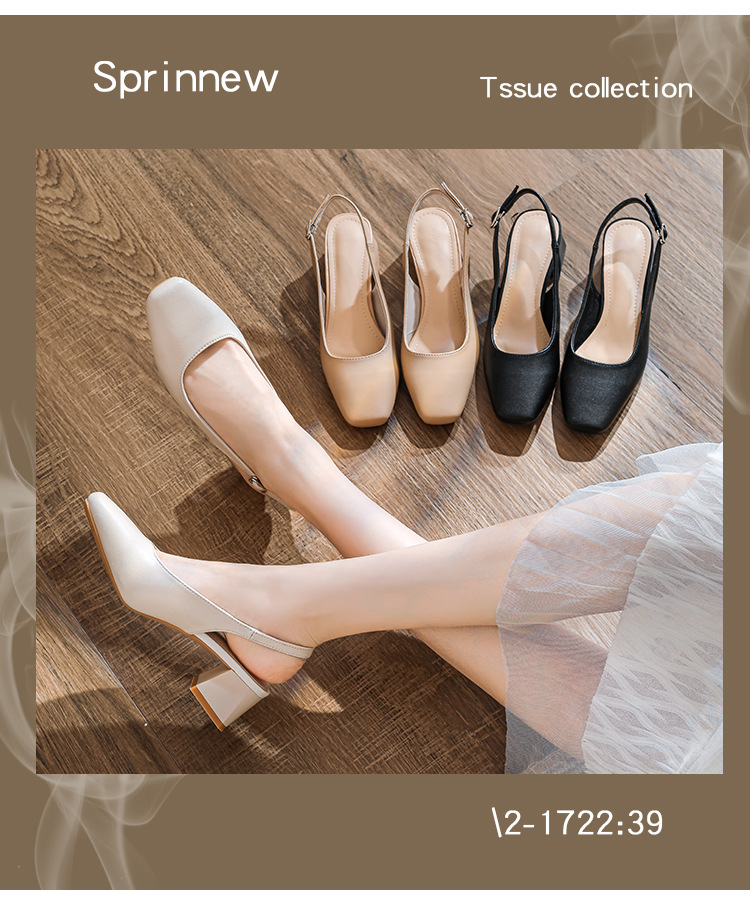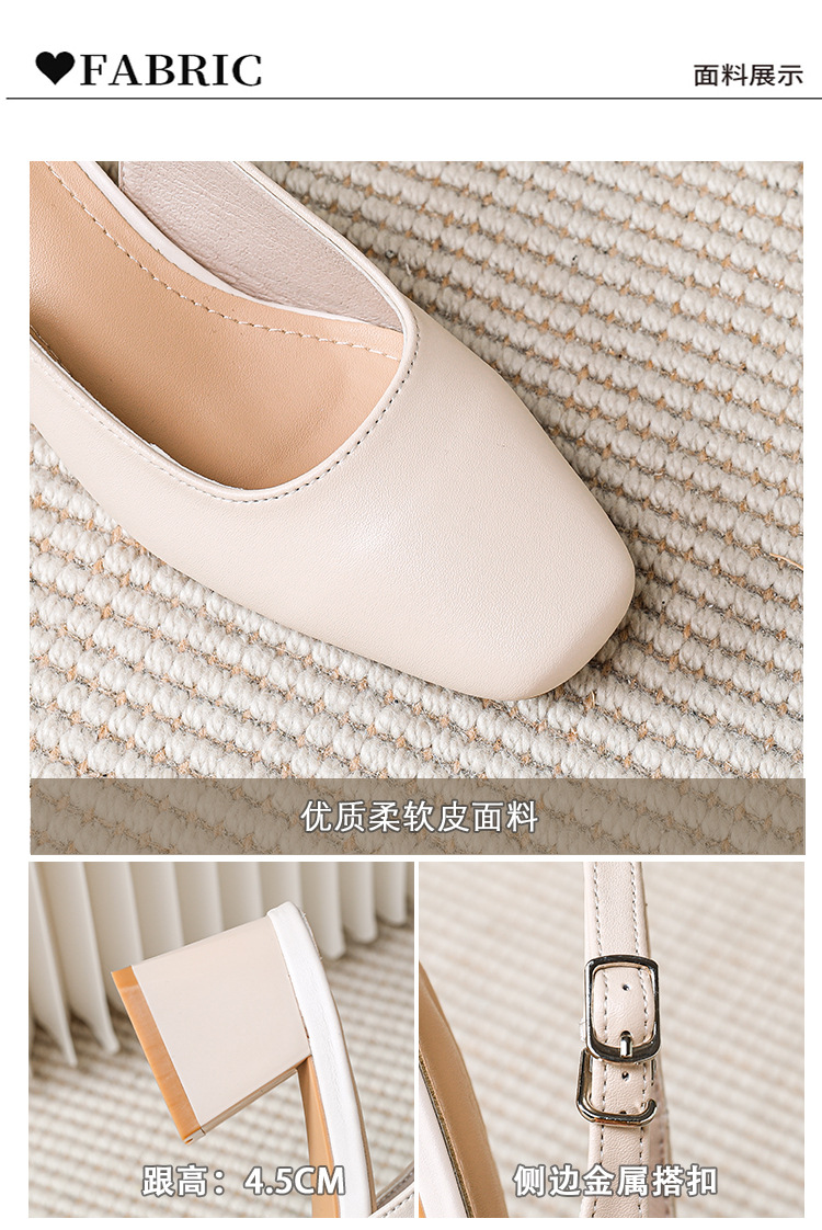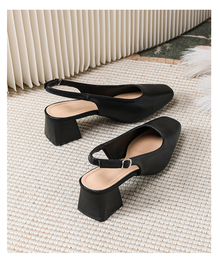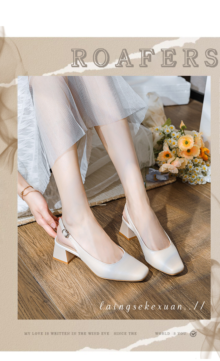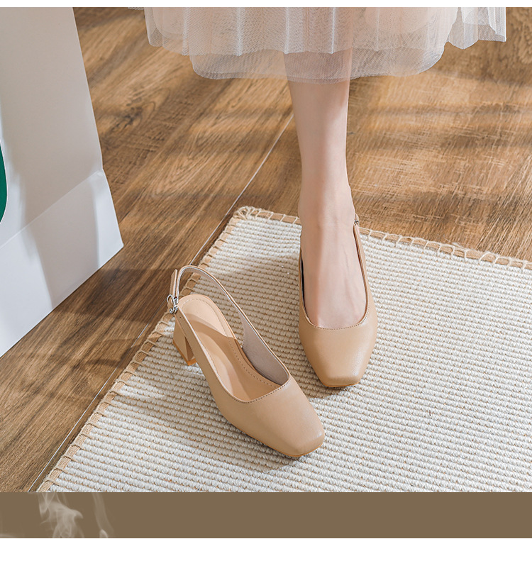 프랑스어 Baotou 샌들 여성 여름 2025 새로운 중간 두꺼운 뒤꿈치 정품 가죽 하이힐 얕은 입 대형 여성 신발 41-43스토어 가기